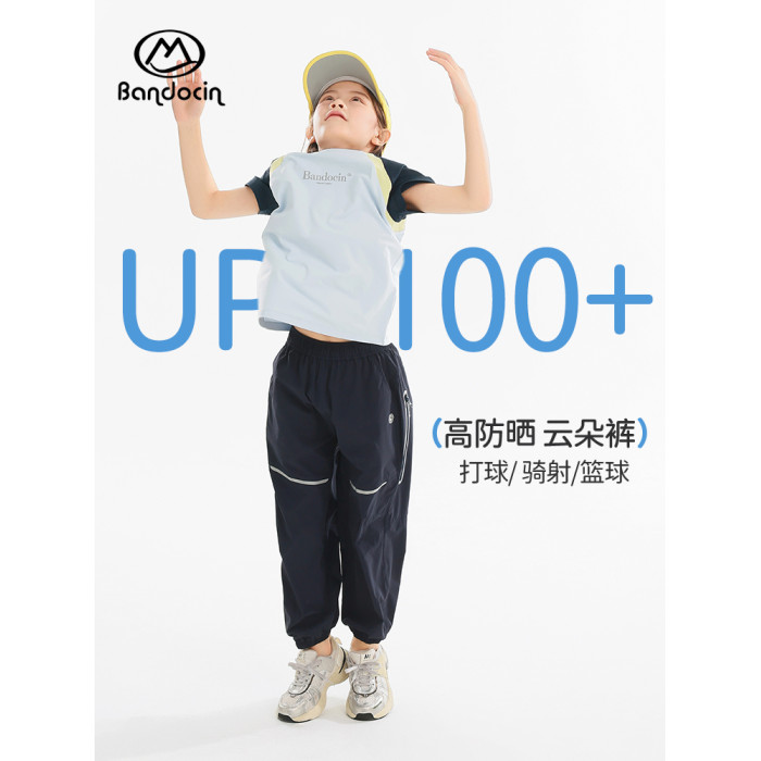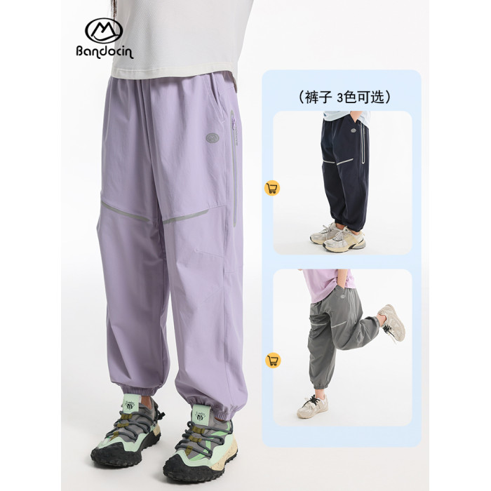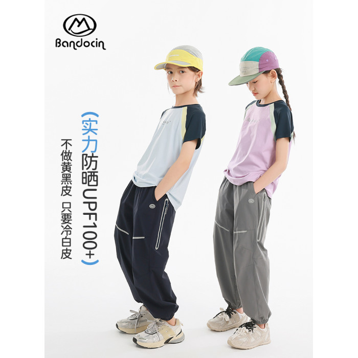 半度閒夜間反光女童夏季薄款防曬運動褲洋氣2025新款兒童透氣長褲