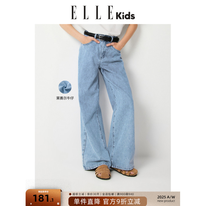 ELLEkids童裝 經典萊賽爾牛仔長褲女童春夏新款法式百搭寬松褲子