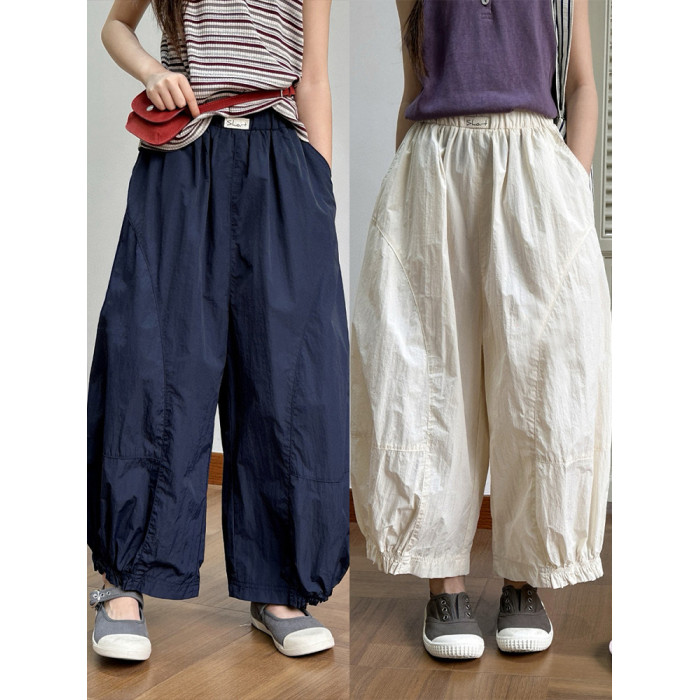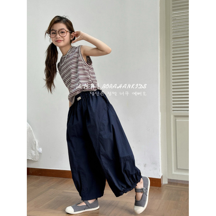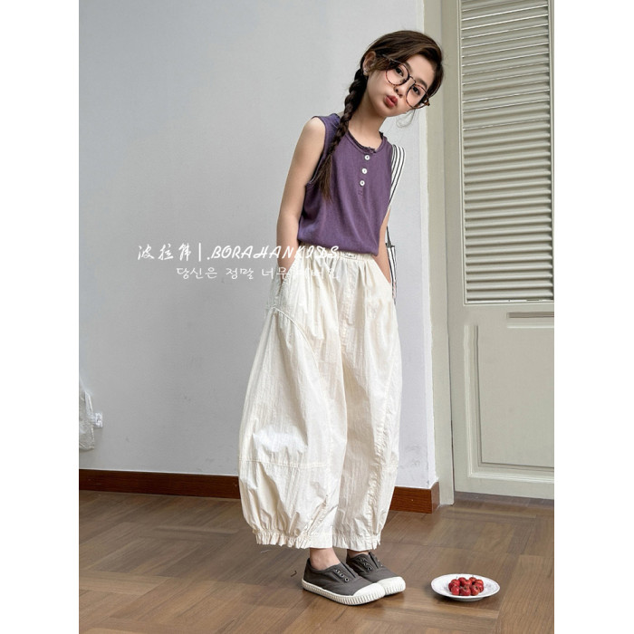 波拉韓兒童夏季休閒褲女童薄款哈倫褲2025中大童寬松老爹褲長褲子