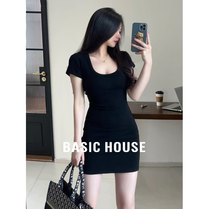 Basic House/百家好純欲風修身包臀連衣裙女2025夏季新款純棉短裙