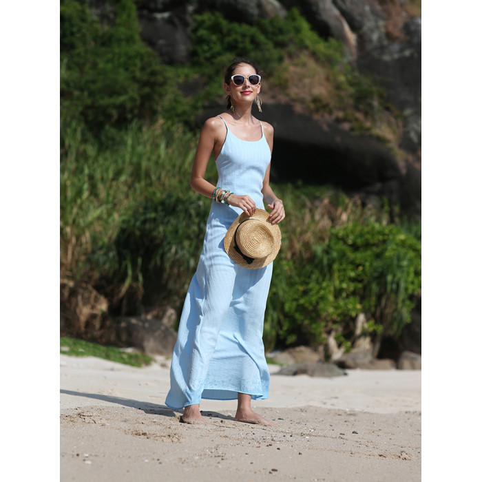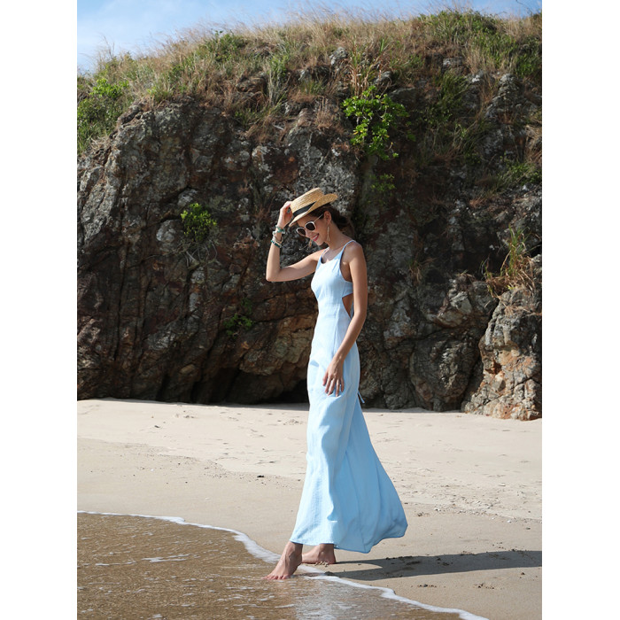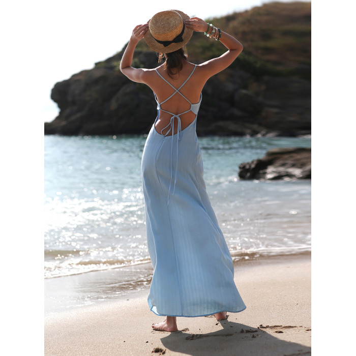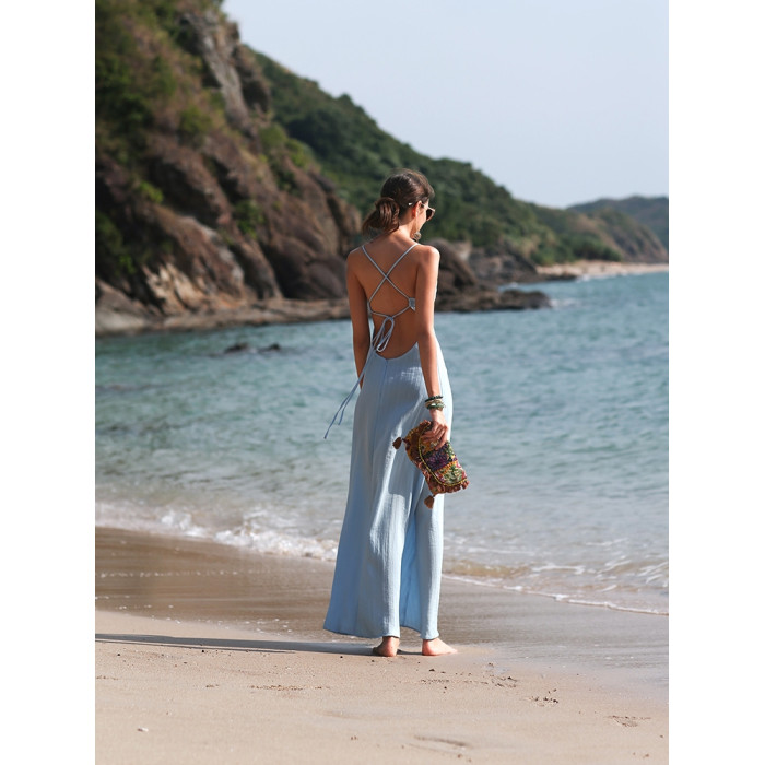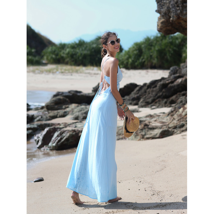 馬代海邊度假沙灘裙海灘大露背後背綁帶連衣裙海島絕美明媚穿搭女
