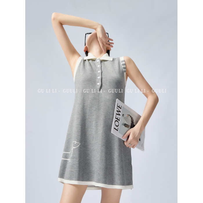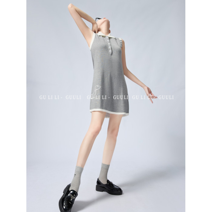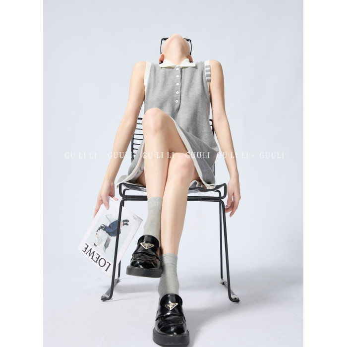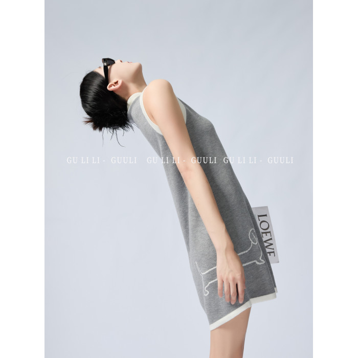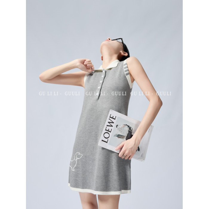 顧裡裡Guuli/灰色無袖背心裙女夏季新款氣質連衣裙顯瘦童趣減齡