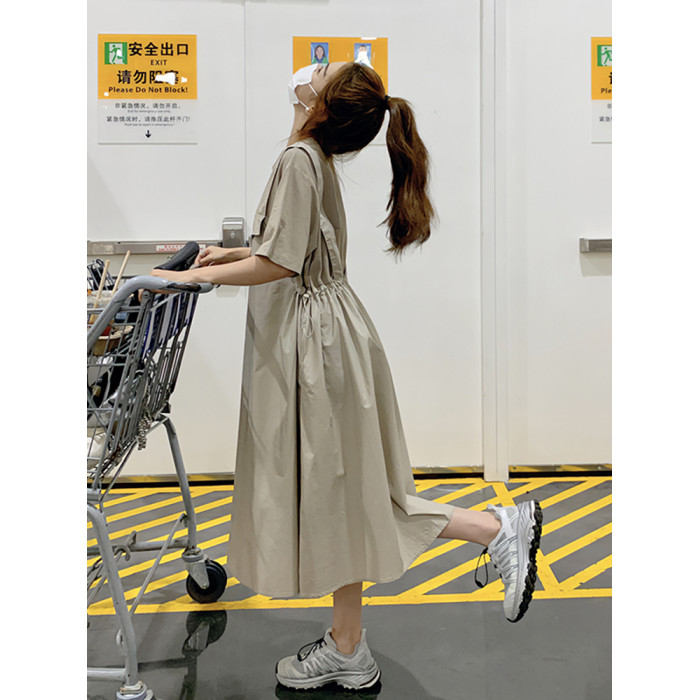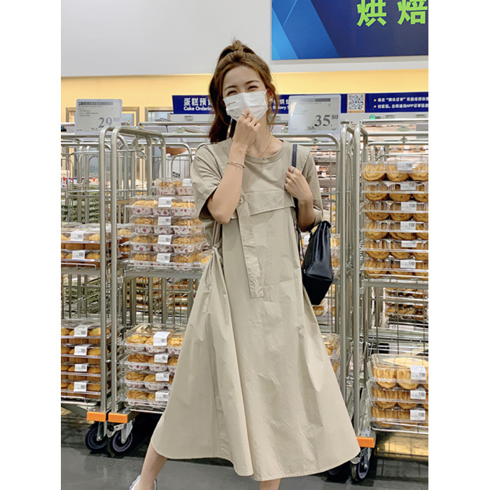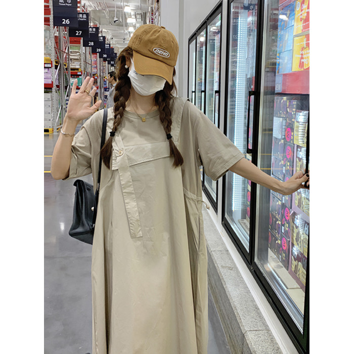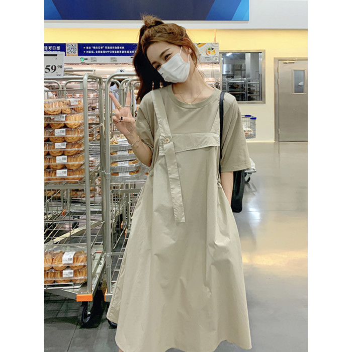 超好看連衣裙夏季新款假兩件套大碼胖mm休閒顯瘦收腰孕婦背帶裙女