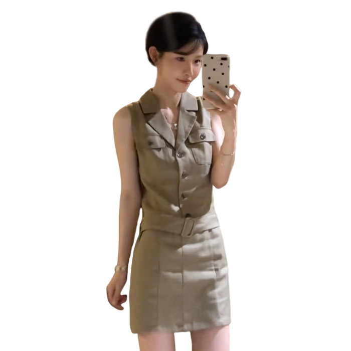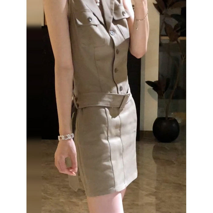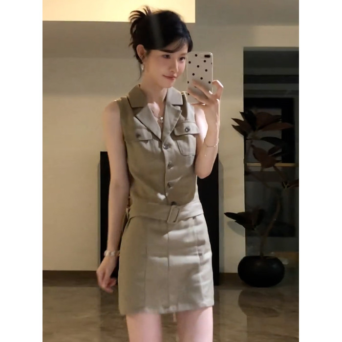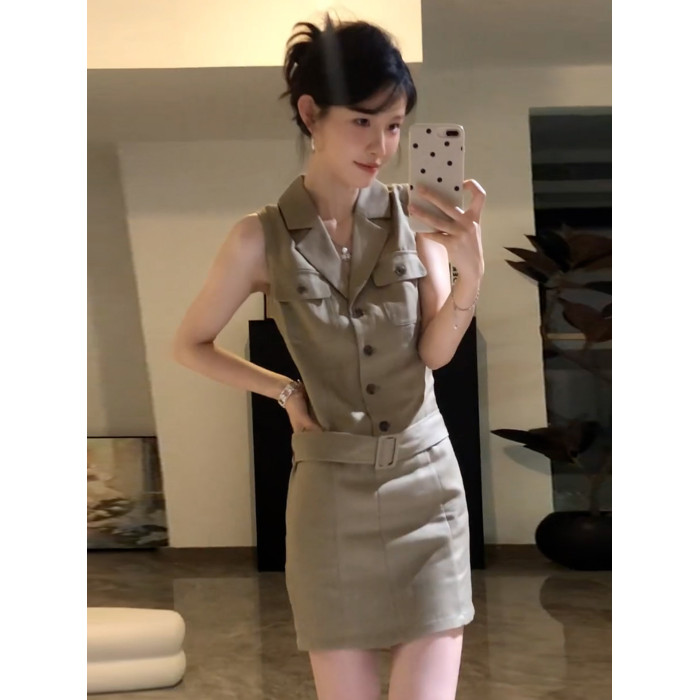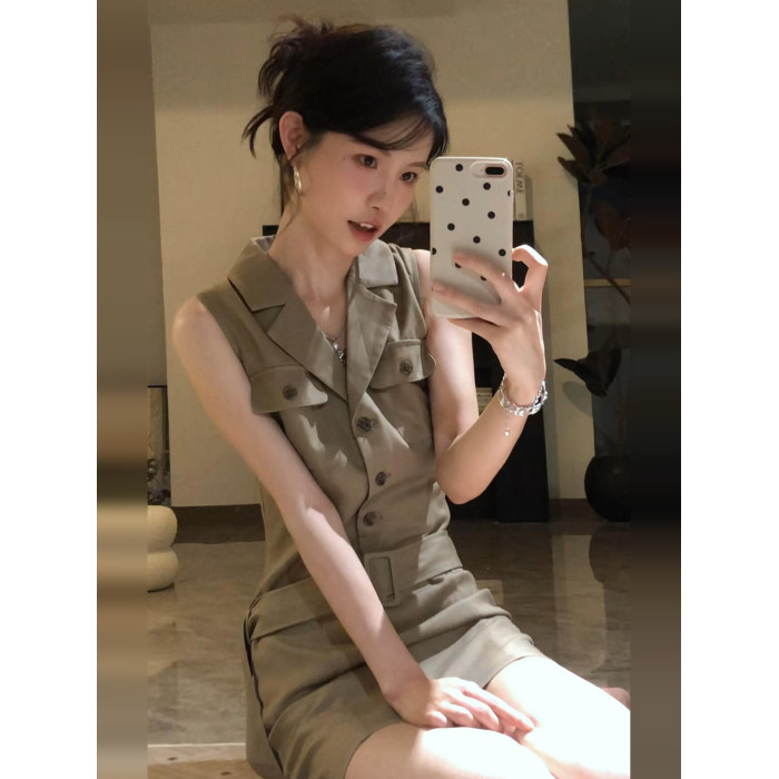 韓系無袖背心襯衫連衣裙子女夏季2025新款辣妹小個子氣質包臀短裙