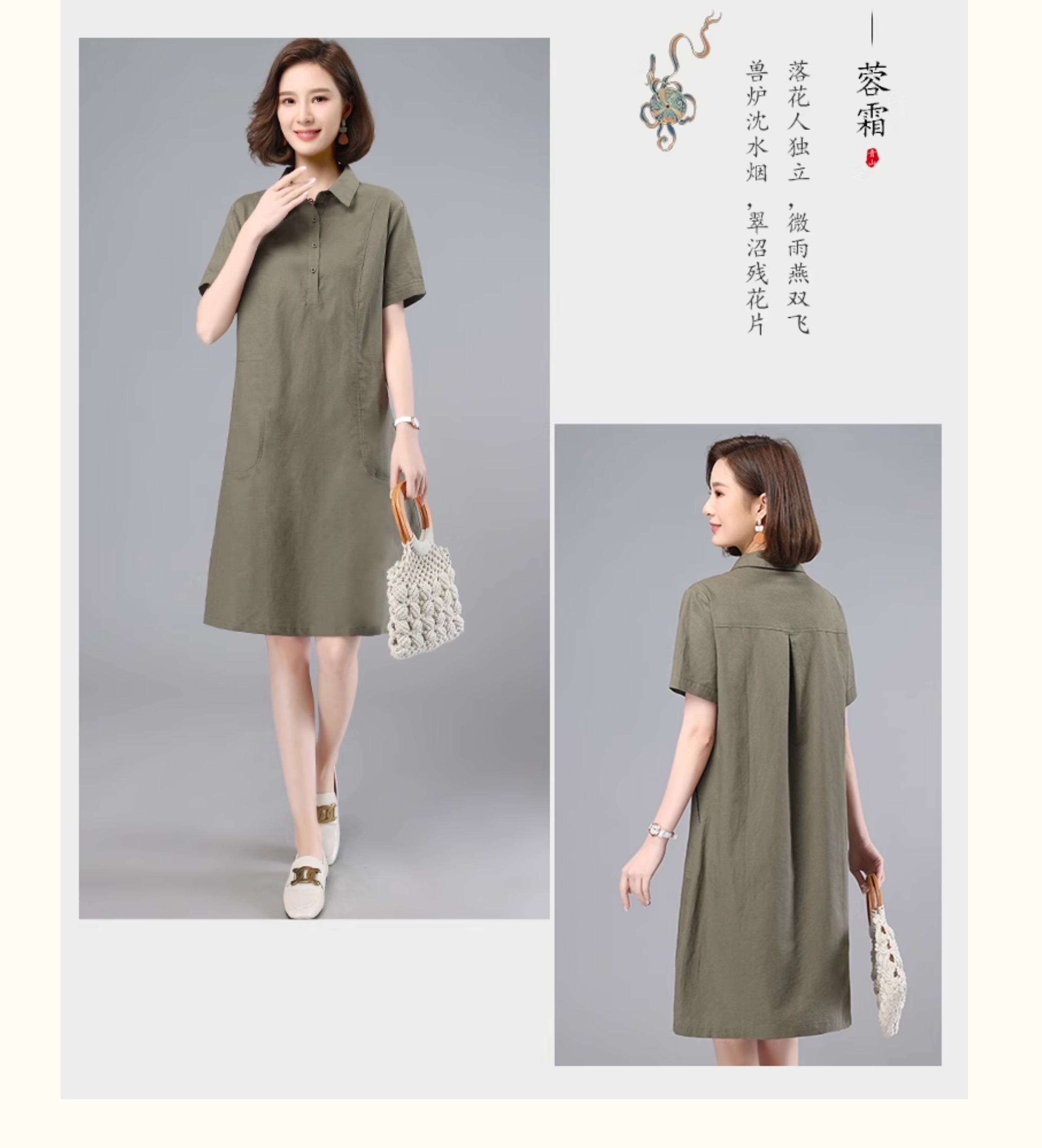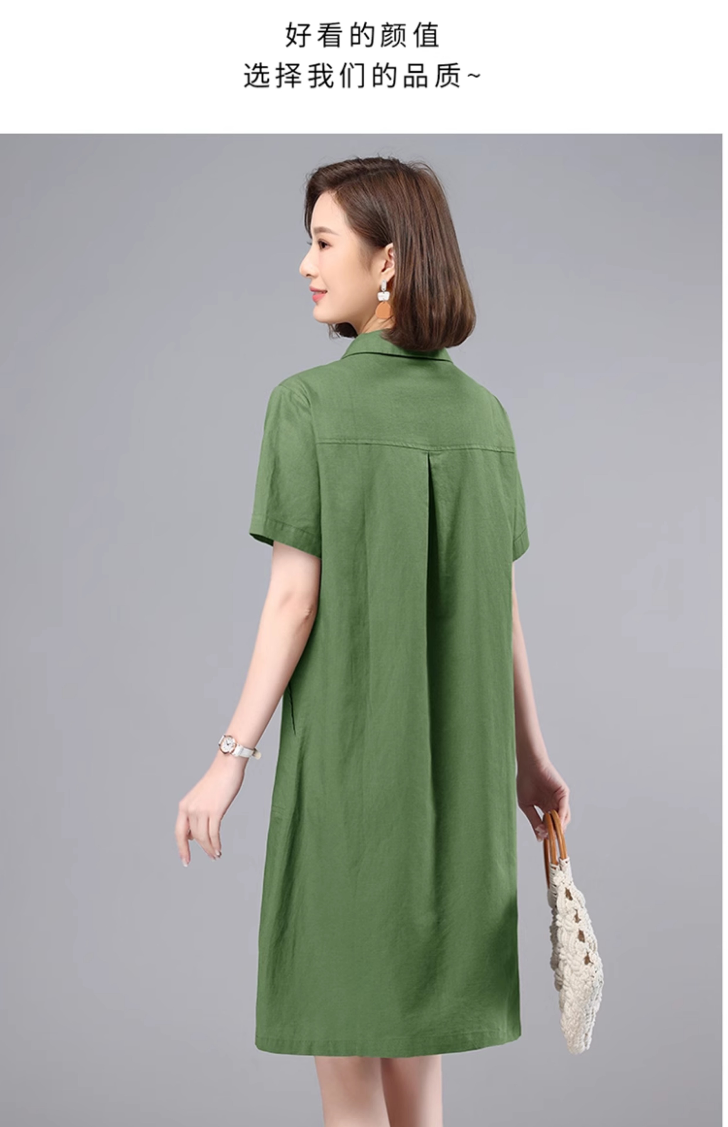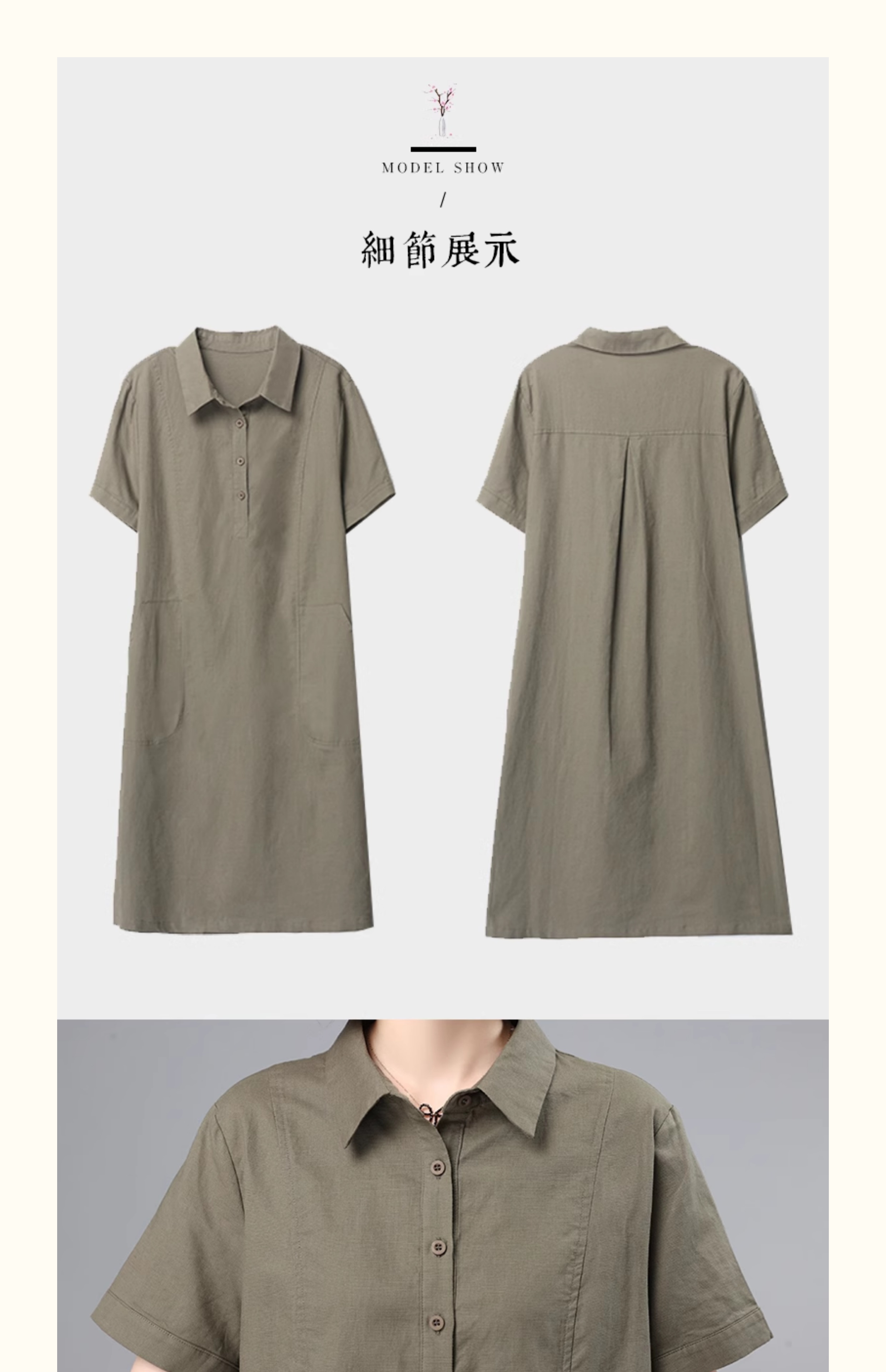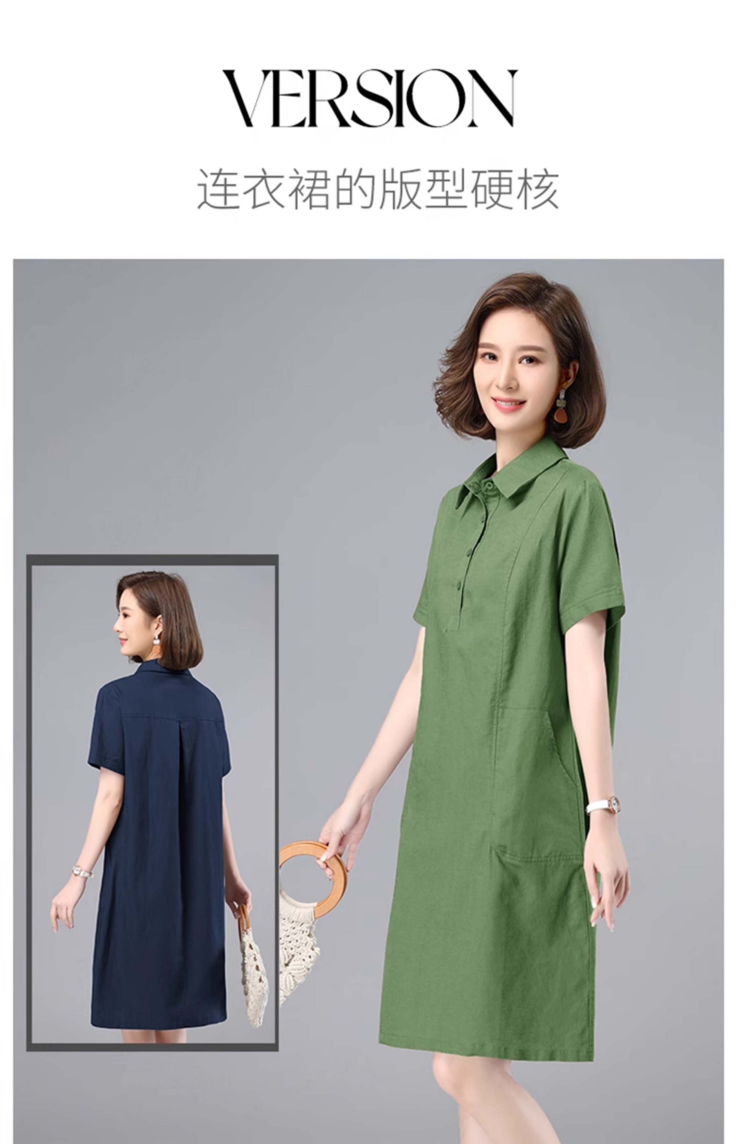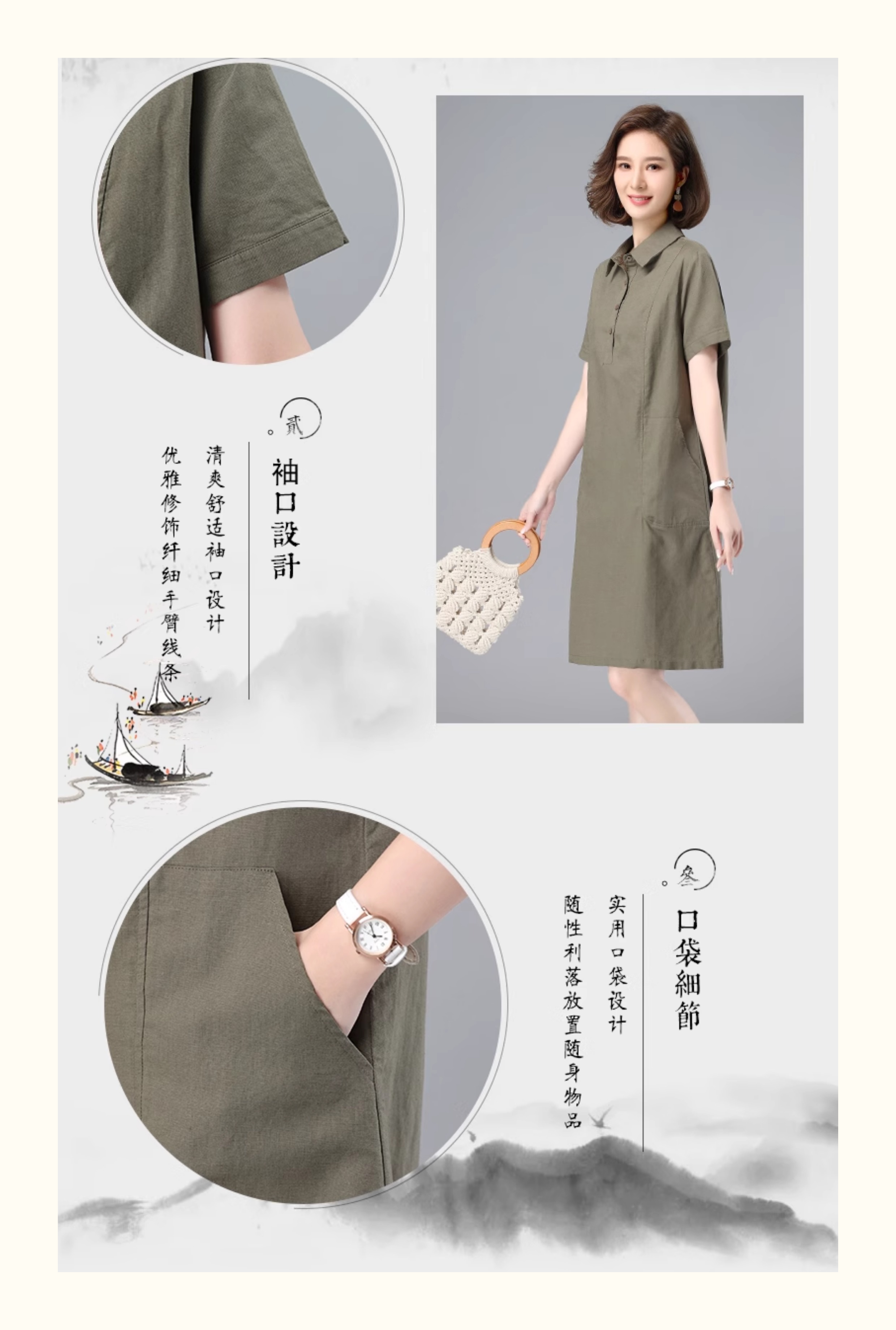 亞麻連衣裙女短袖2025夏季新款媽媽休閒顯瘦遮肚子高級棉麻薄裙子