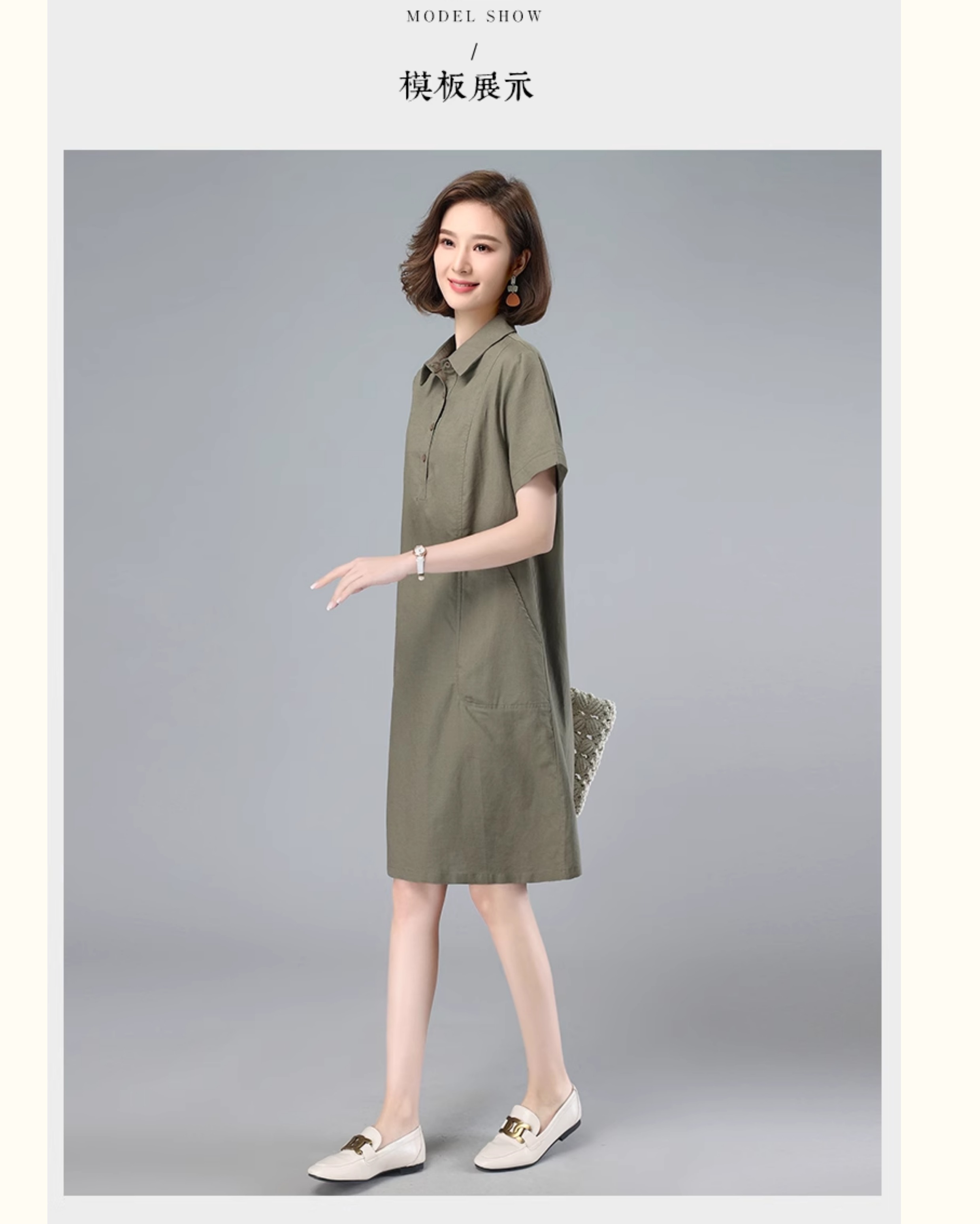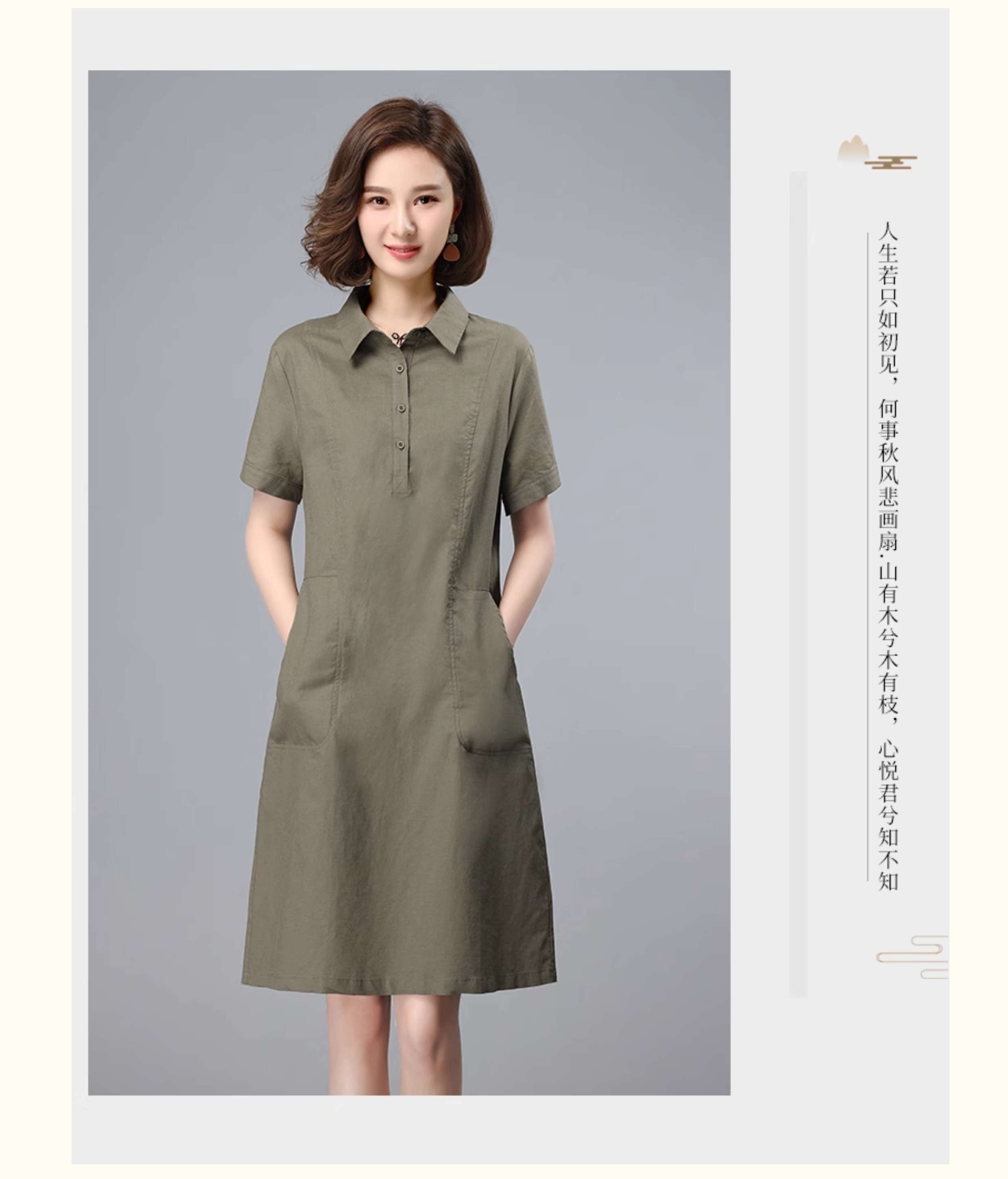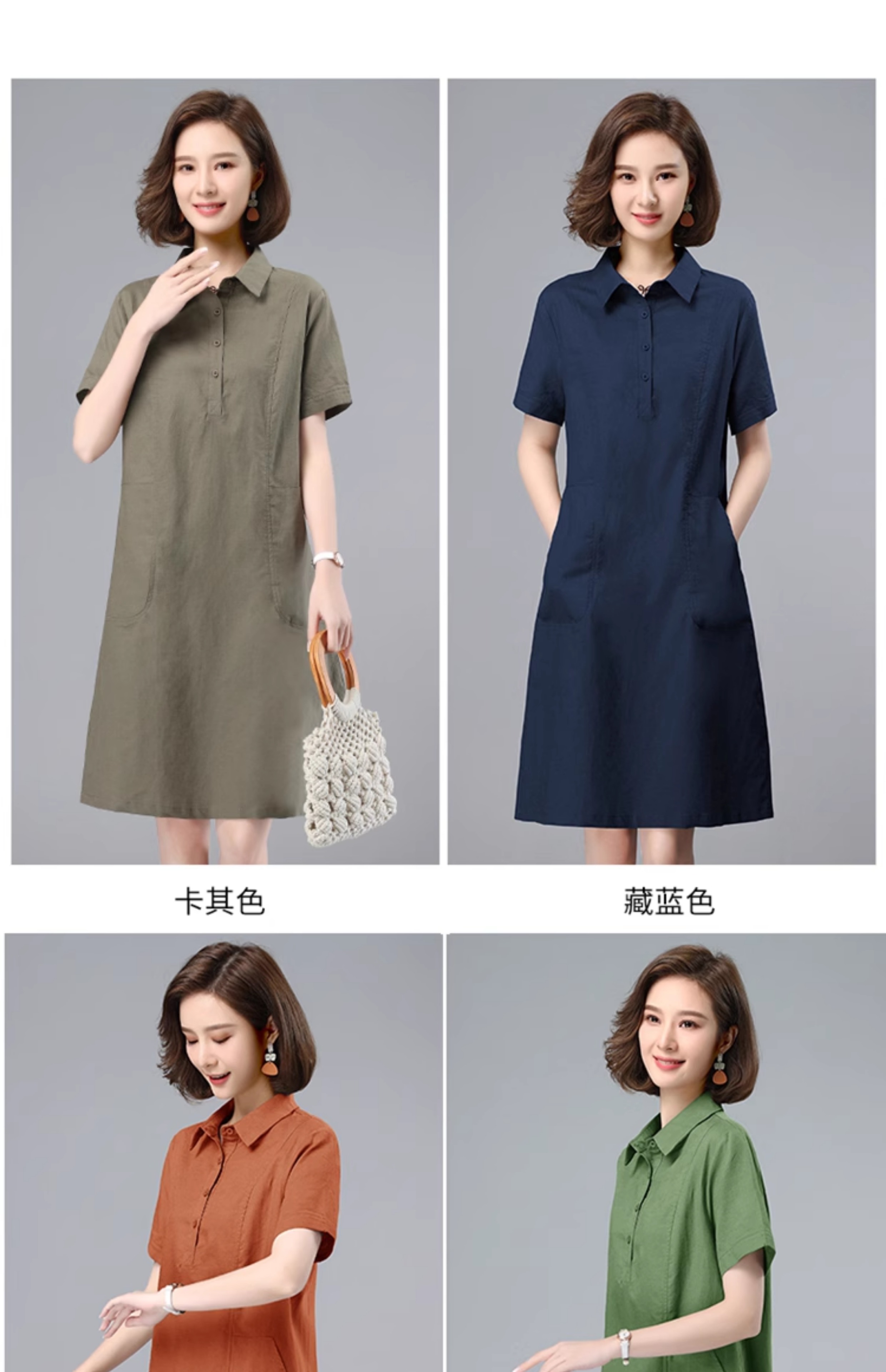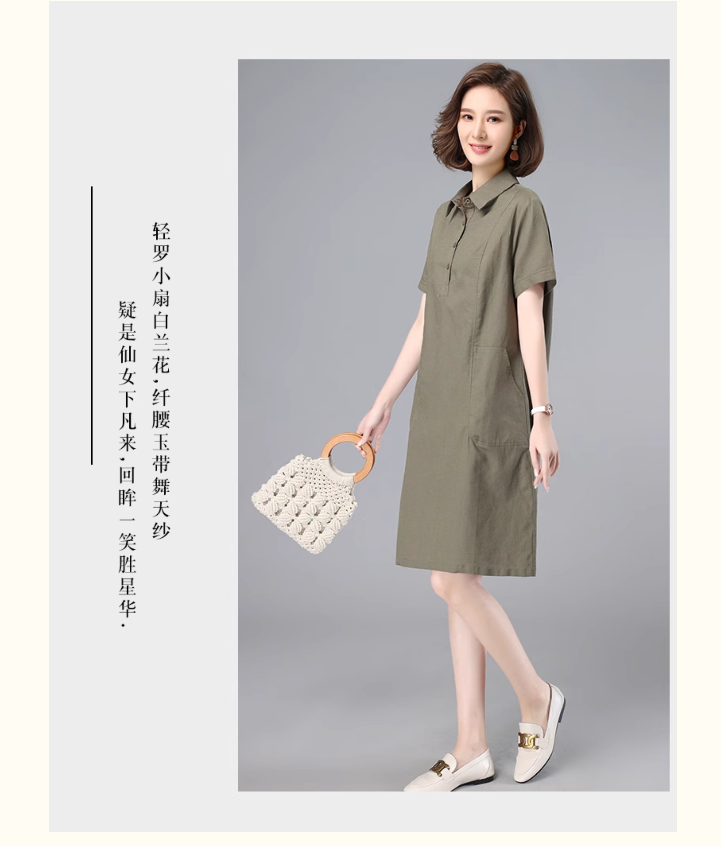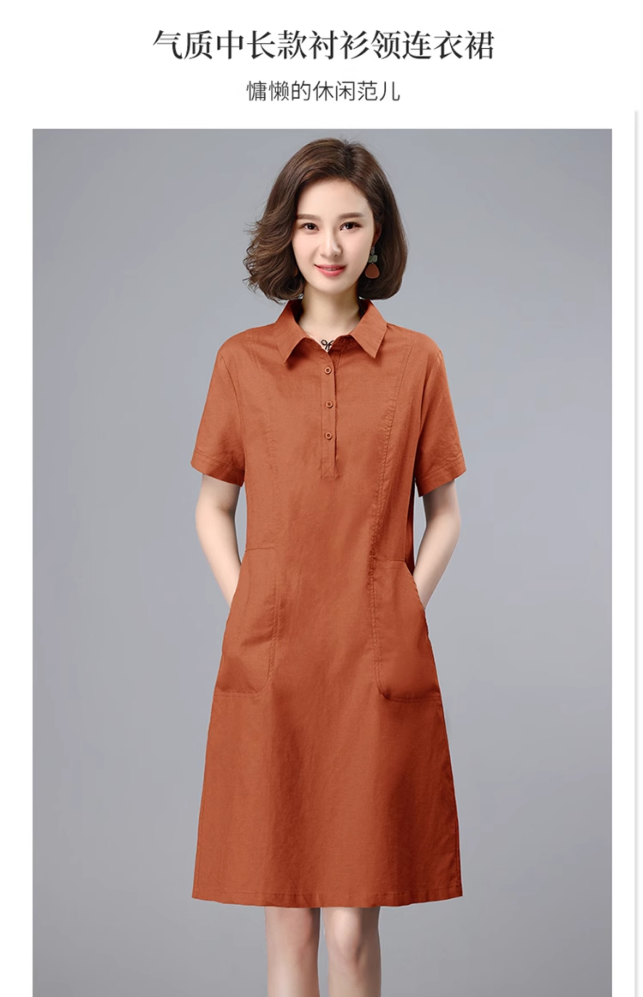 亞麻連衣裙女短袖2025夏季新款媽媽休閒顯瘦遮肚子高級棉麻薄裙子