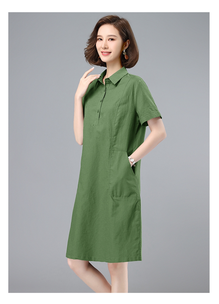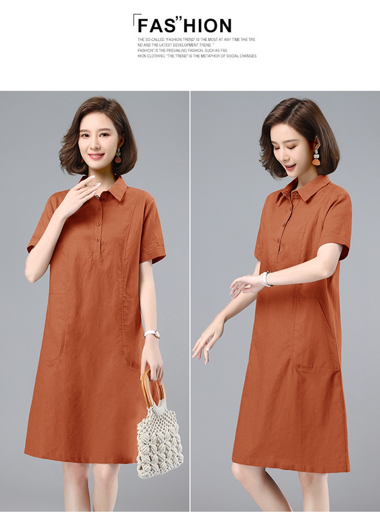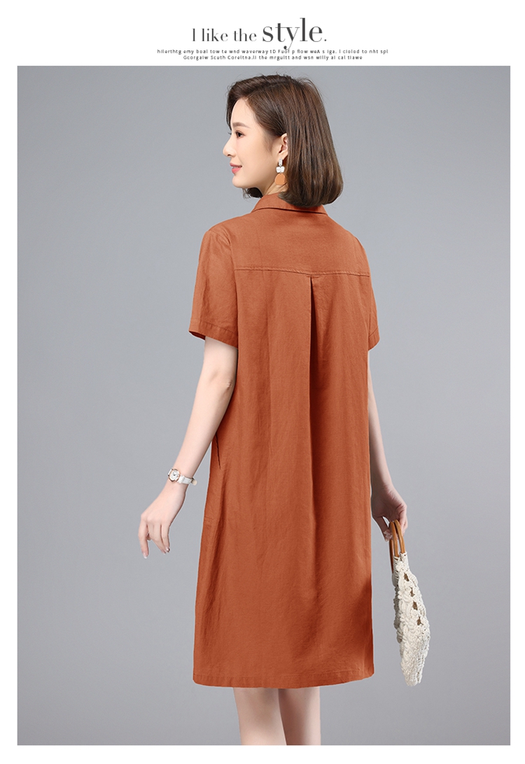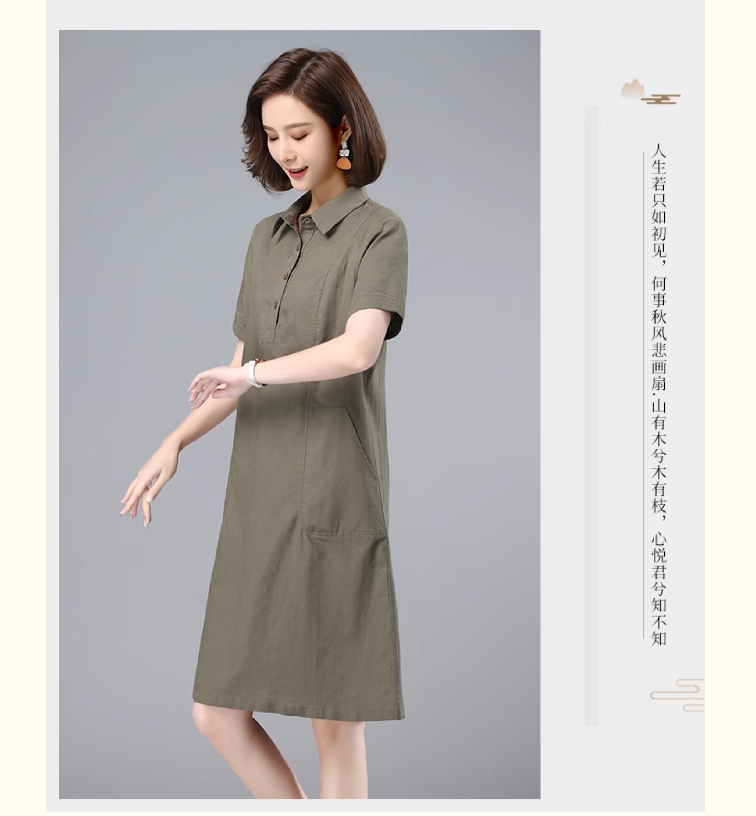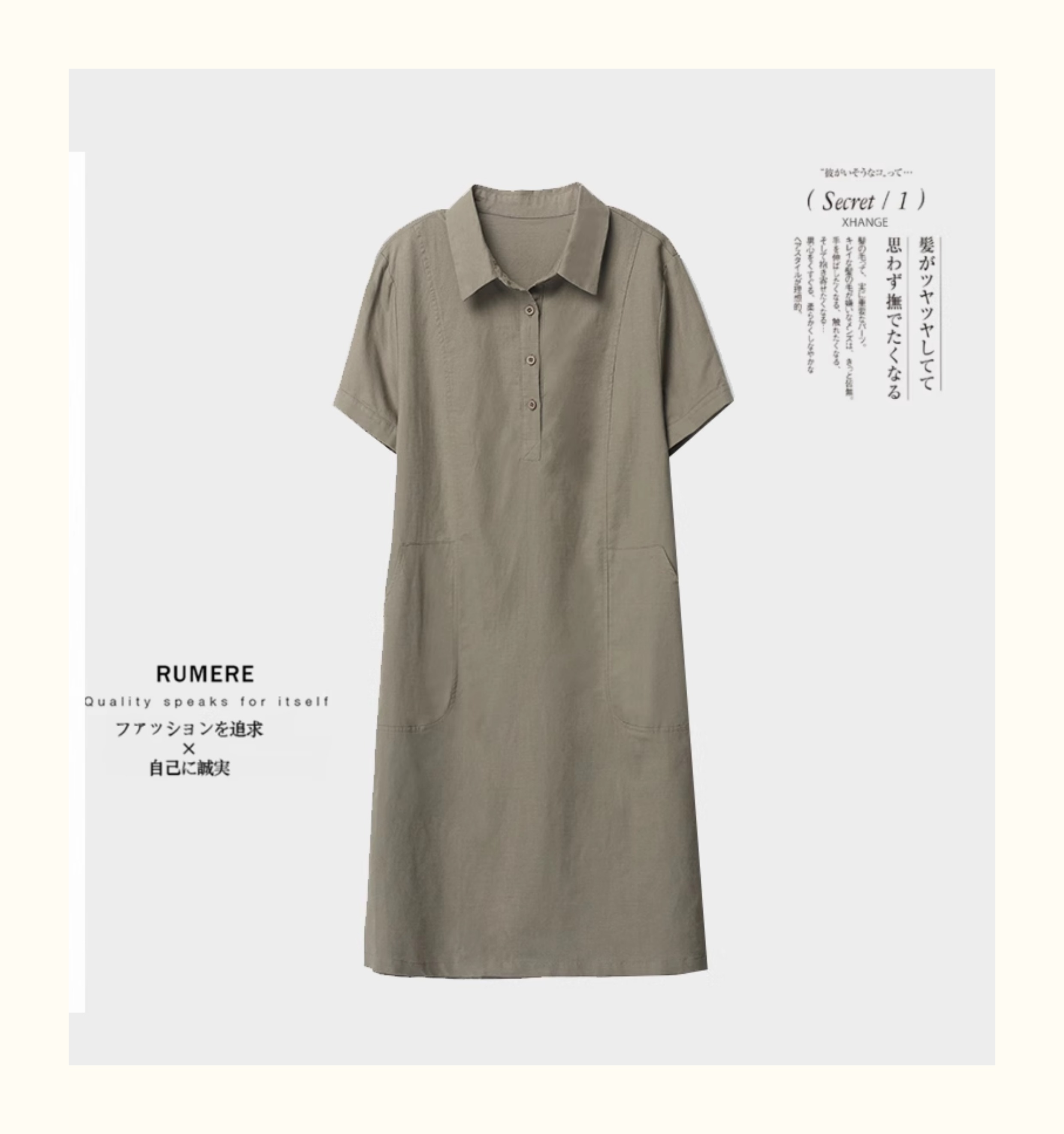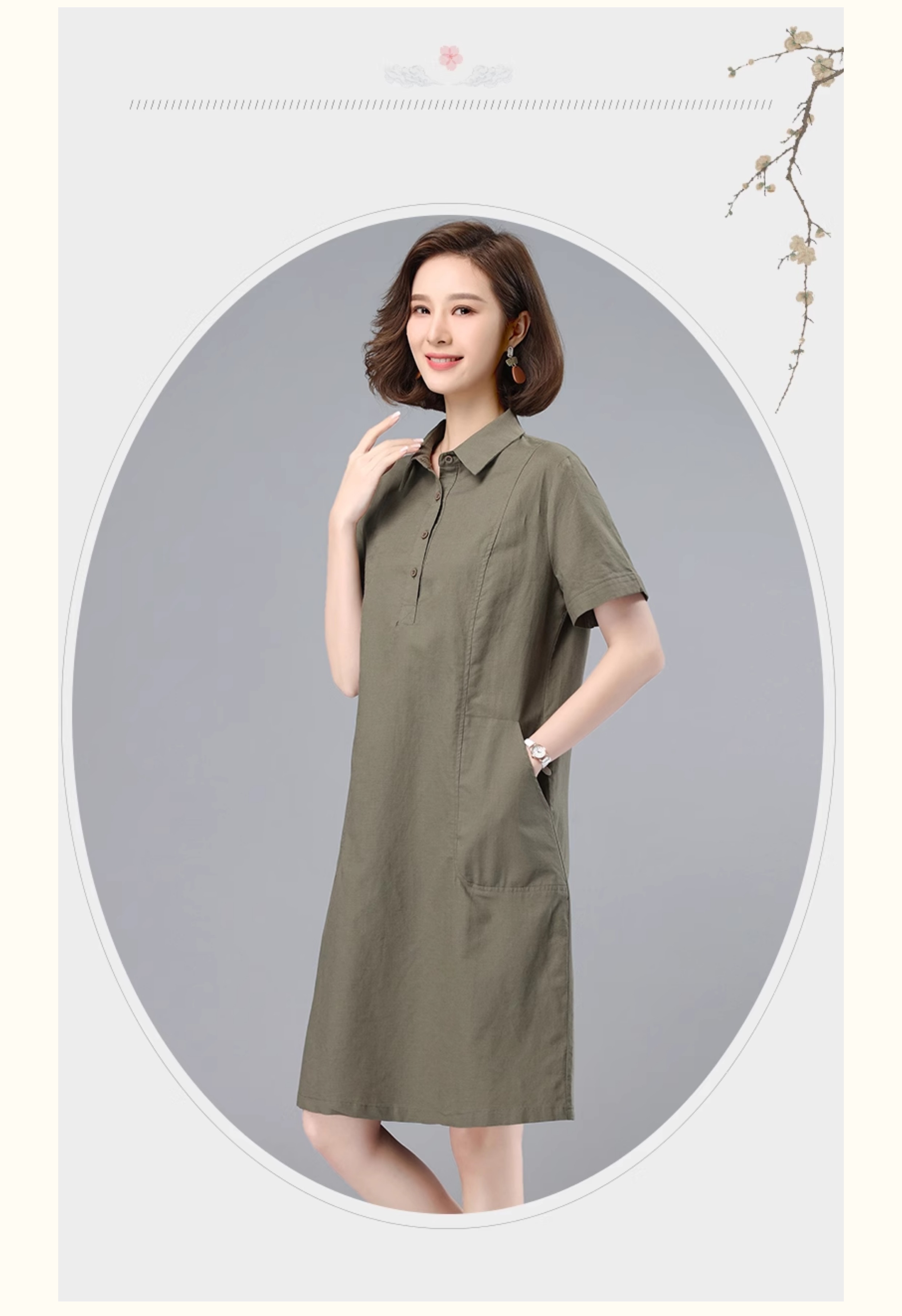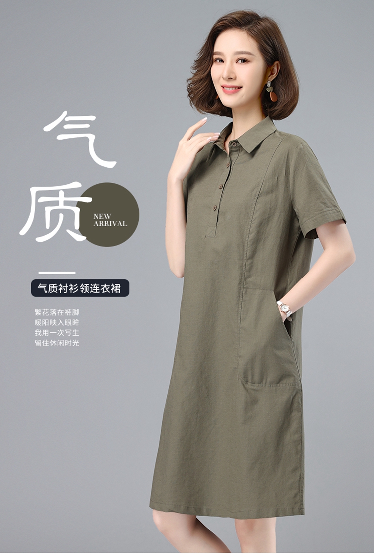 亞麻連衣裙女短袖2025夏季新款媽媽休閒顯瘦遮肚子高級棉麻薄裙子