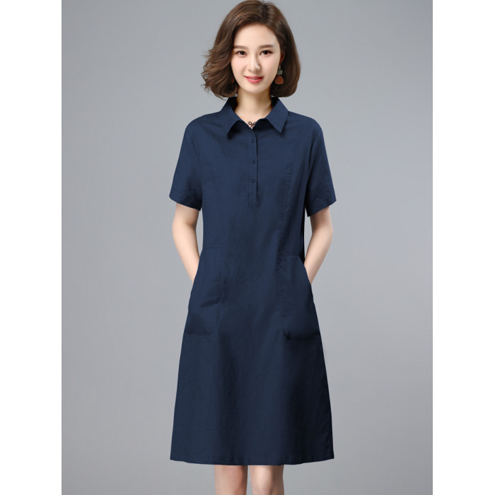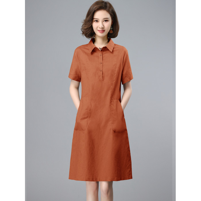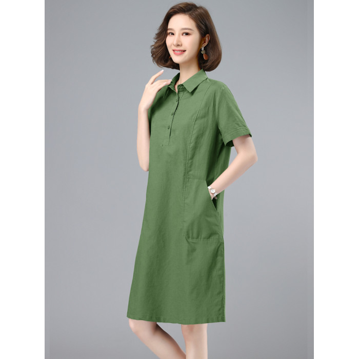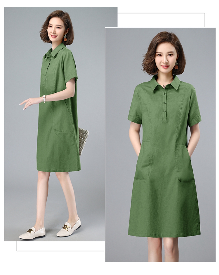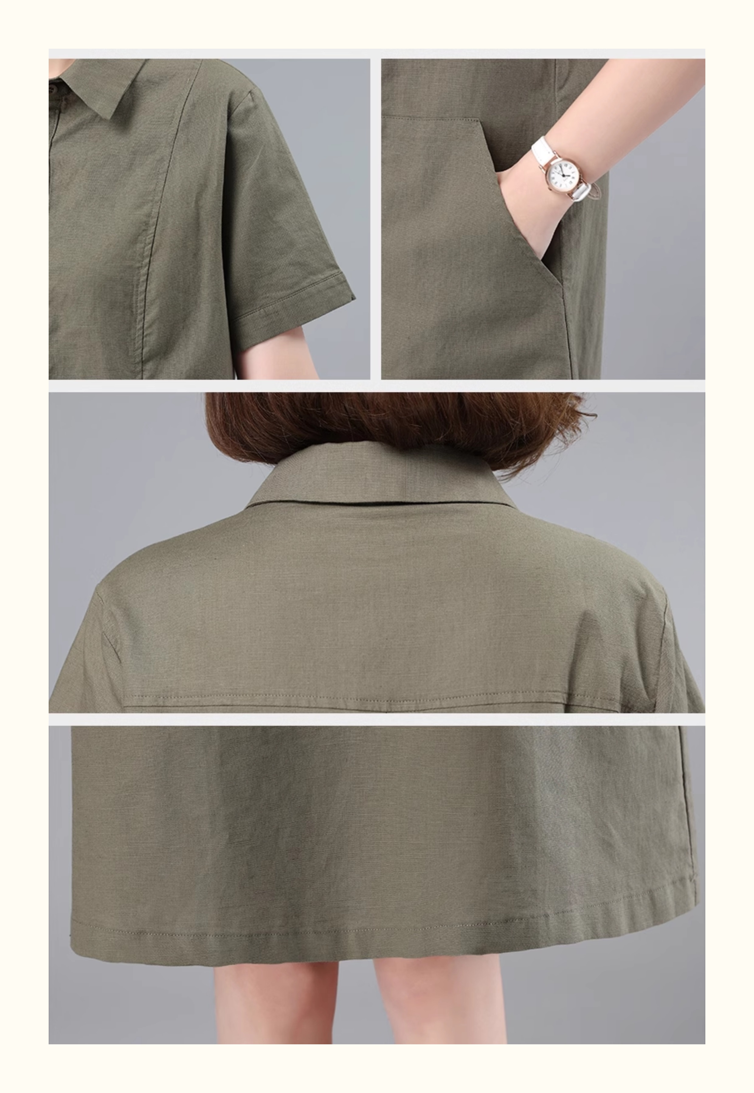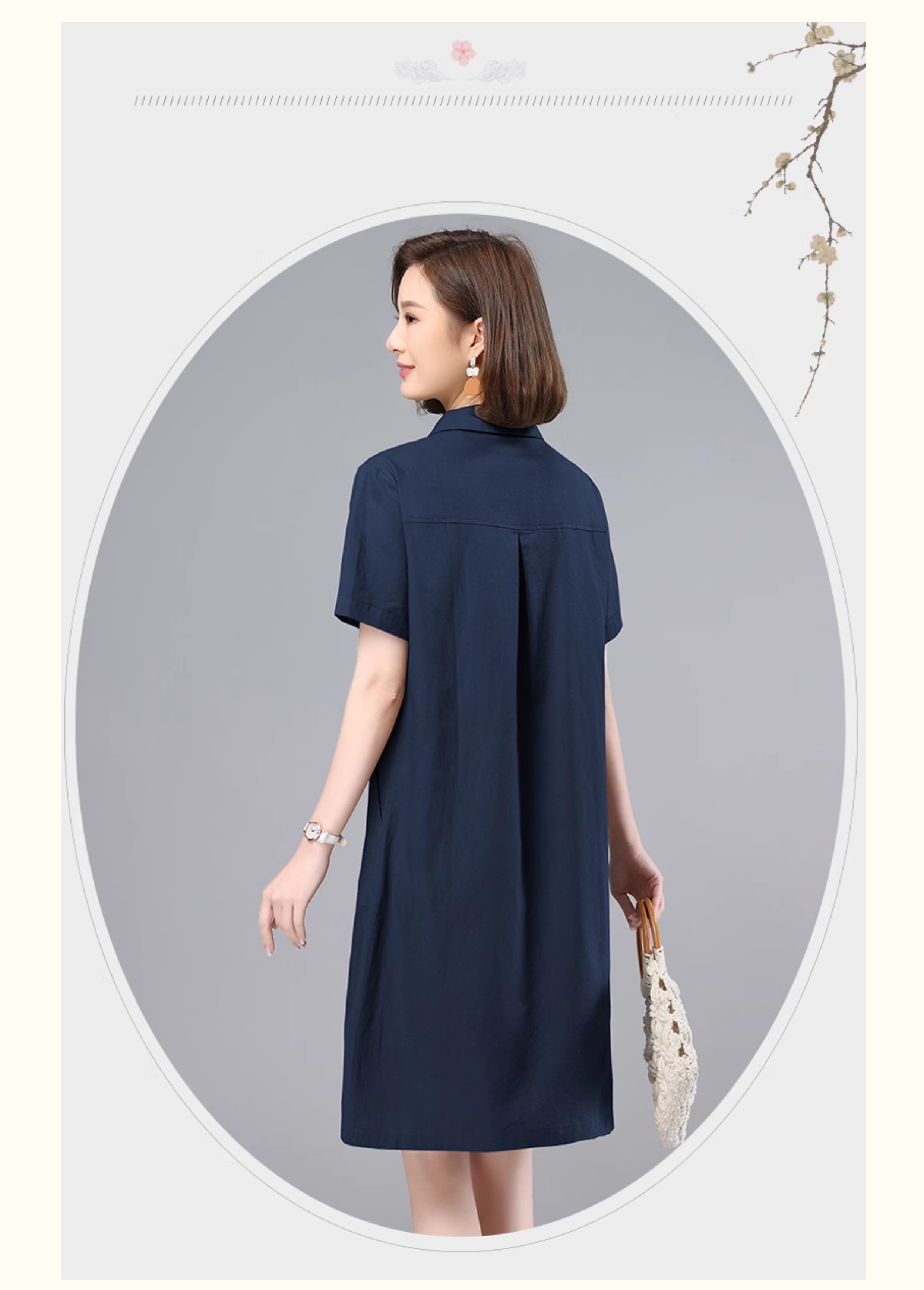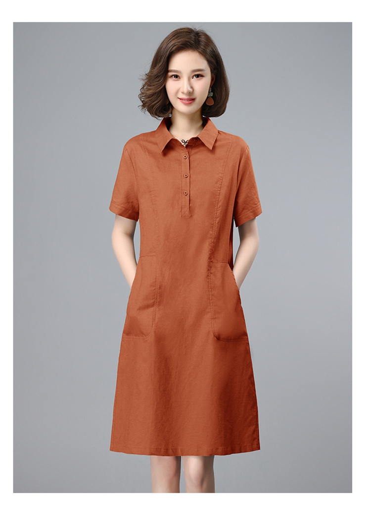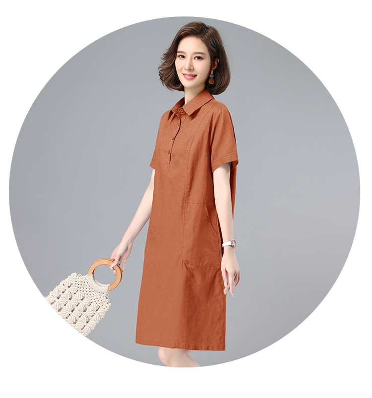 亞麻連衣裙女短袖2025夏季新款媽媽休閒顯瘦遮肚子高級棉麻薄裙子