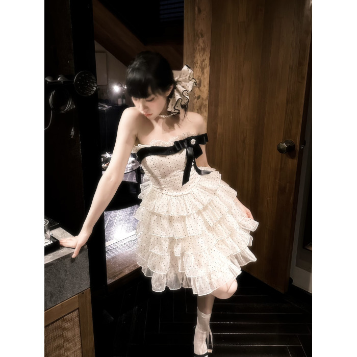 muggle studio 修訂版 夏季波點千金吊帶蛋糕生日小禮裙連衣裙miu