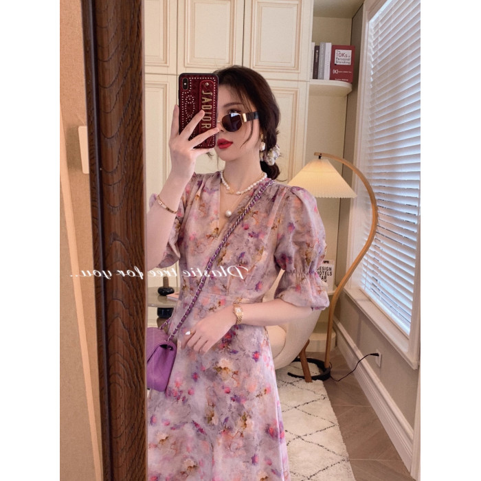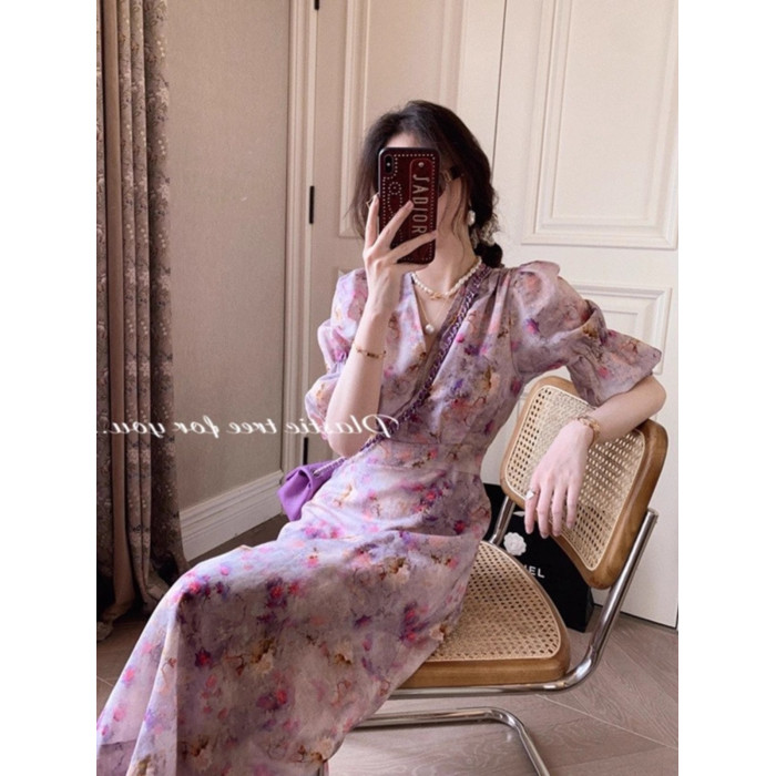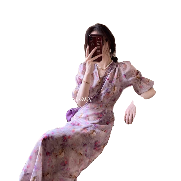 歐洲站2025夏裝新款氣質名媛碎花輕熟高級感有女人味的長裙連衣裙