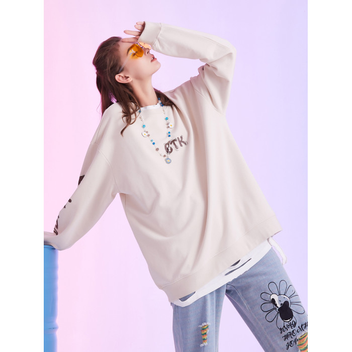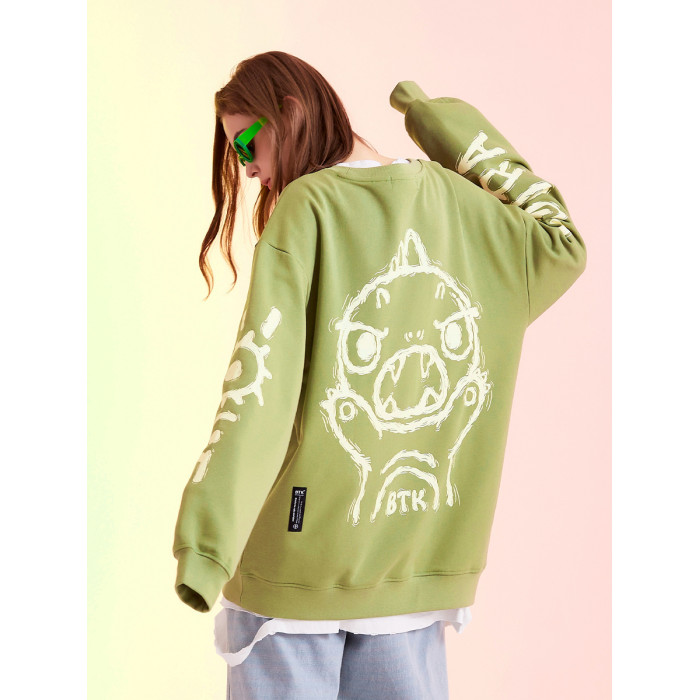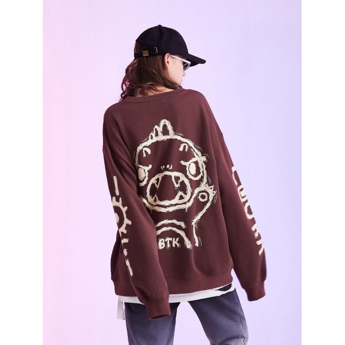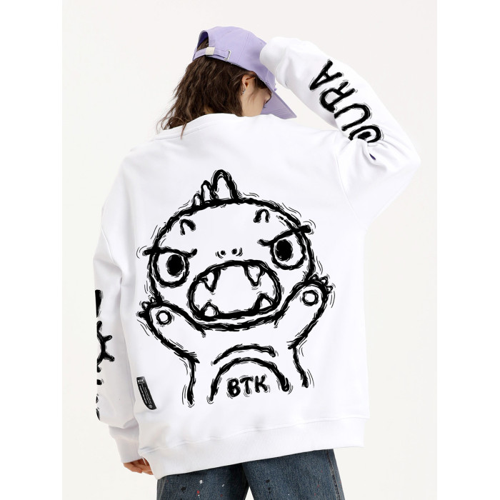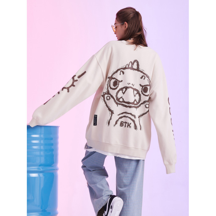 BTK春秋潮牌圓領衛衣男女可愛小怪獸情侶寬松長袖打底衫套頭外套
