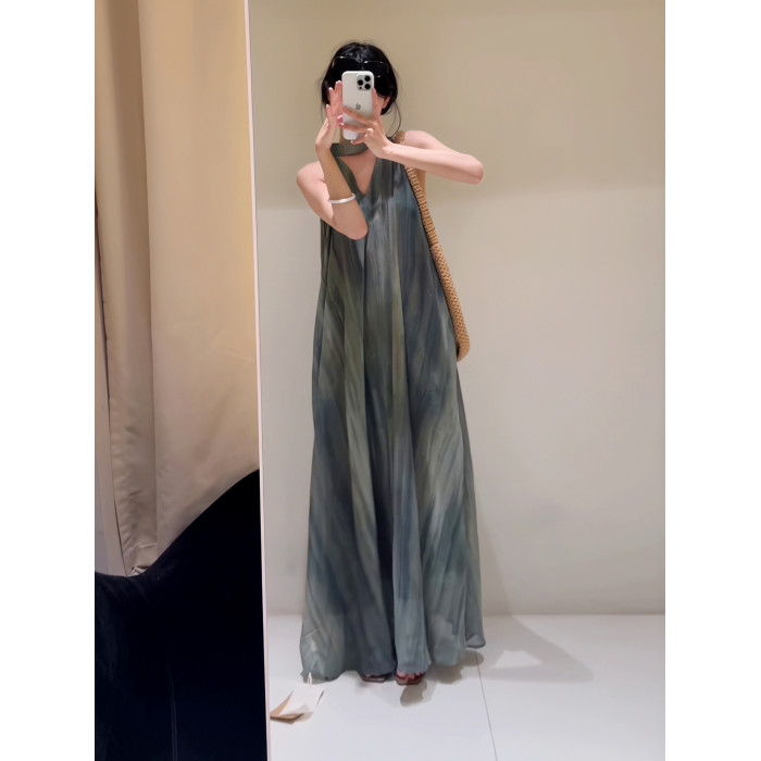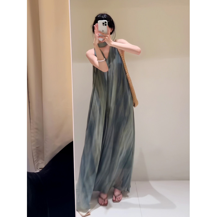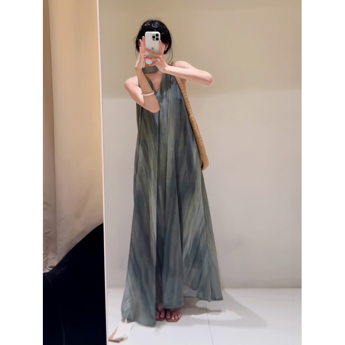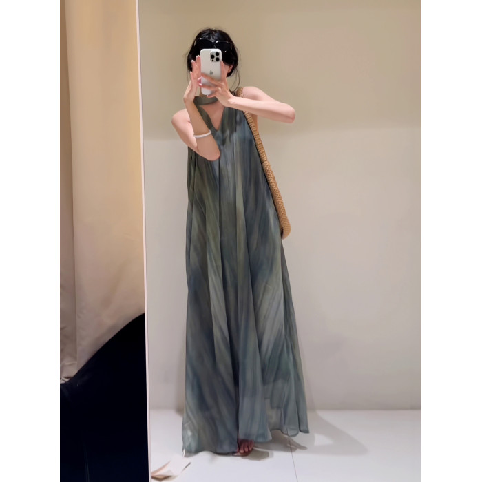 2025新款慵懶風法式藍色無袖吊帶連衣裙子女夏季海邊度假仙女長裙
