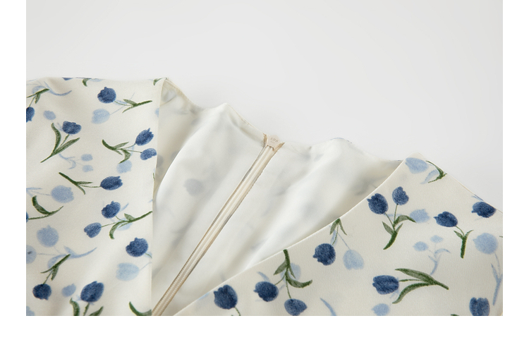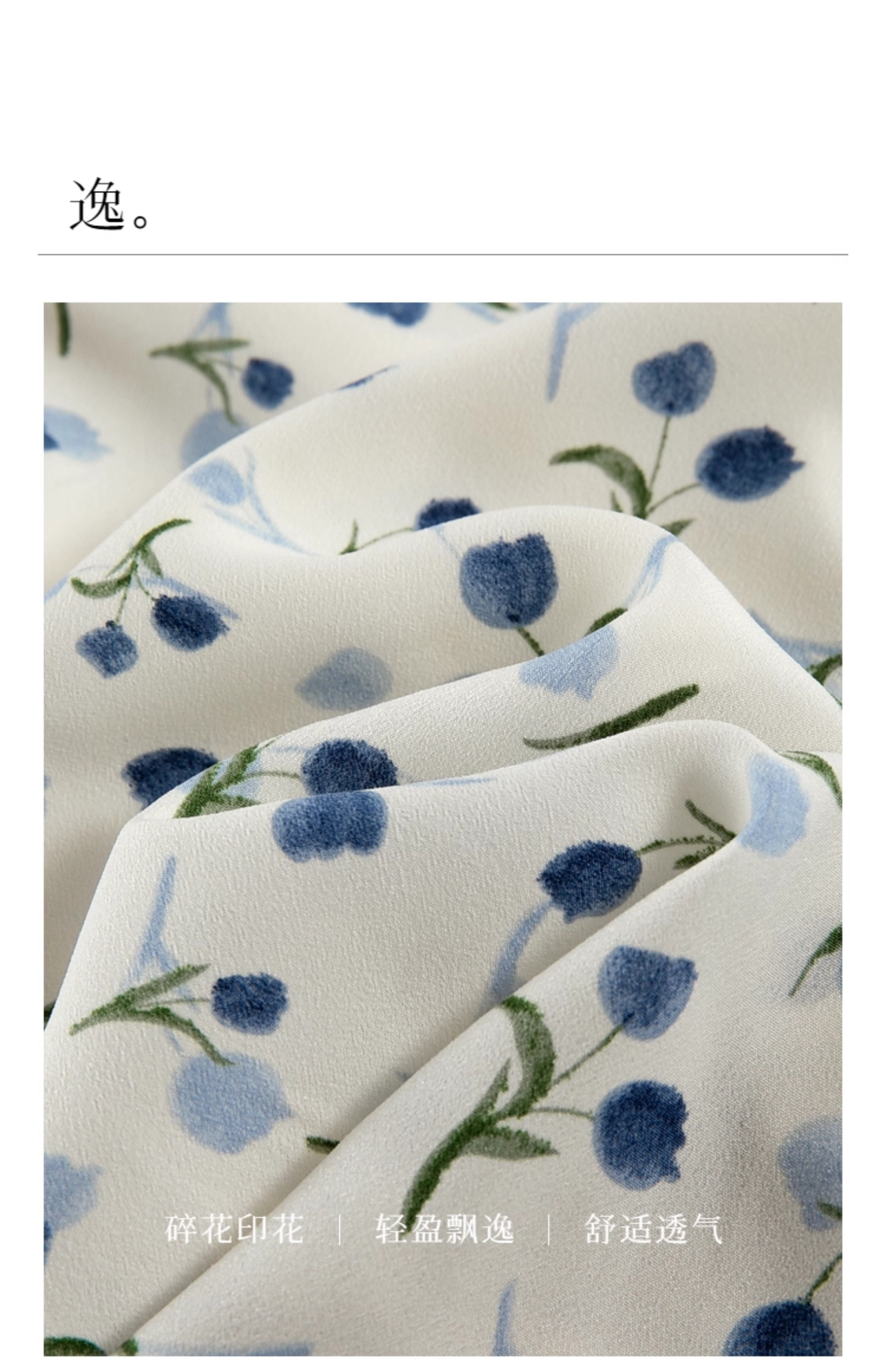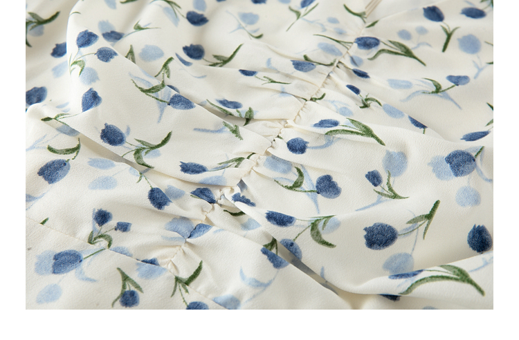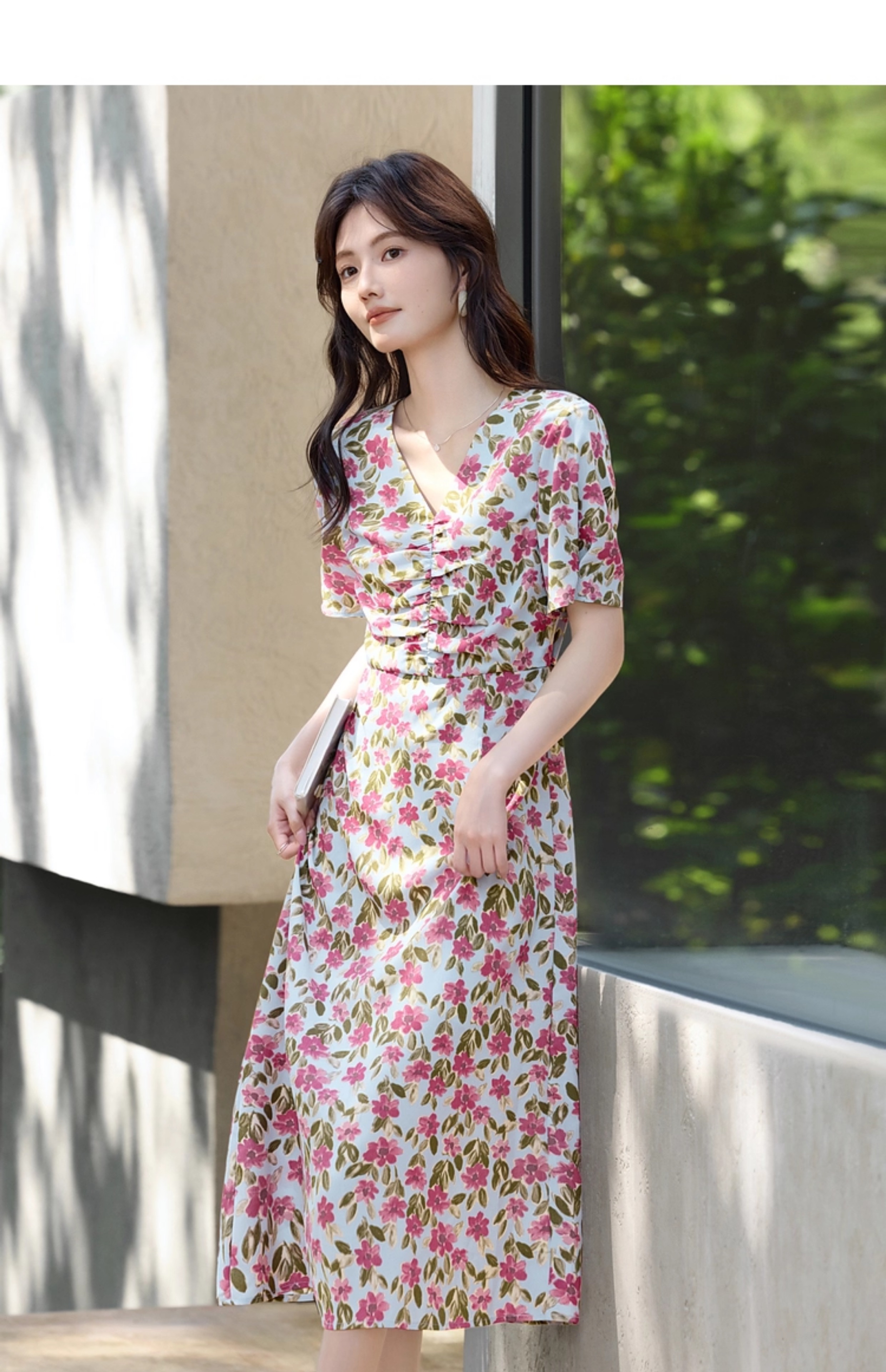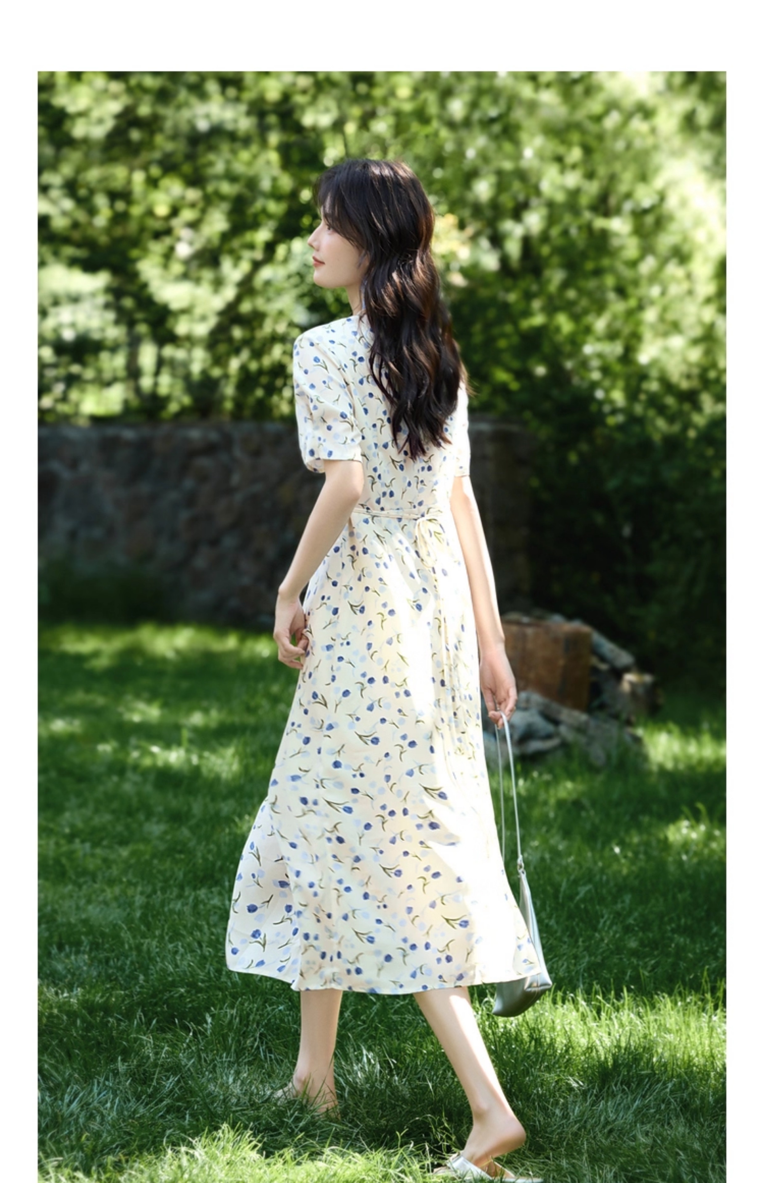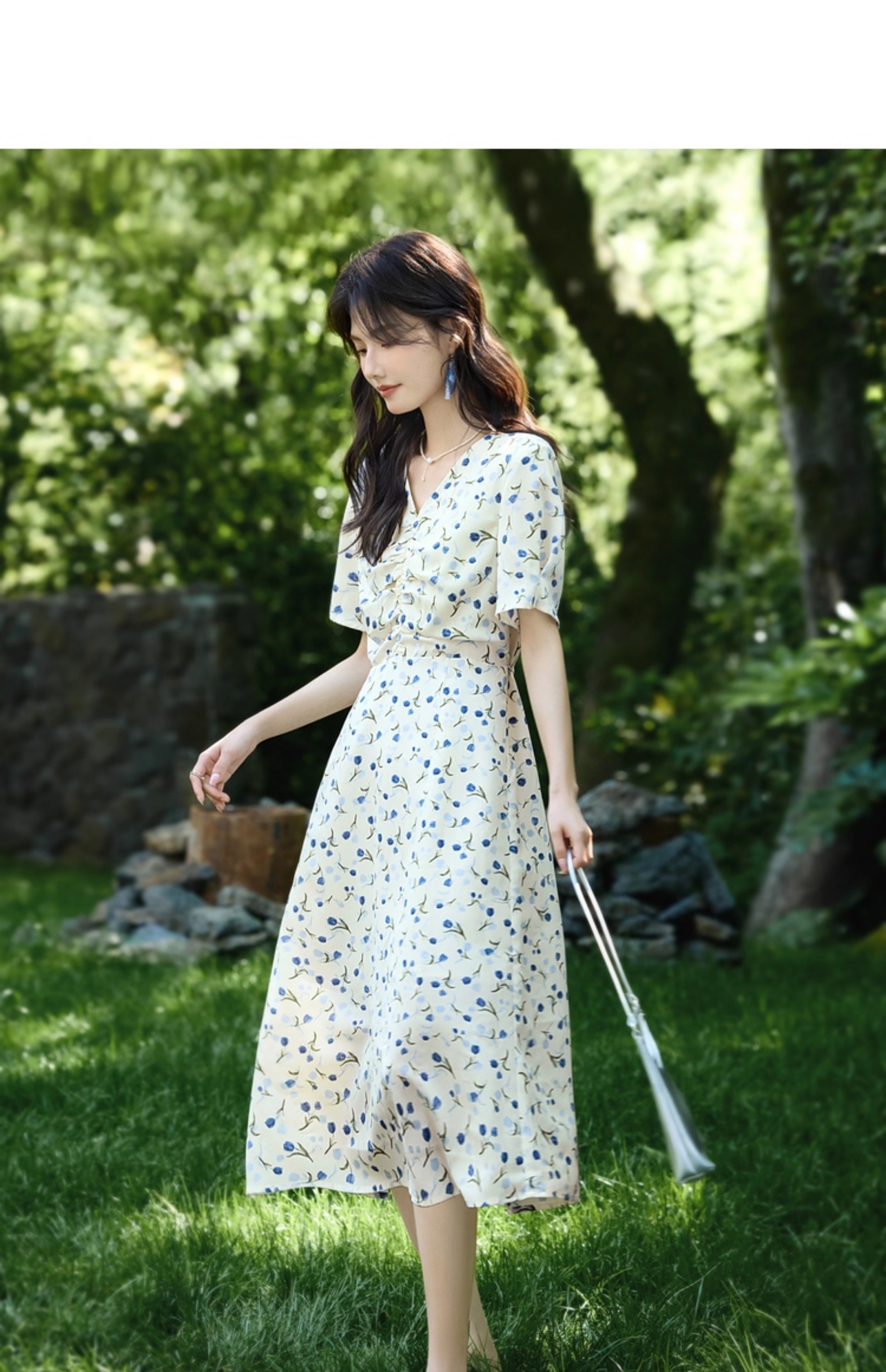 XWI訢未法式優雅V領碎花連衣裙女夏海邊度假風穿搭掐腰氣質茶歇裙