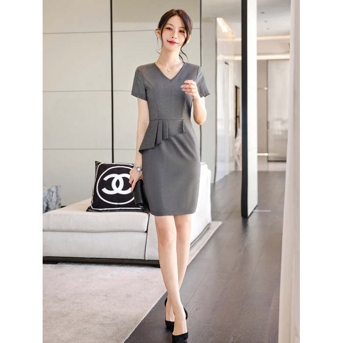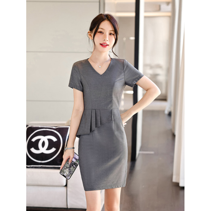 職業裝連衣裙女夏季售樓部珠寶店工裝裙子酒店服務員美容院工作服