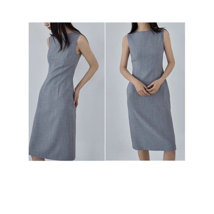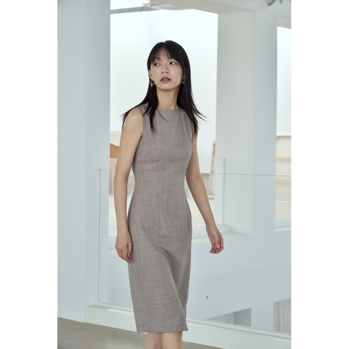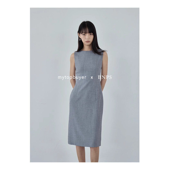 mytopbuyer/BNPS 經典無袖修身精裁連衣裙中裙灰色/粉棕色24新品