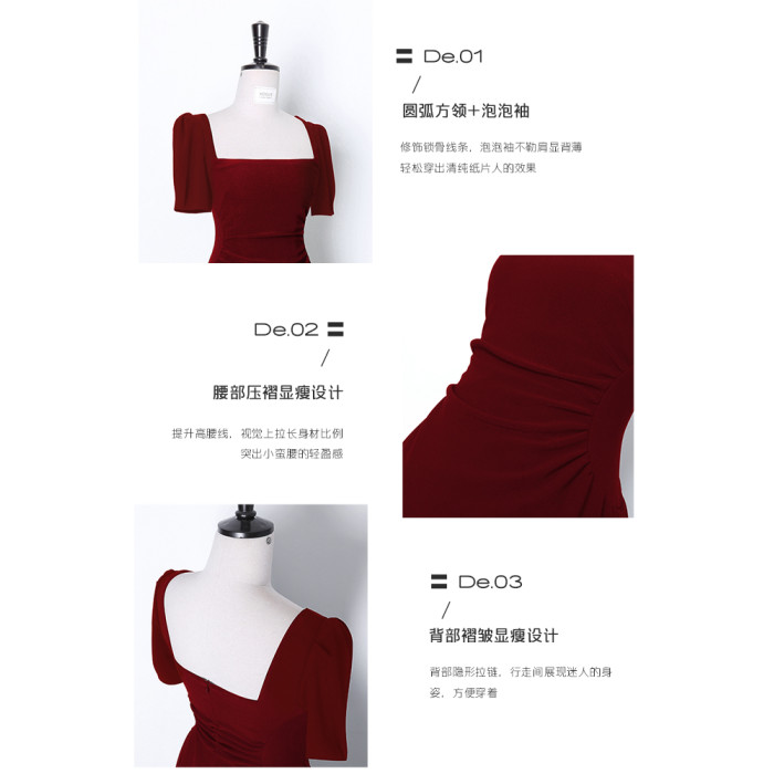 紅色連衣裙女法式赫本風高級訂婚禮服日常可穿小紅裙敬酒服春秋夏