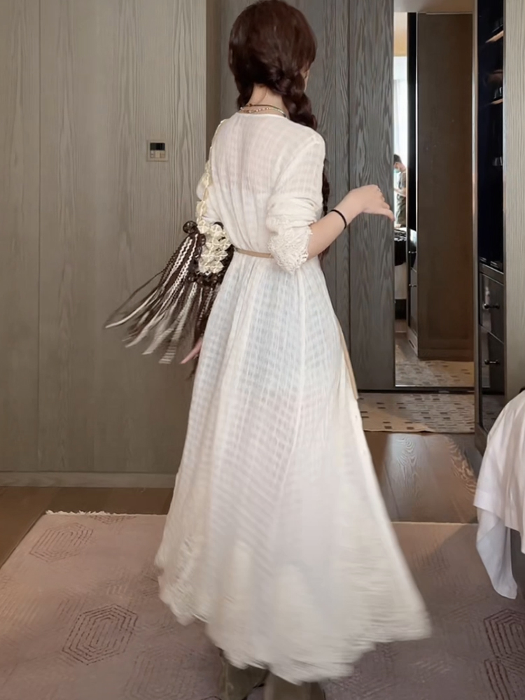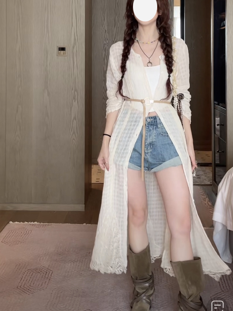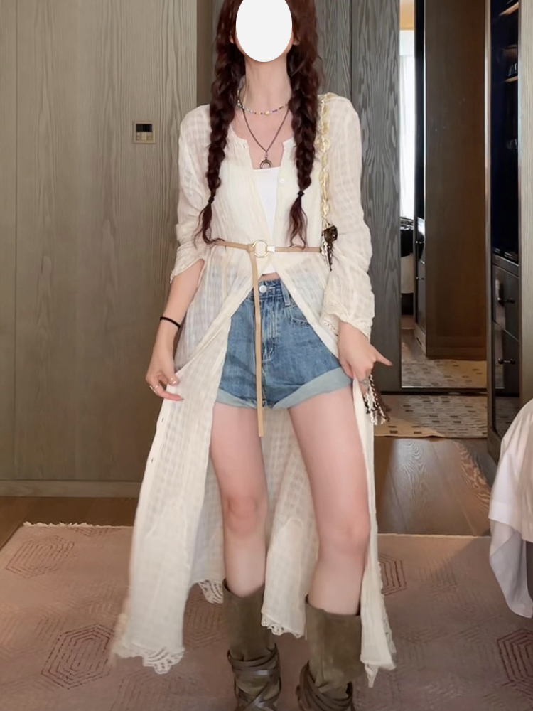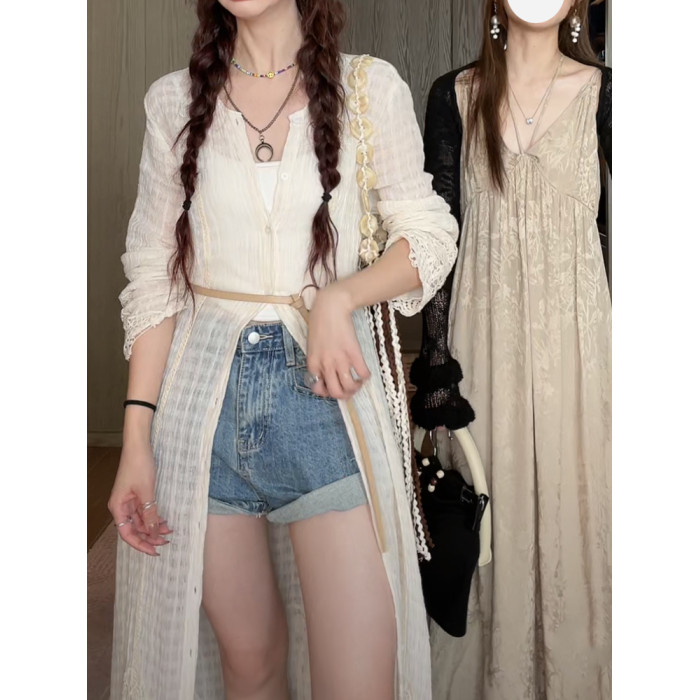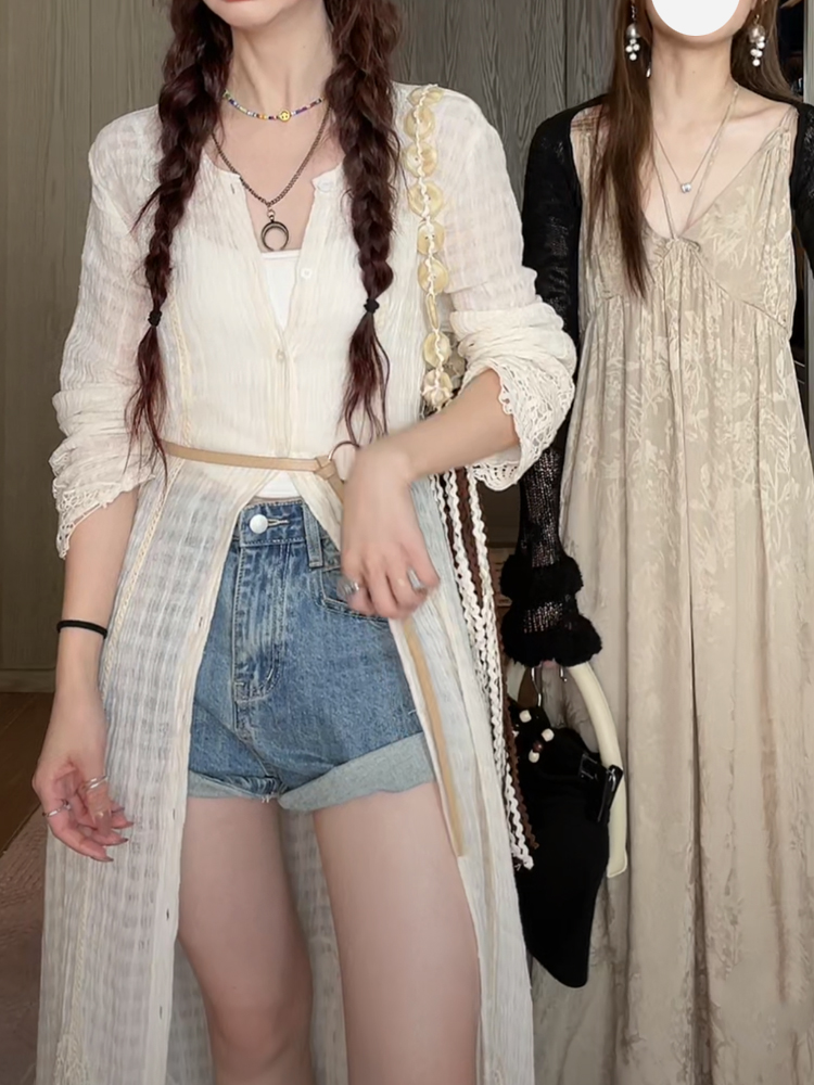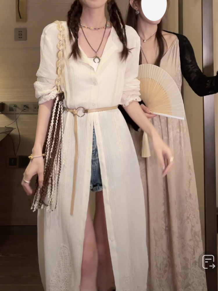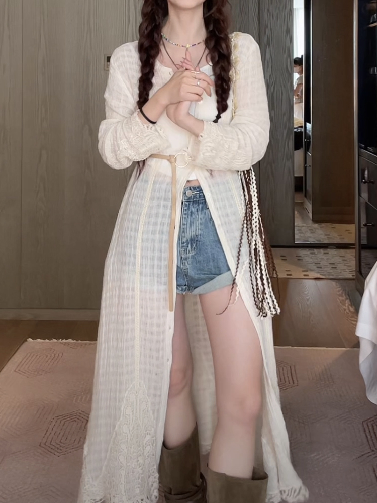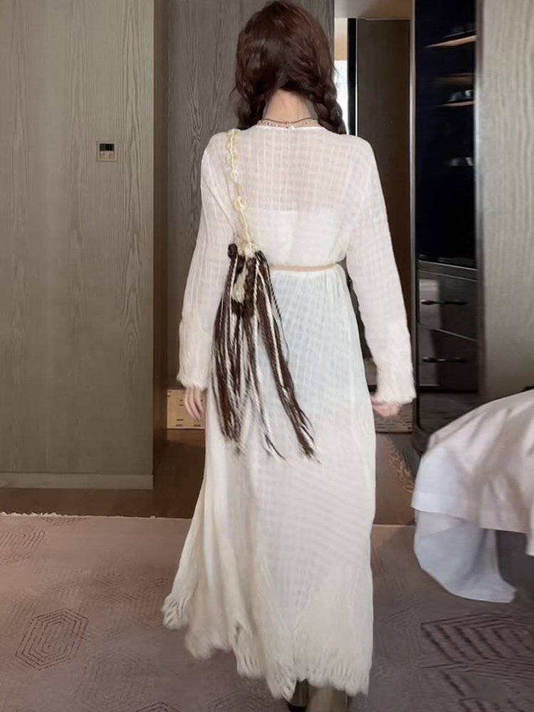 新疆旅遊穿搭女裝草原沙漠連衣裙外搭波西米亞防曬罩衫開衫長款夏