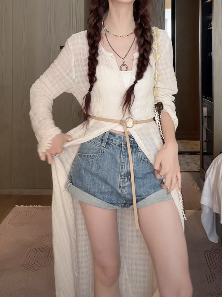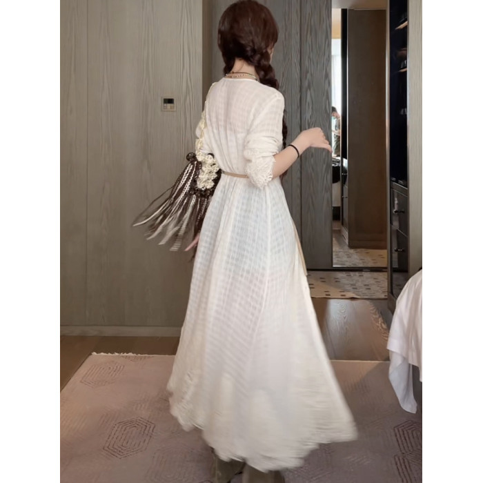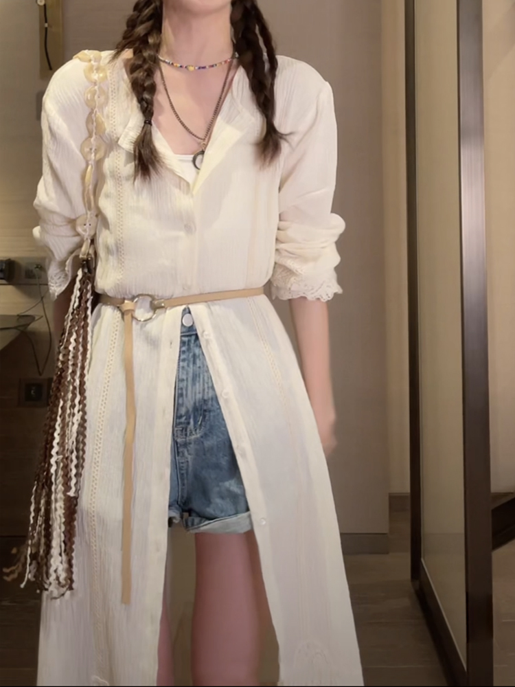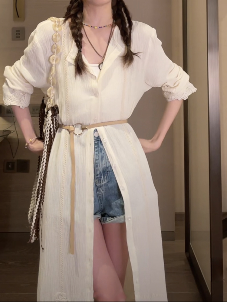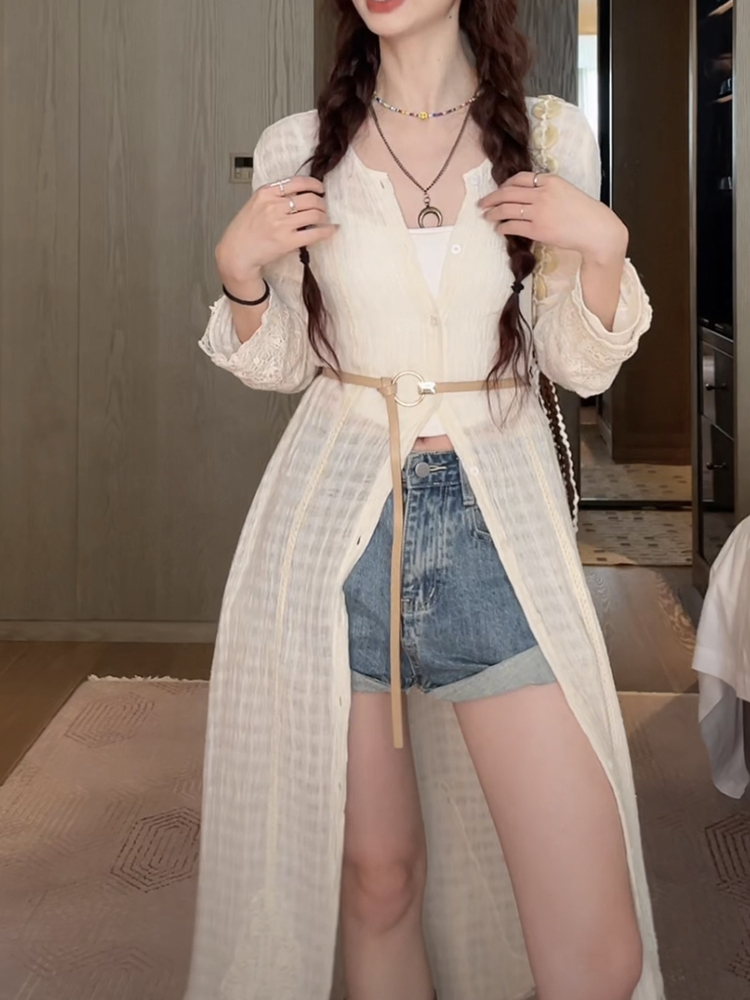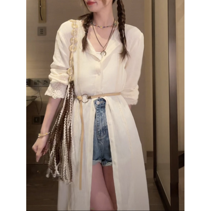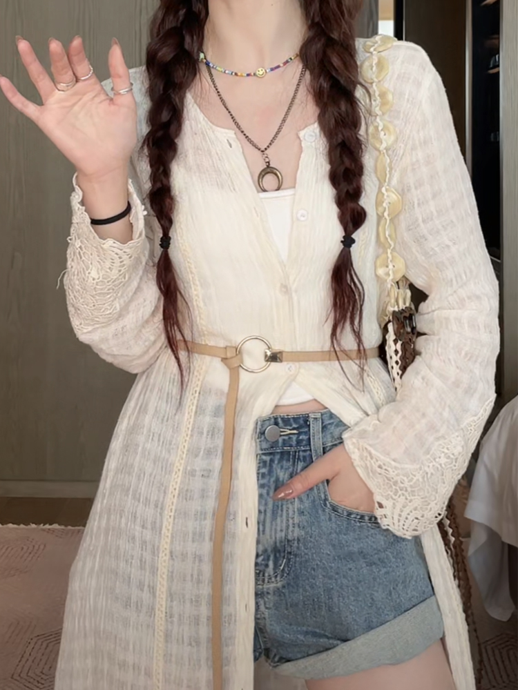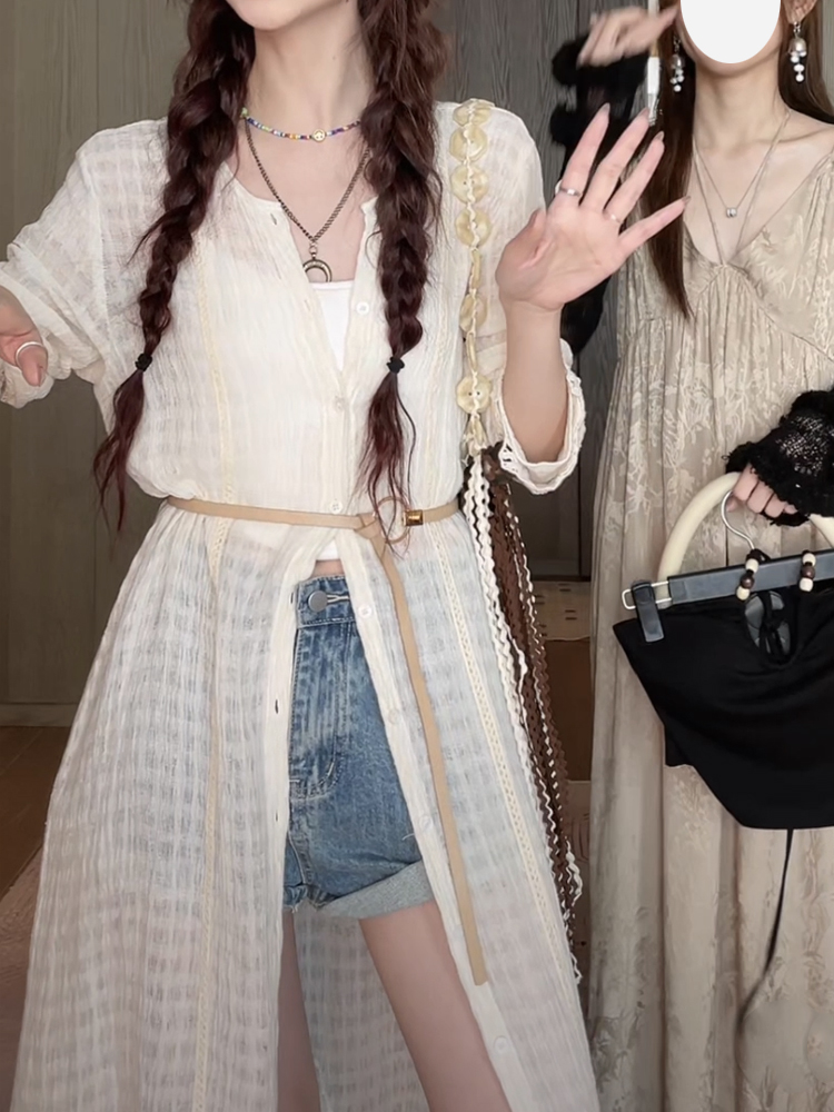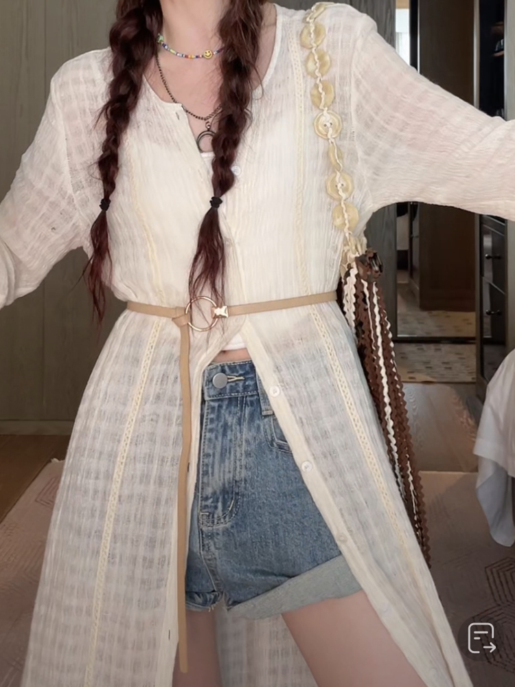 新疆旅遊穿搭女裝草原沙漠連衣裙外搭波西米亞防曬罩衫開衫長款夏