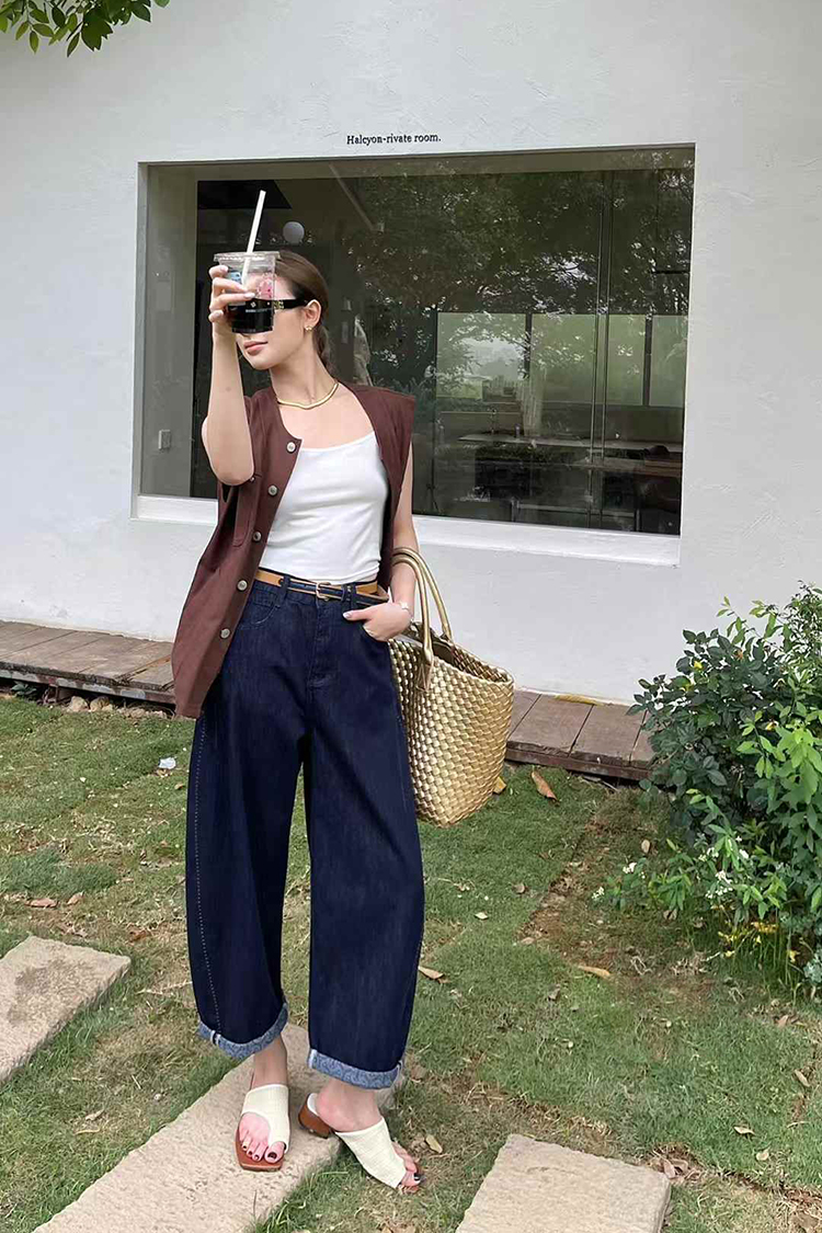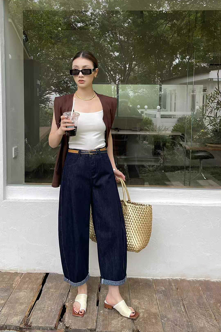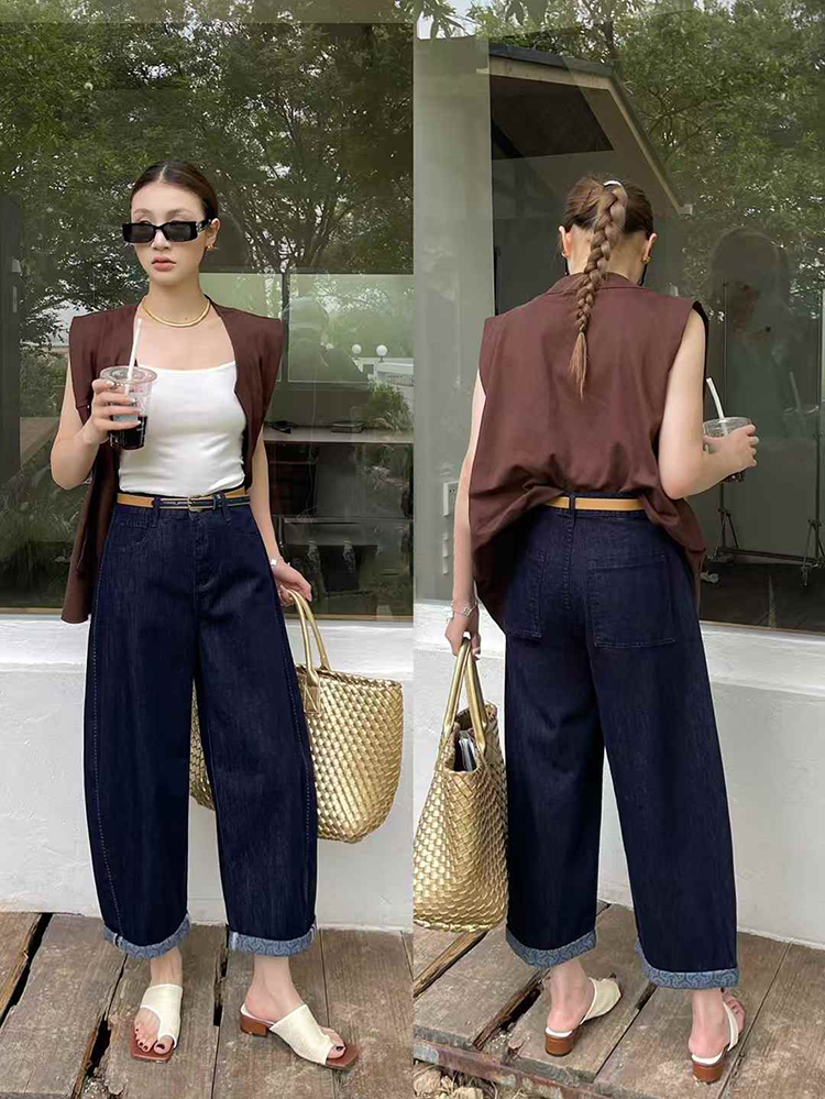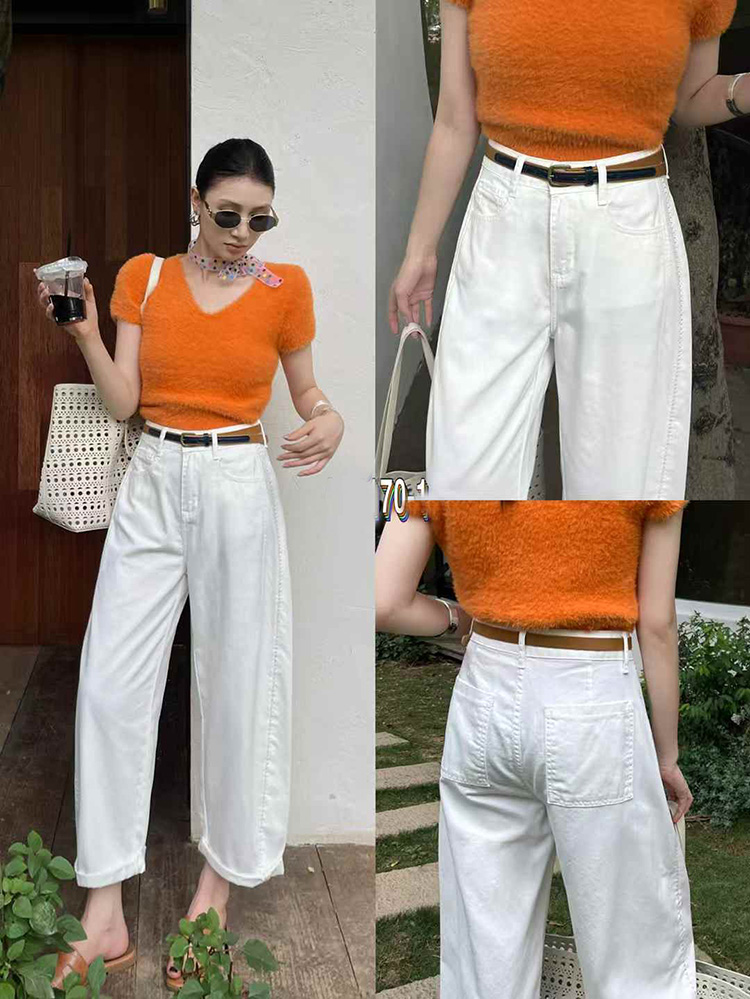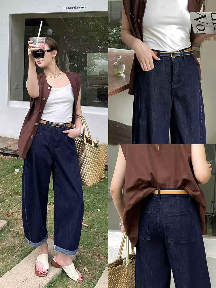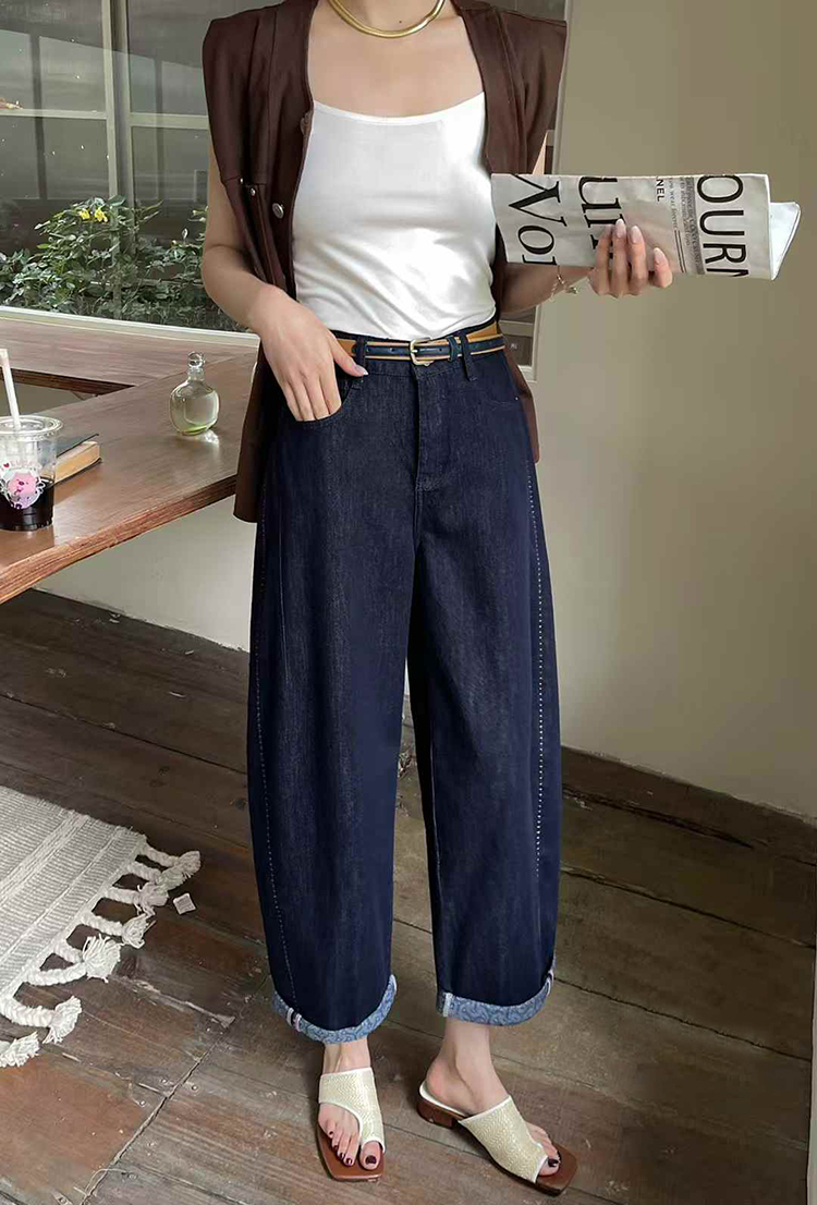 爆犀牛2025夏季新款寬松小個子彎刀褲女牛仔褲顯瘦直筒九分濶腿褲