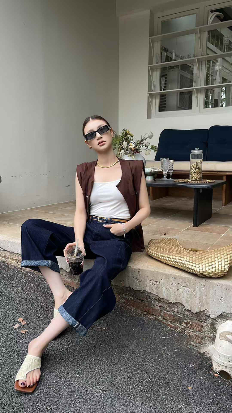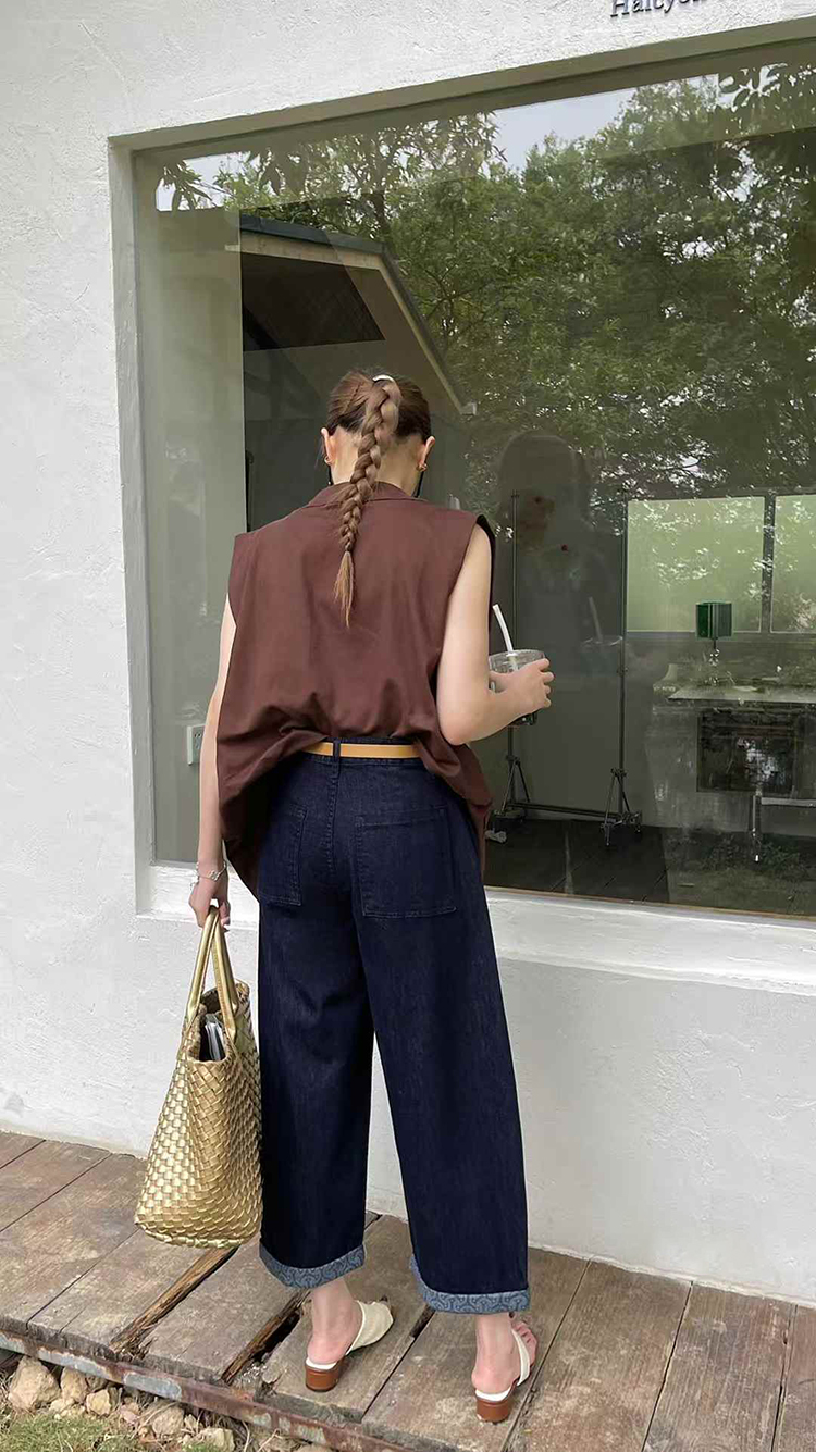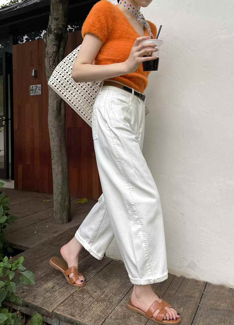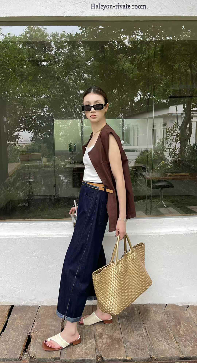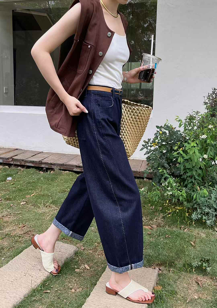 爆犀牛2025夏季新款寬松小個子彎刀褲女牛仔褲顯瘦直筒九分濶腿褲