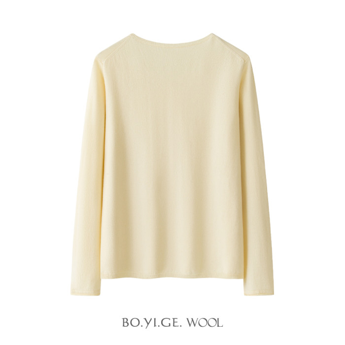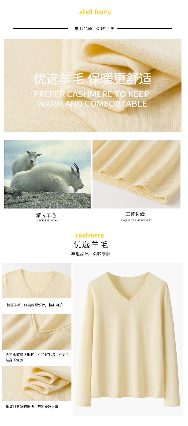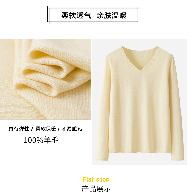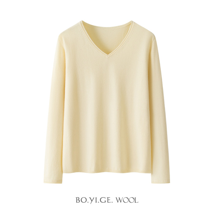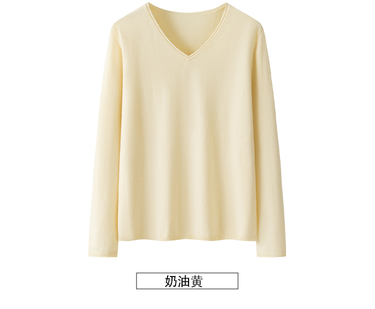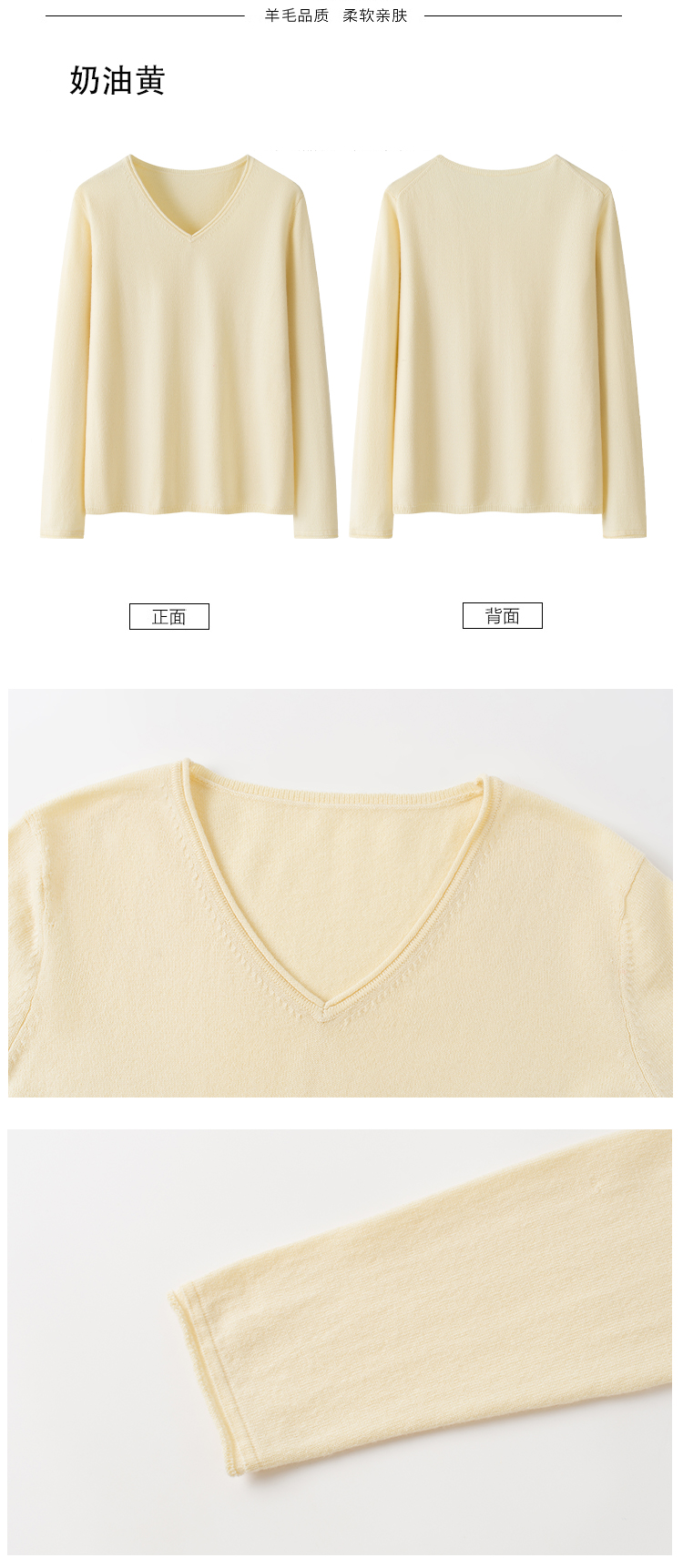 2025秋冬新品100%綿羊毛V領針織衫長袖純色套頭基礎百搭打底衫