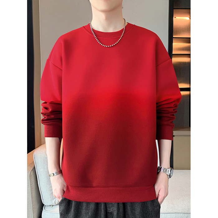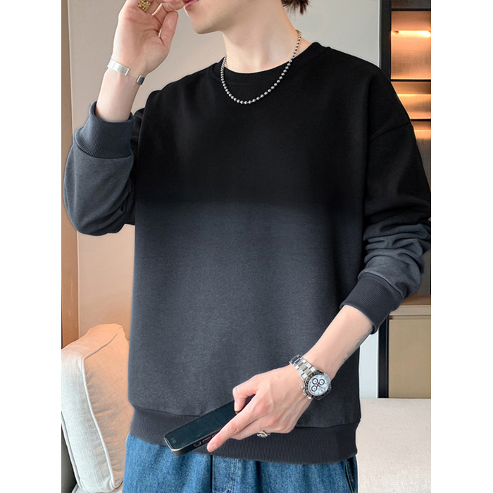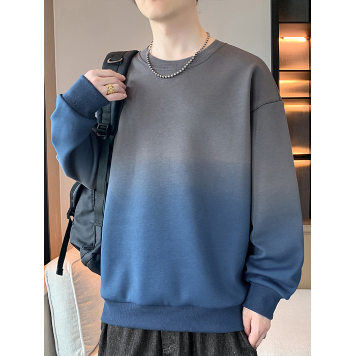唐獅集團DESSO漸變色圓領衛衣男春秋季潮流打底衫套頭內搭上衣服
