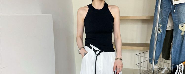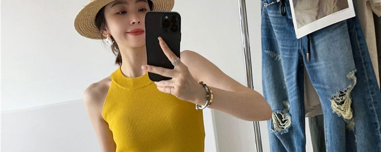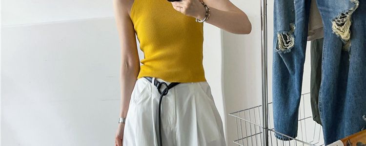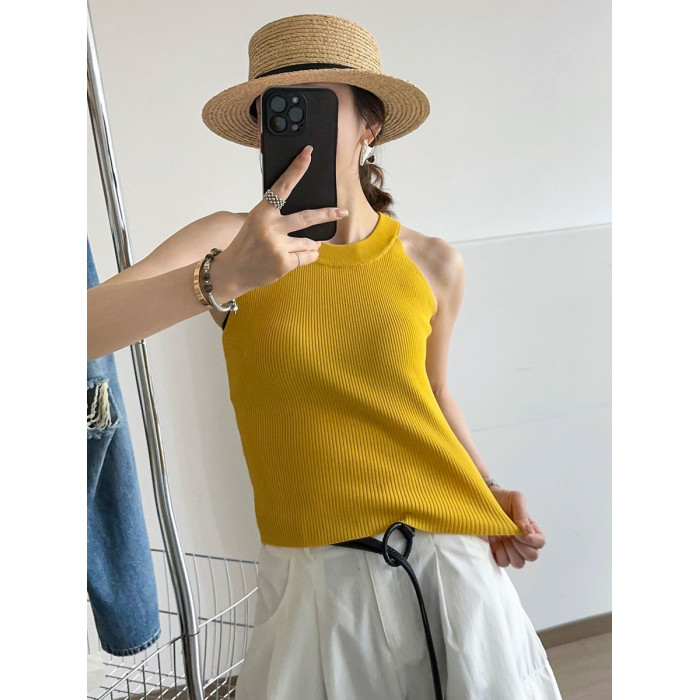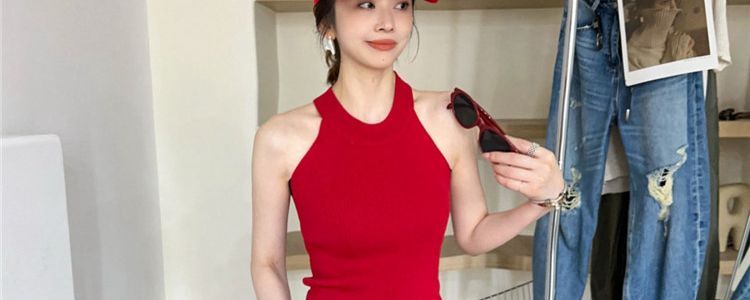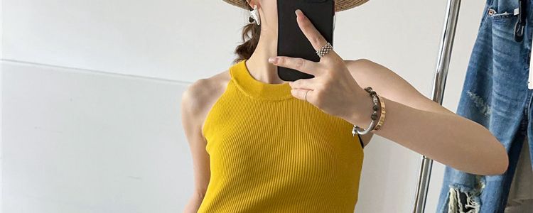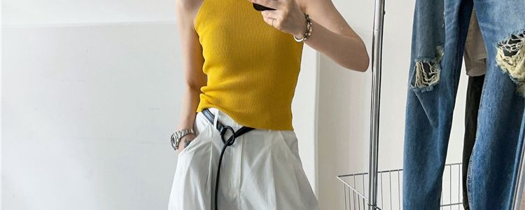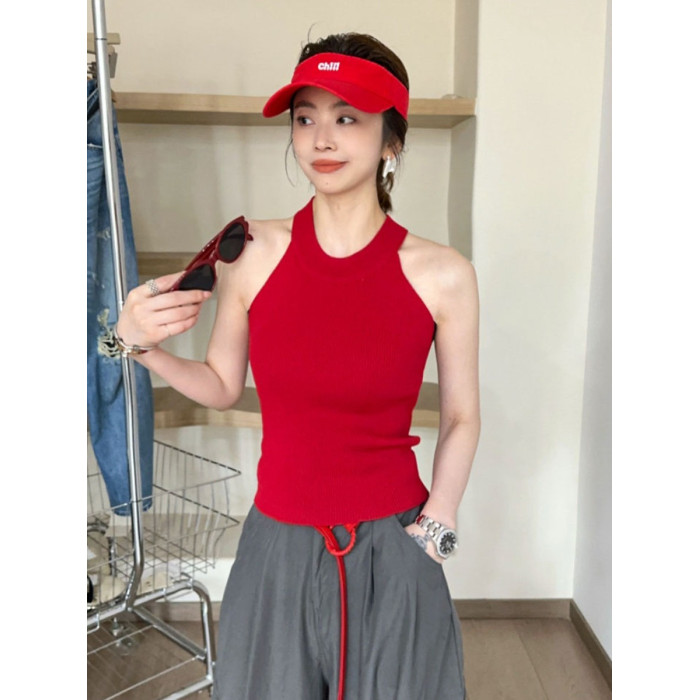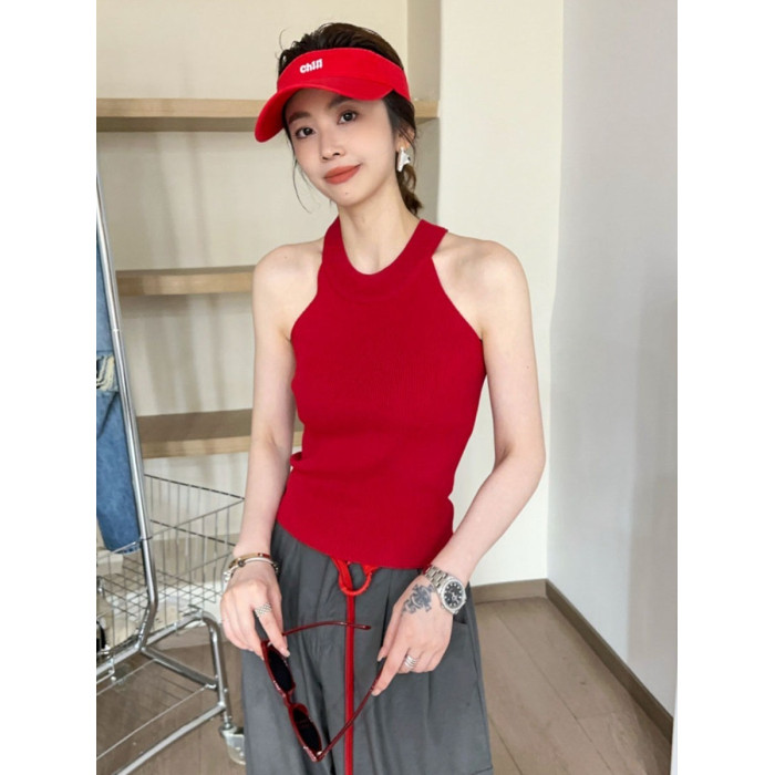 奧萊折釦店復古掛脖冰絲針織吊帶背心女歐洲站夏裝歐貨女裝打底衫