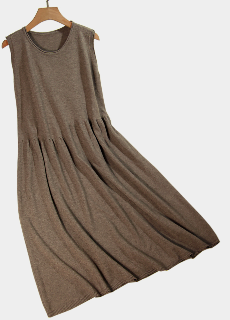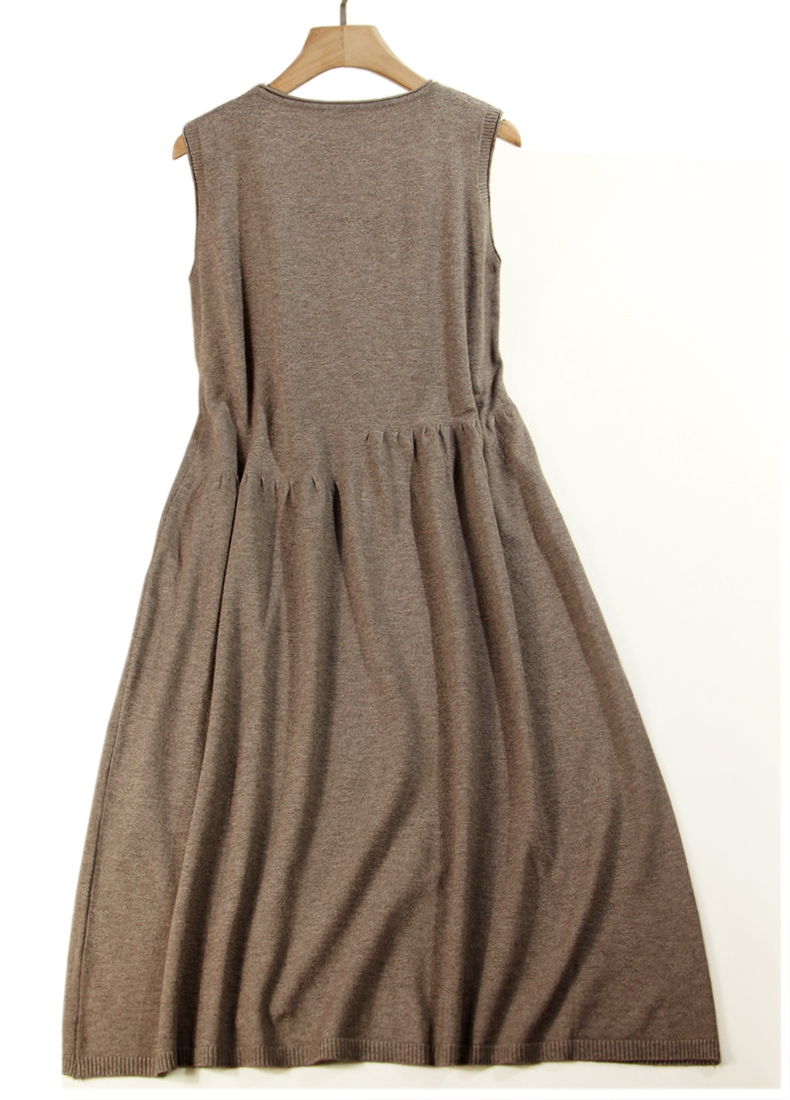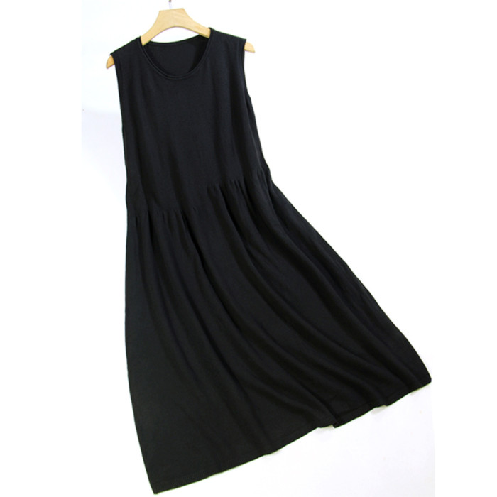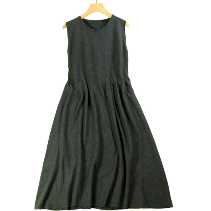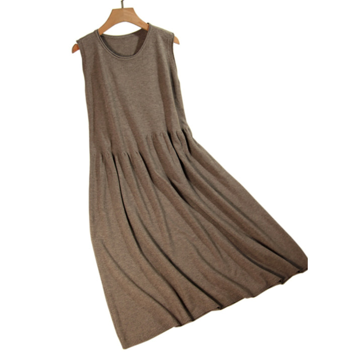 秋冬韓版中長款針織毛衣裙寬松顯瘦圓領羊毛無袖打底衫大碼女裝潮