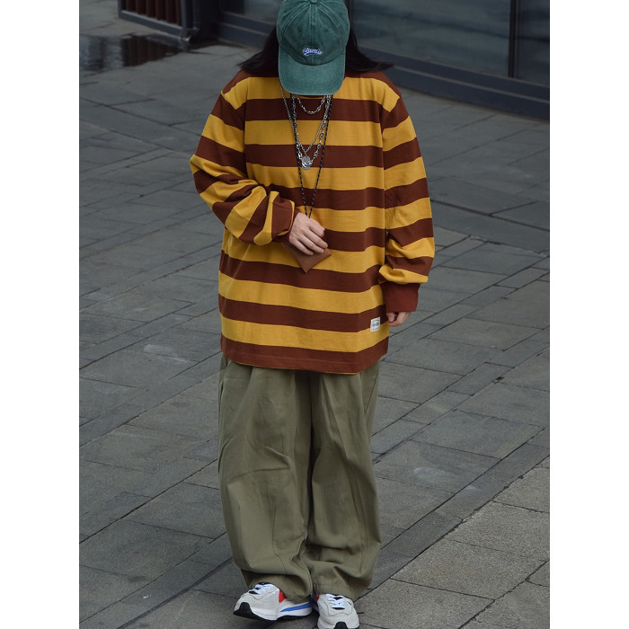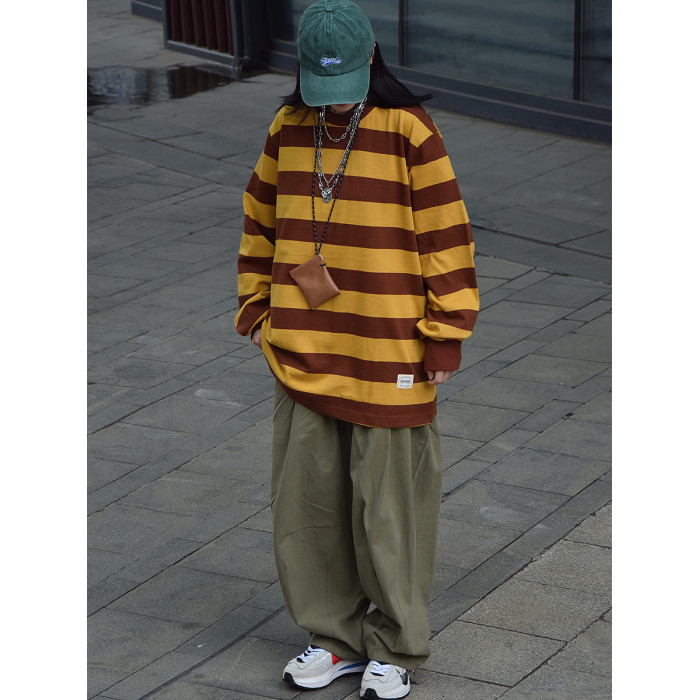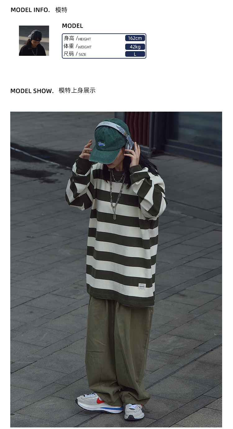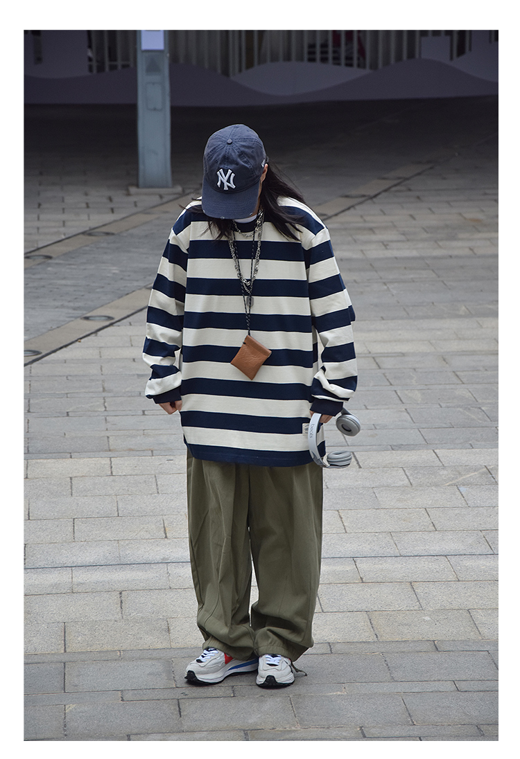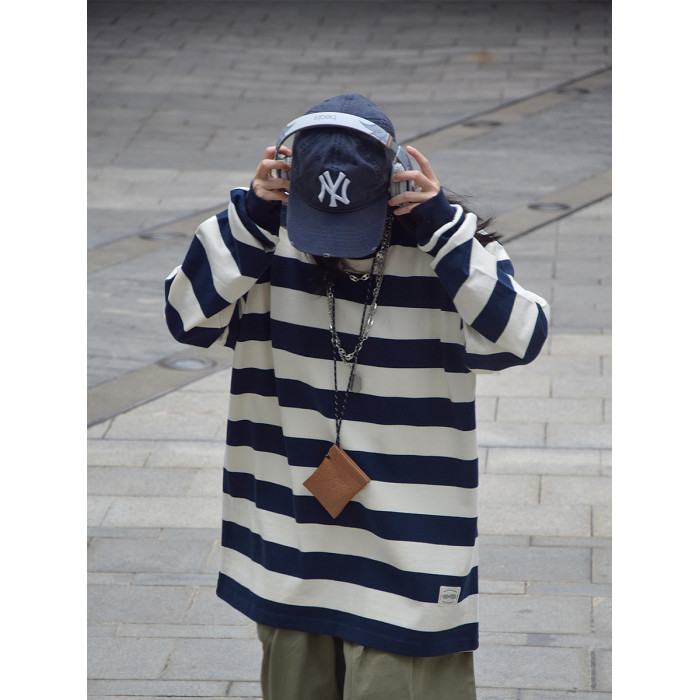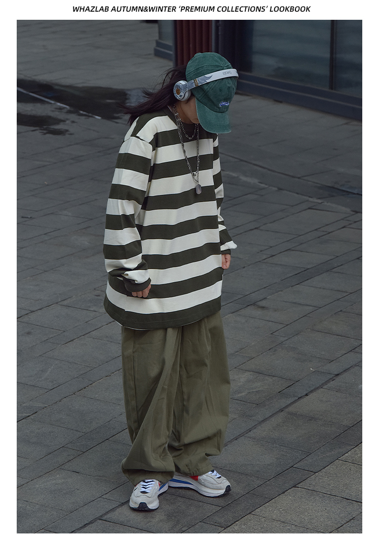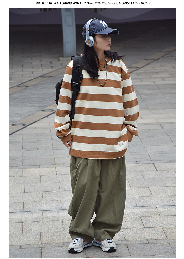 WHAZLAB|日系復古條紋重磅長袖打底衫衛衣寬松cityboy男女情侶潮