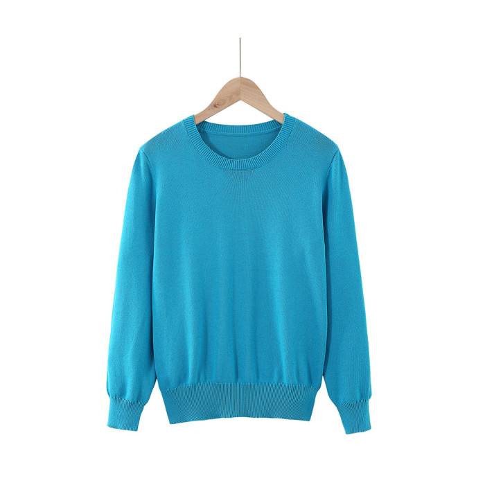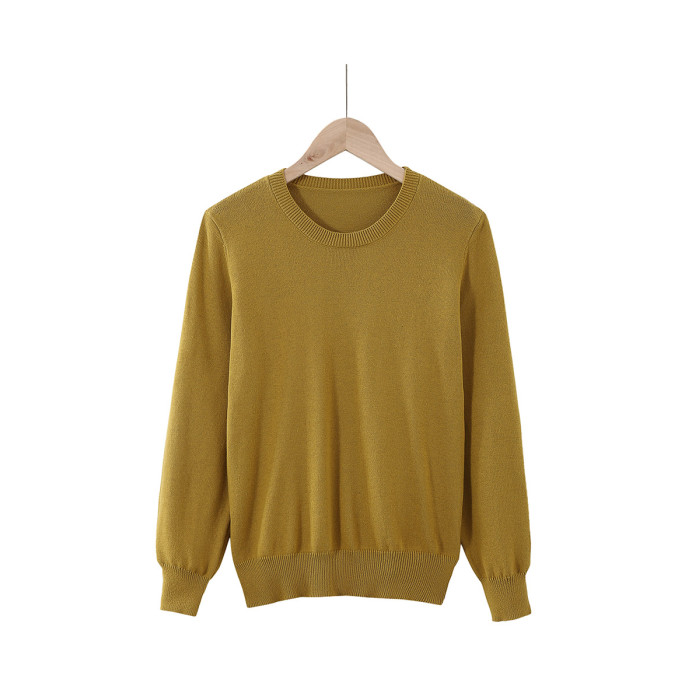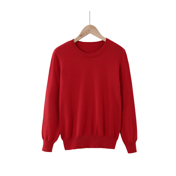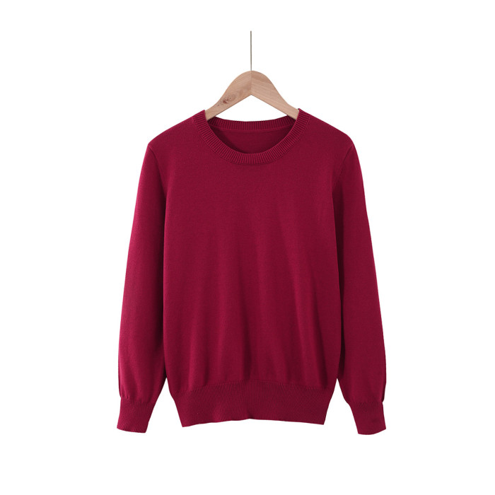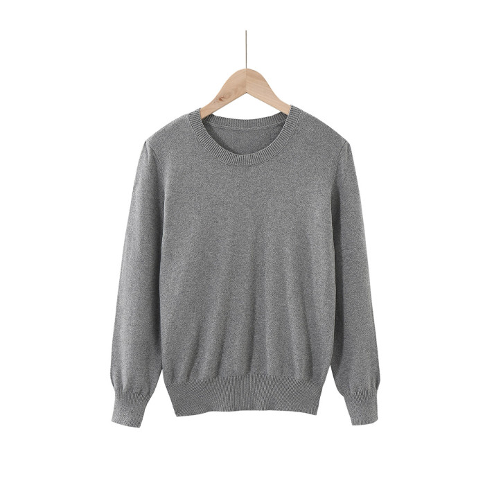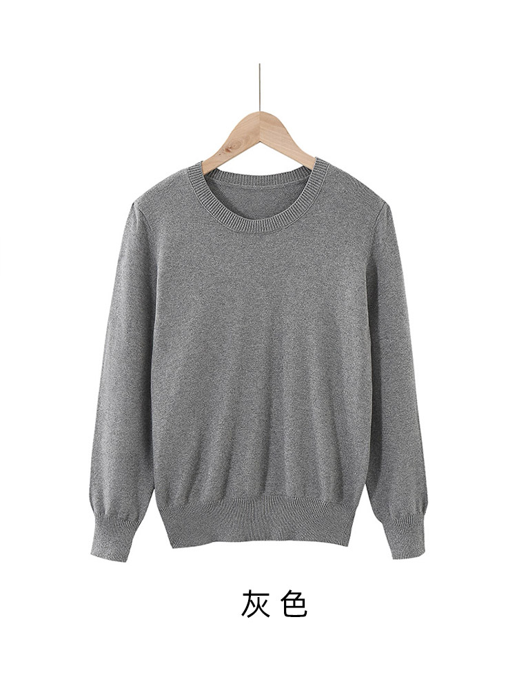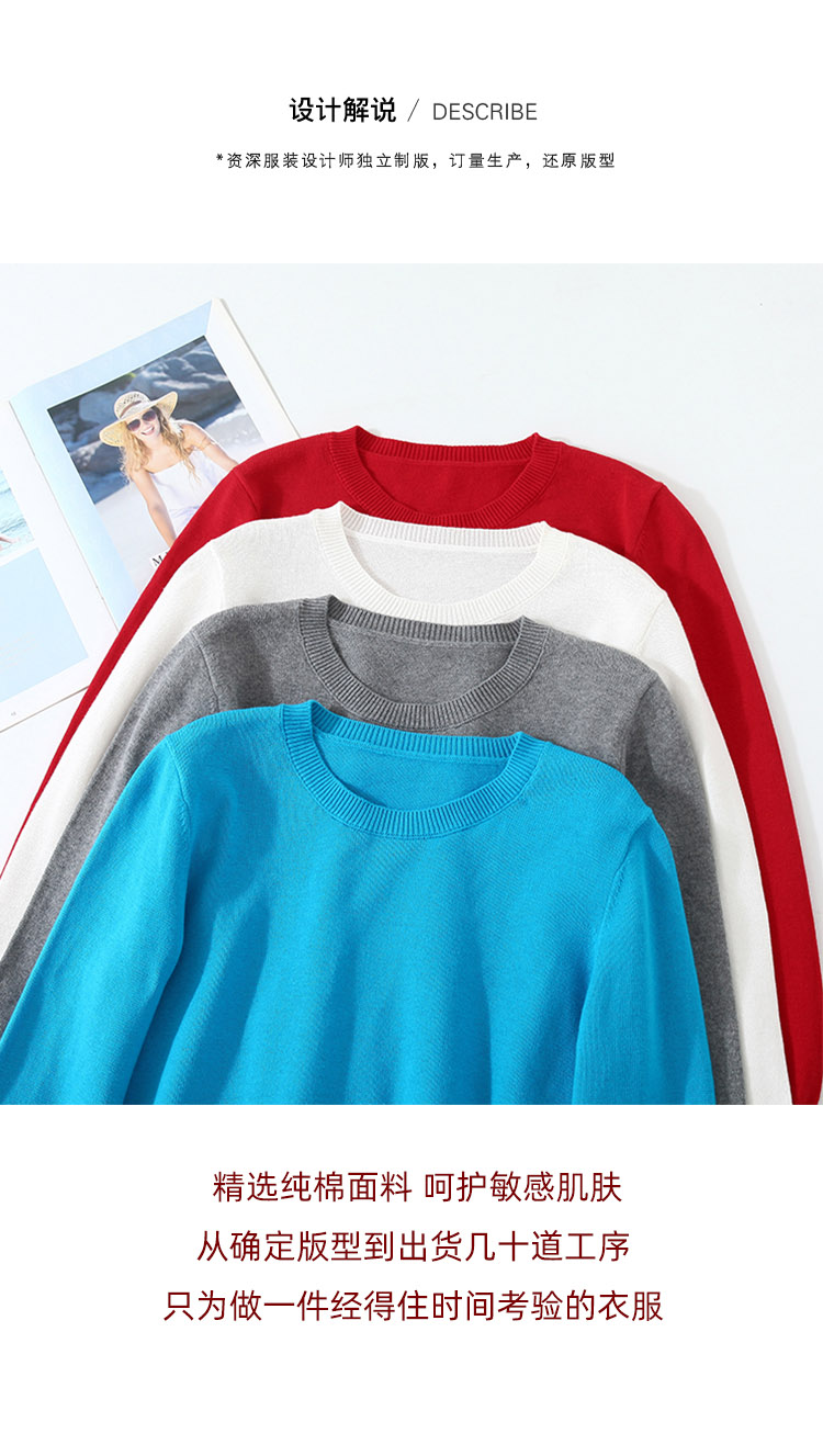純棉針織衫女圓領套頭毛衣春秋季大碼寬松打底衫百搭毛衣短款