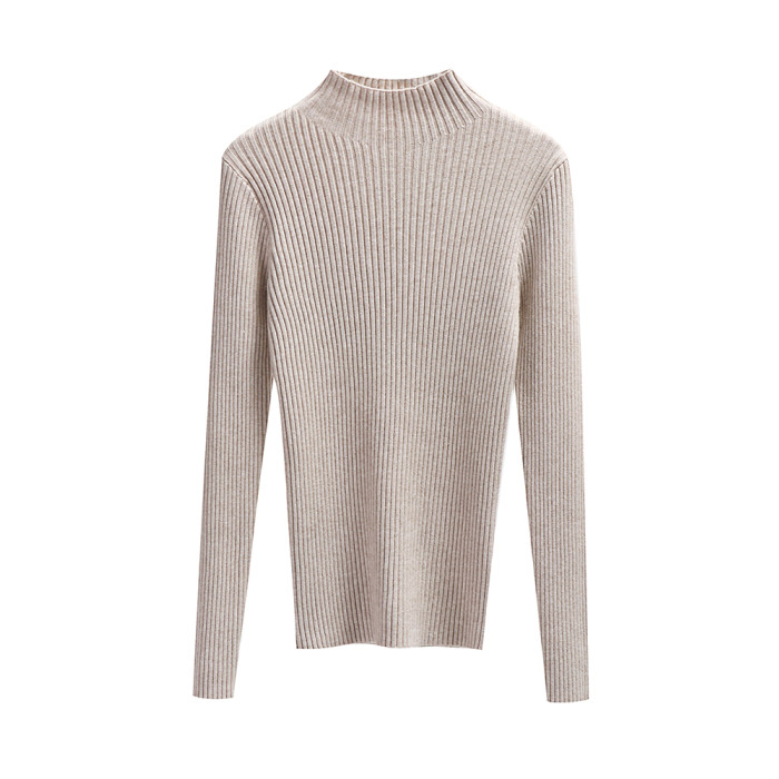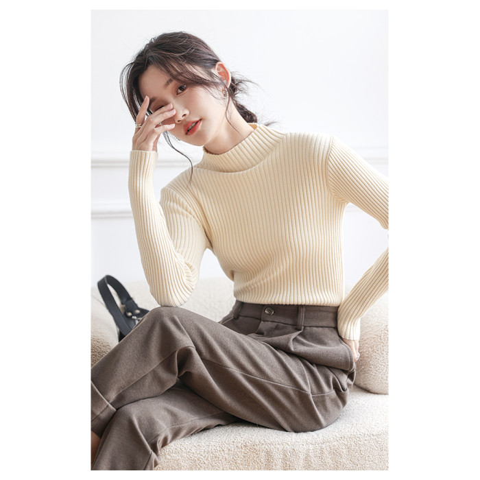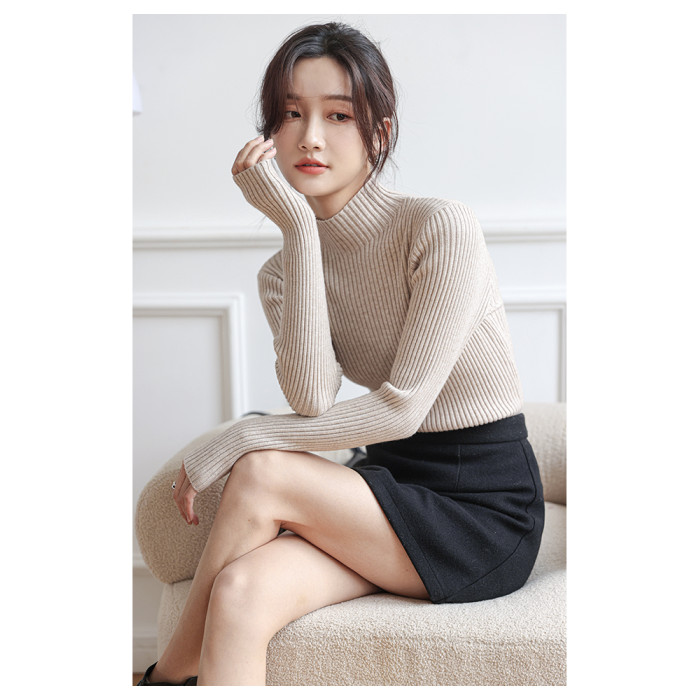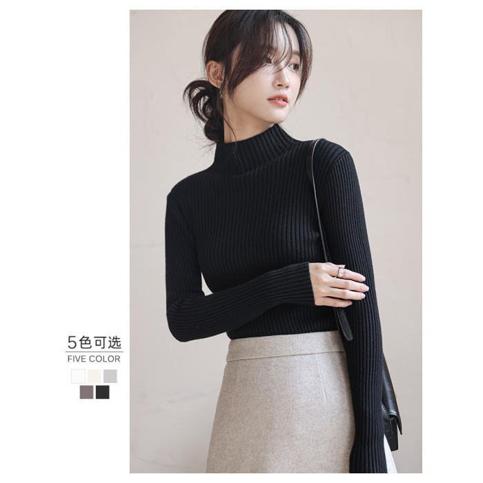 半高領針織衫女2025秋冬緊身內搭加厚黑色毛衣長袖套頭打底衫上衣