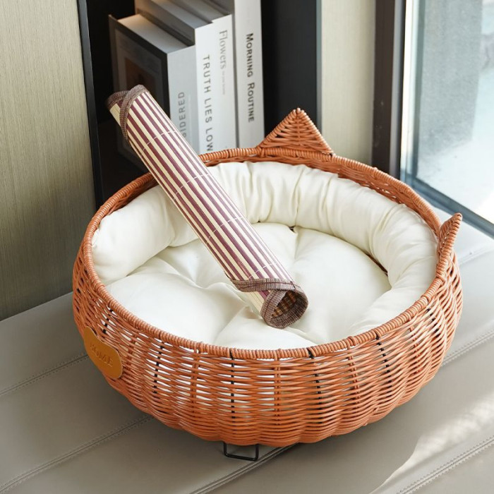 貓窩四季通用編織貓窩夏天睡覺窩可水洗貓咪藤編窩小型狗窩寵物窩