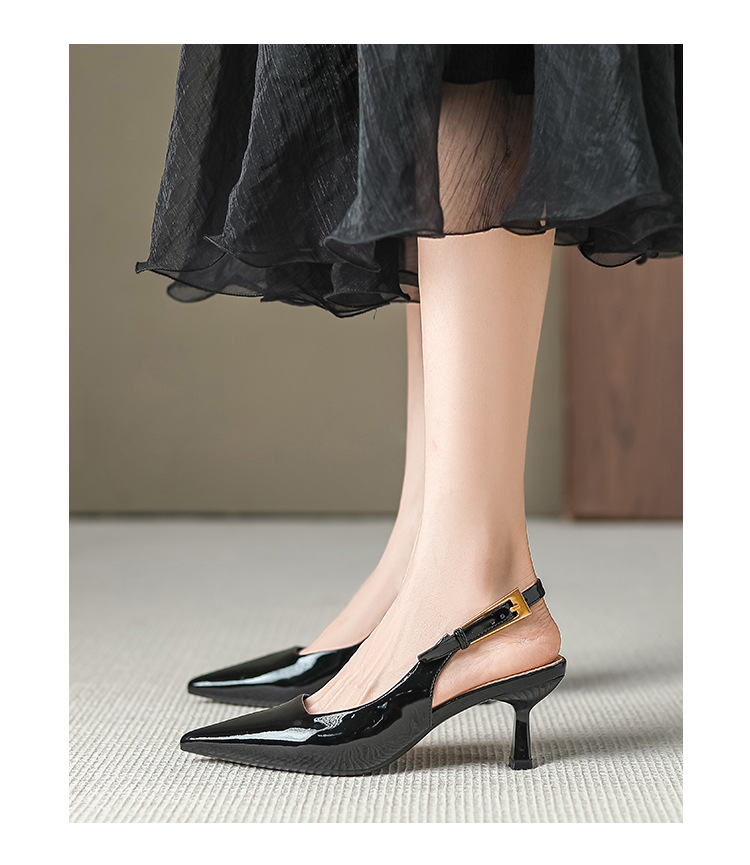 6832-68春夏新款搭釦帶包頭涼鞋裸色尖頭細跟淺口高跟包頭單鞋女