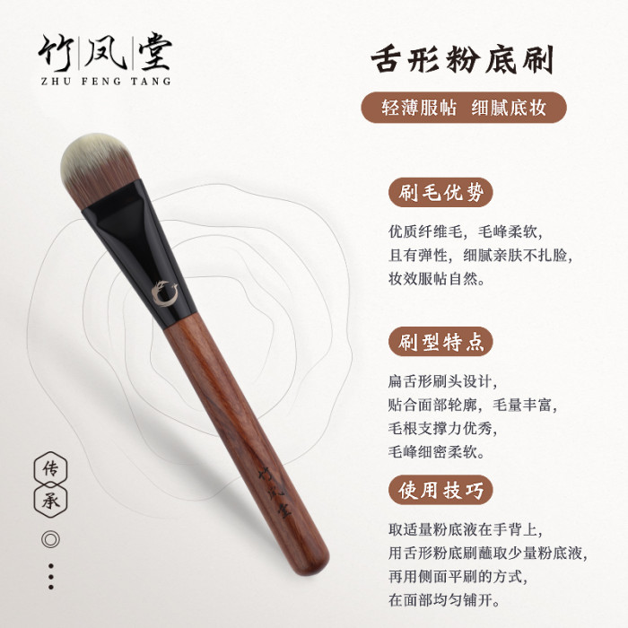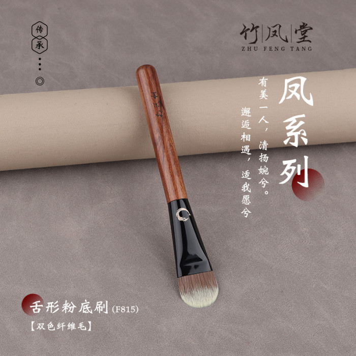 竹鳳堂化妝刷雛鳳F815舌形粉底刷扁平頭粉底液刷無痕不吃粉竹風堂