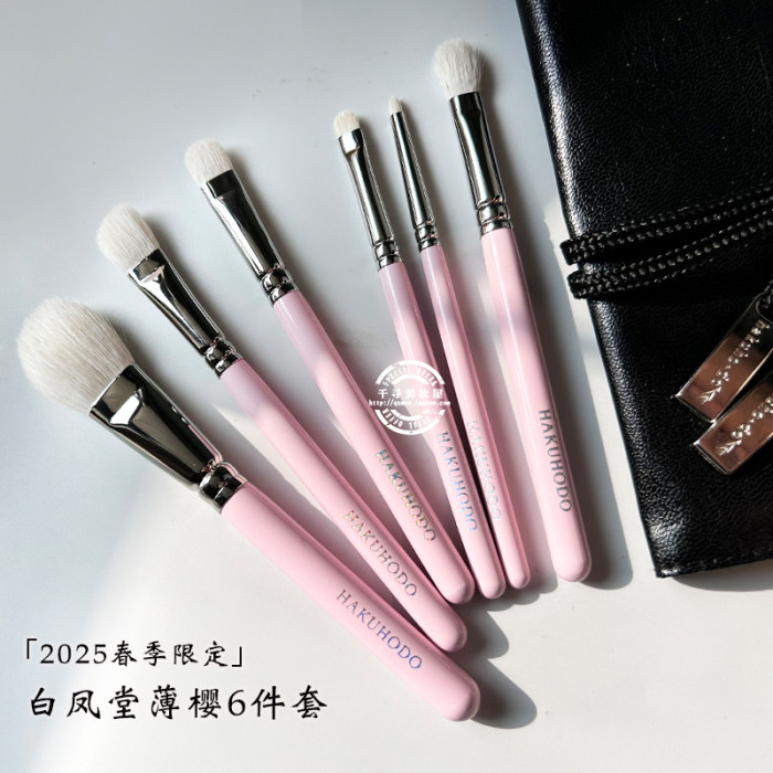 日本白鳳堂2025獨家薄櫻套刷腮紅眼影刷化妝刷六件套3Q櫻花粉銀釦