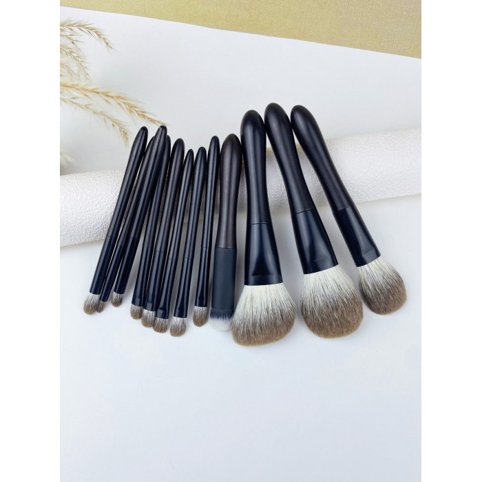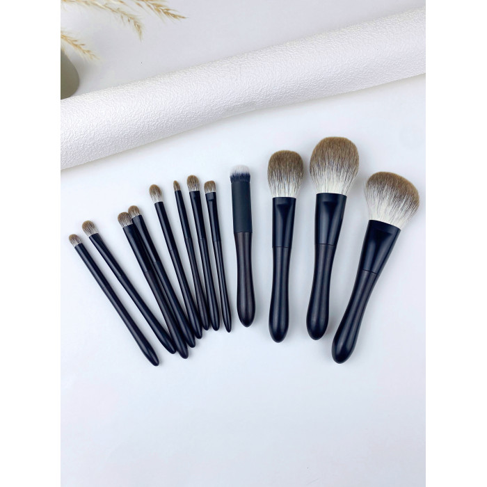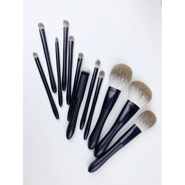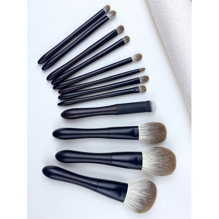 高級美妝化妝刷套刷雪狐毛柔軟親膚散粉腮紅修容刷眼影刷12支烏木