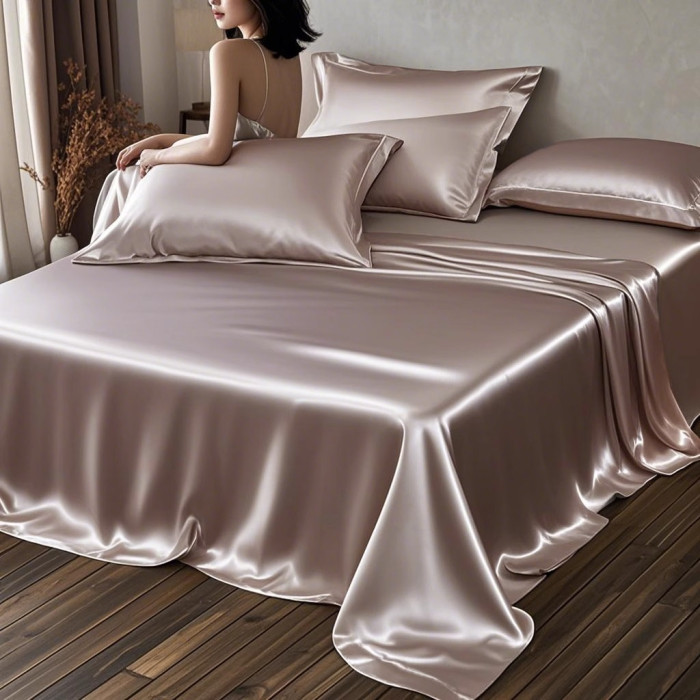 高級水洗真絲床單單件夏季輕奢涼感天絲單人宿舍被單冰絲三件套3