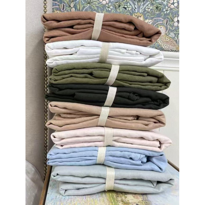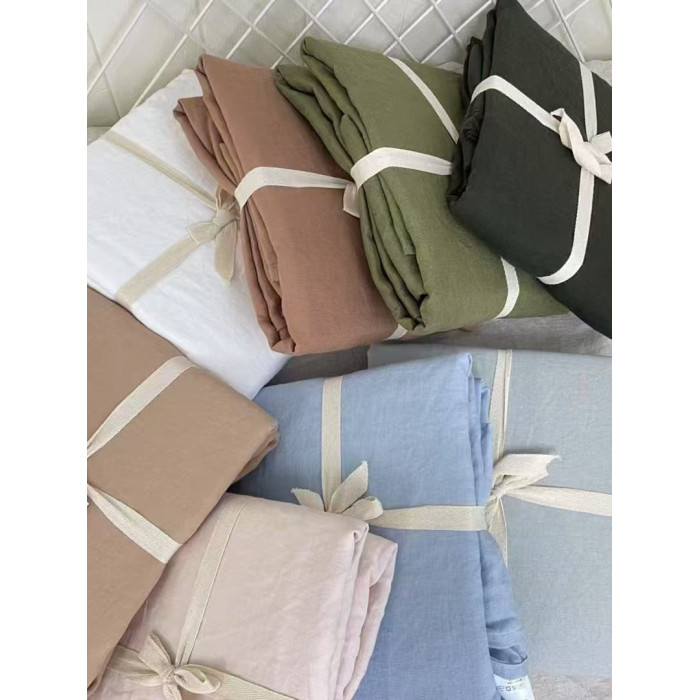亞麻床單三件套雙人標準純色簡約枕套水洗雨露麻240*250cm