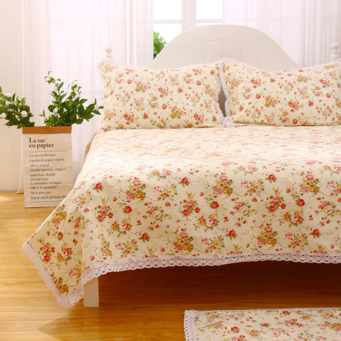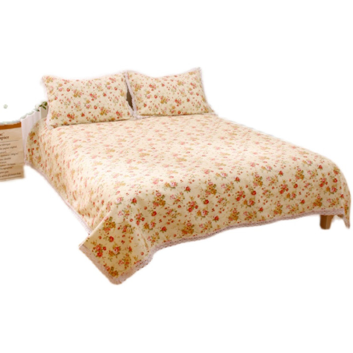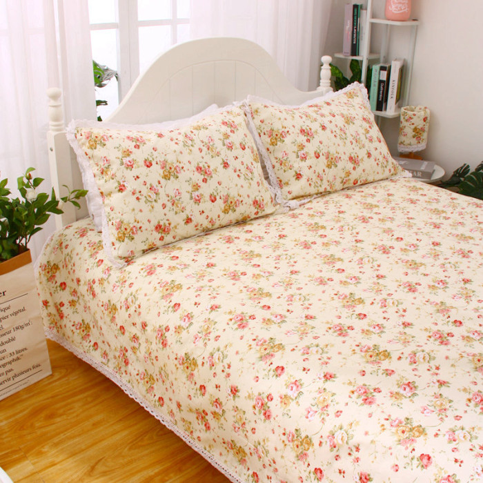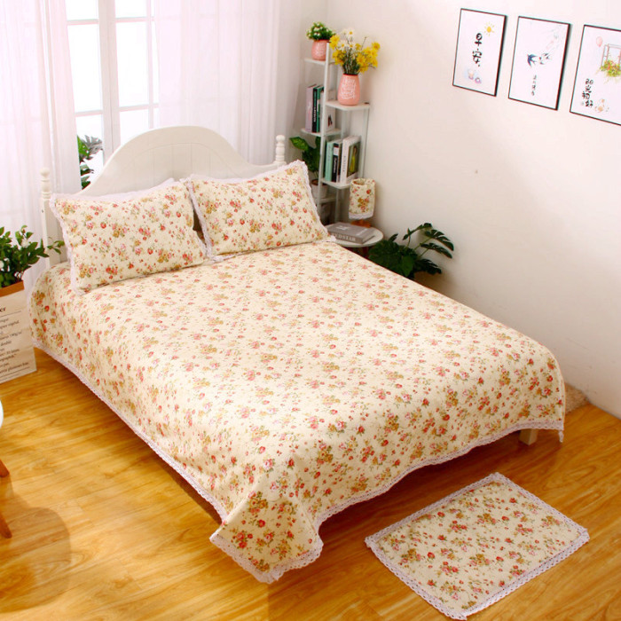 老粗布床單三件套小碎花純棉全棉花邊加厚加密裸睡不起球單件被罩
