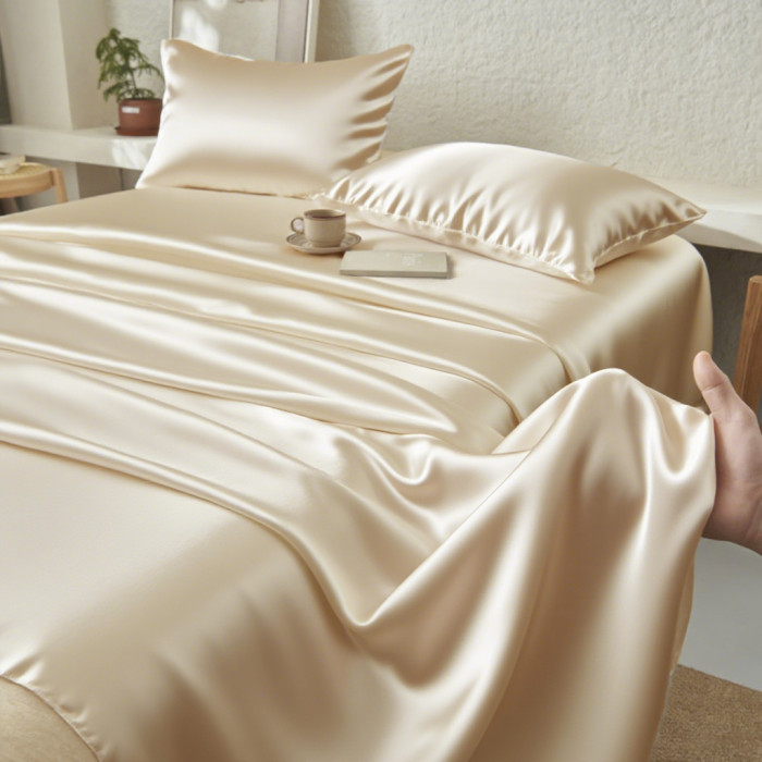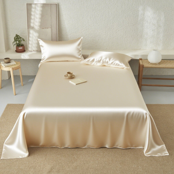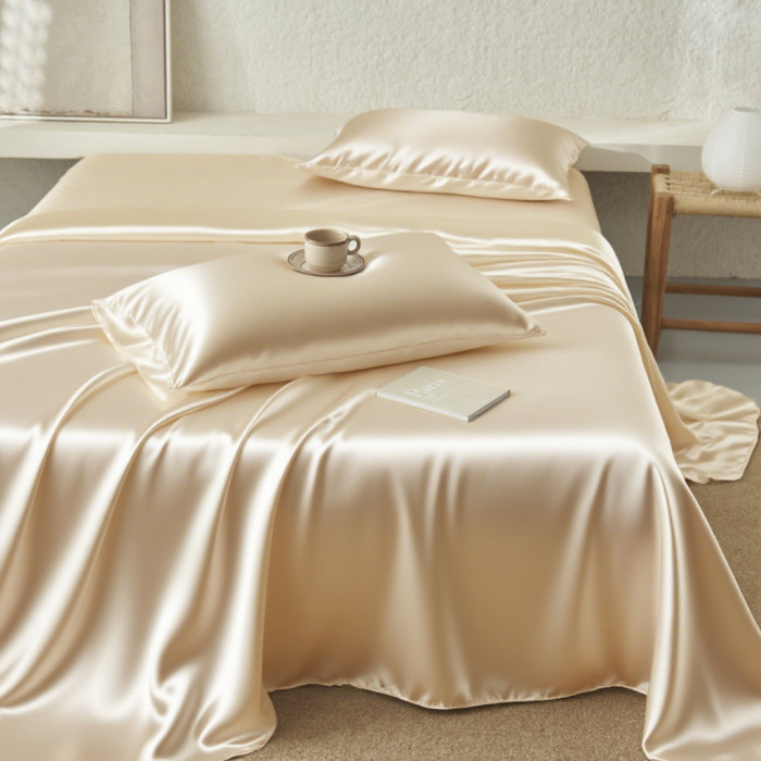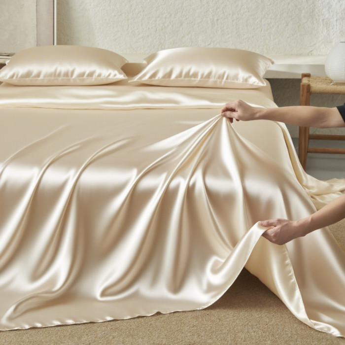 夏季高級水洗真絲床單單件冰絲涼感絲滑裸睡絲綢被單枕套三件套