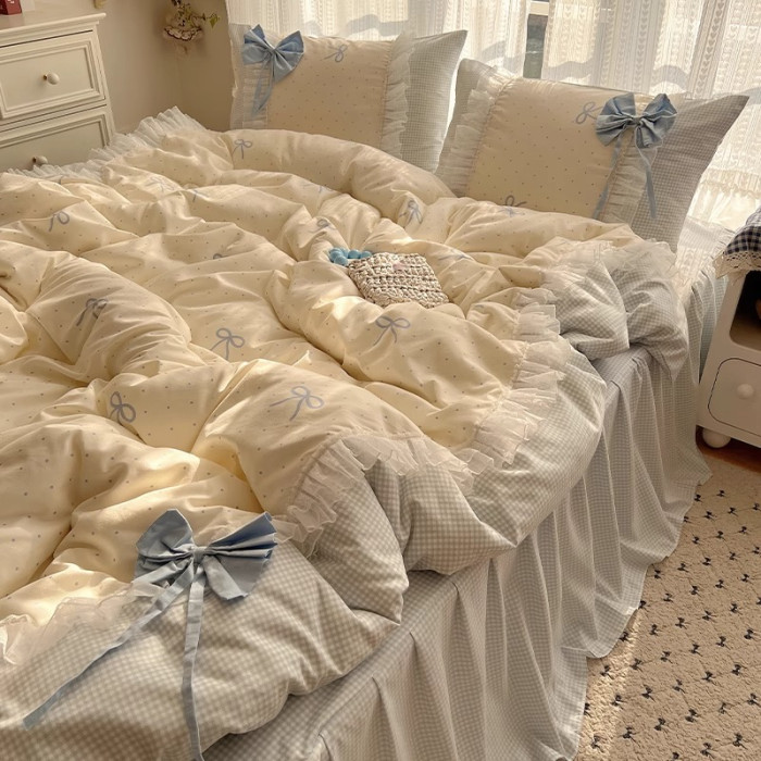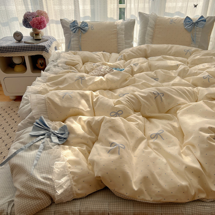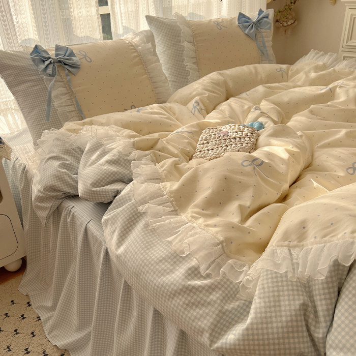 法式洛麗塔少女心蝴蝶結床裙四件套床單床笠被套小清新公主風床品