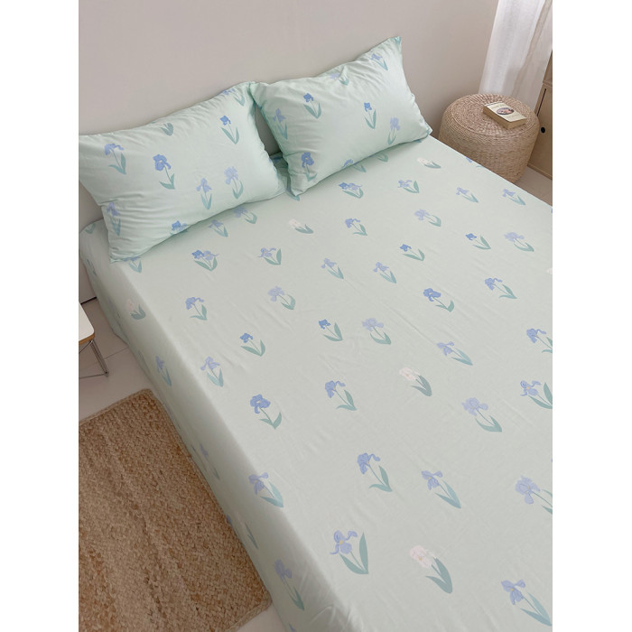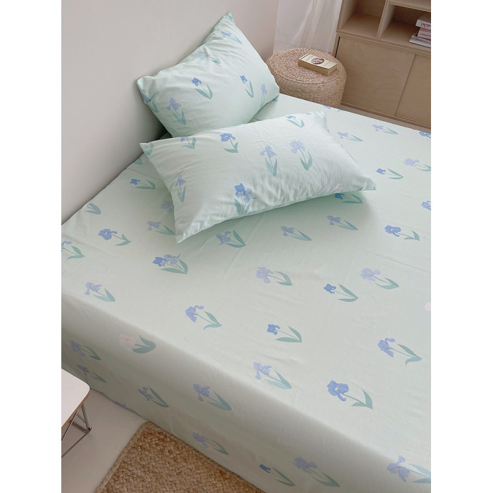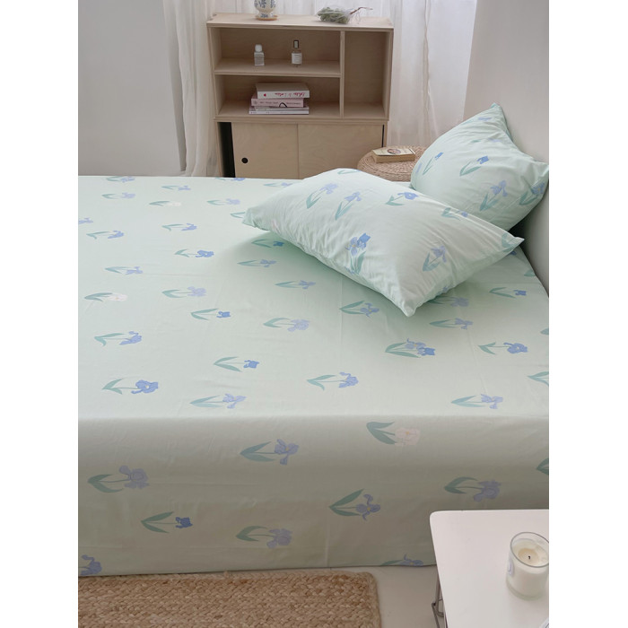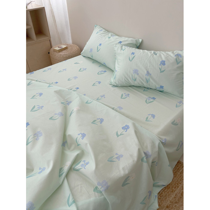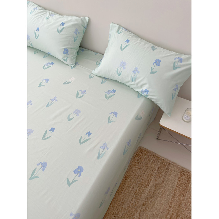 清晨鳶尾花 原創手繪浪漫花園小清新床單床笠全棉藍色花卉1.8米床