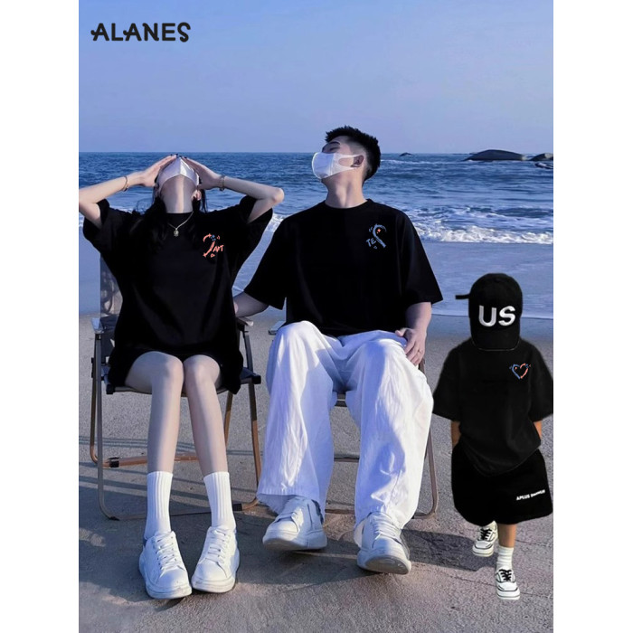 不一樣的親子裝T恤夏季一家三口母子裝2025新款網紅白色短袖上衣t