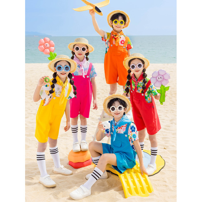 親子裝一家三口沙灘服背帶褲套裝母女母子裝拍照海南島夏威夷情侶