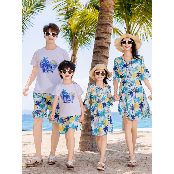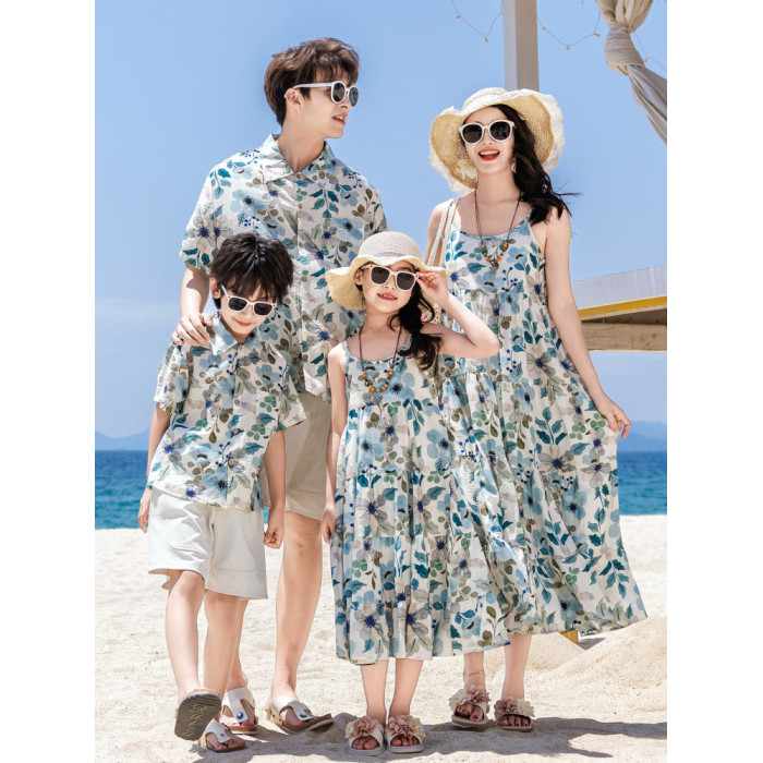 親子裝西雙版納一家三四口旅行海邊度假波西米亞民族風吊帶連衣裙