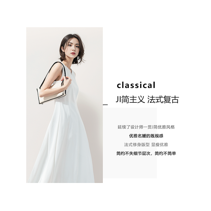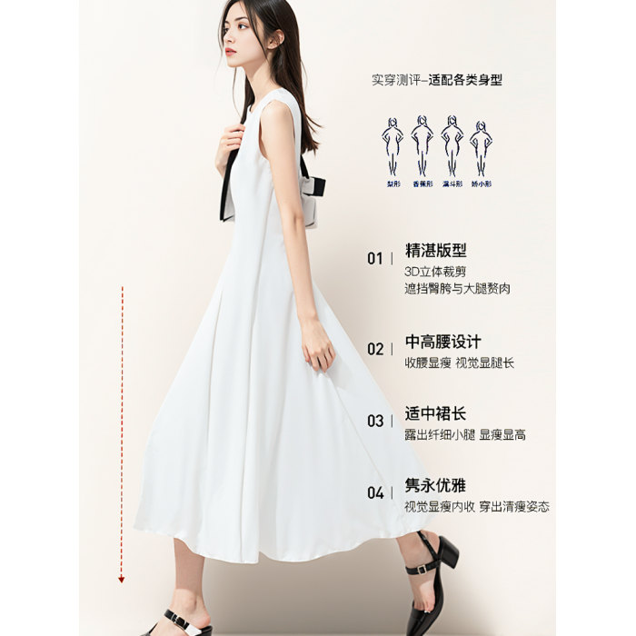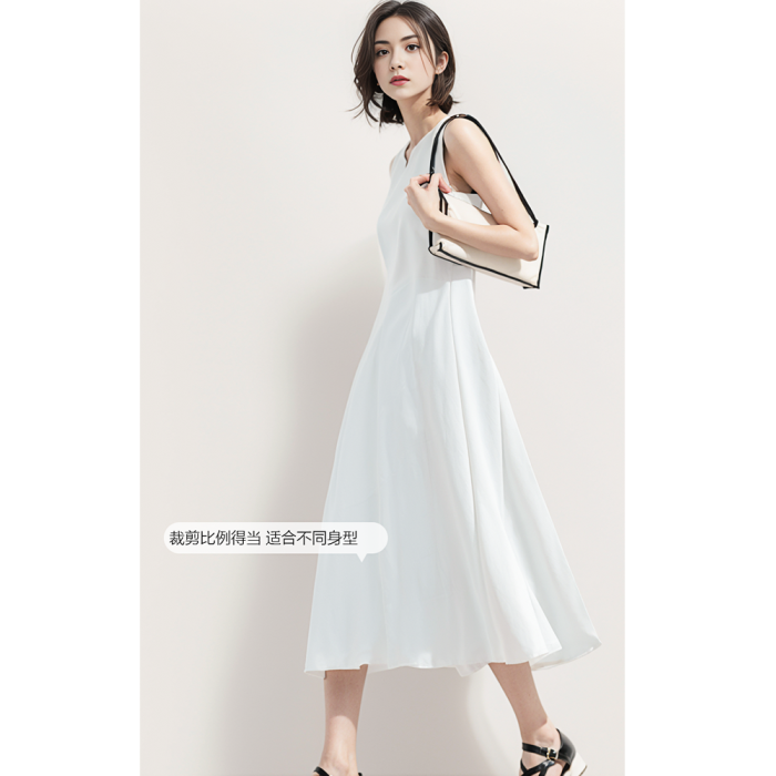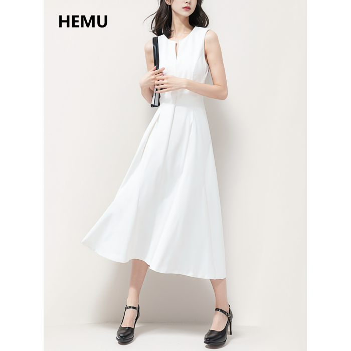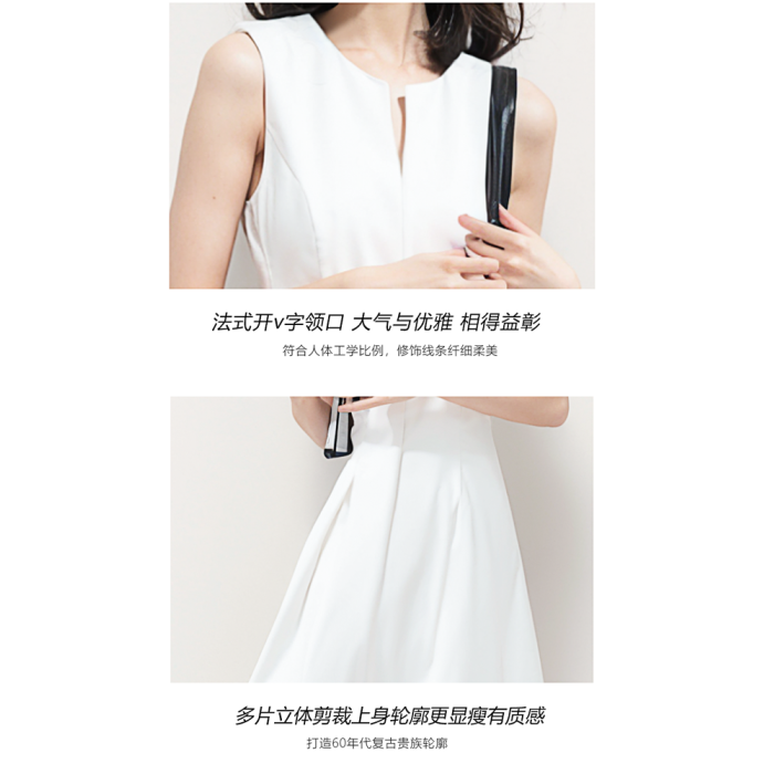 白色連衣裙女夏法式無袖領証小白裙背心長裙通勤重要場合氣質穿搭