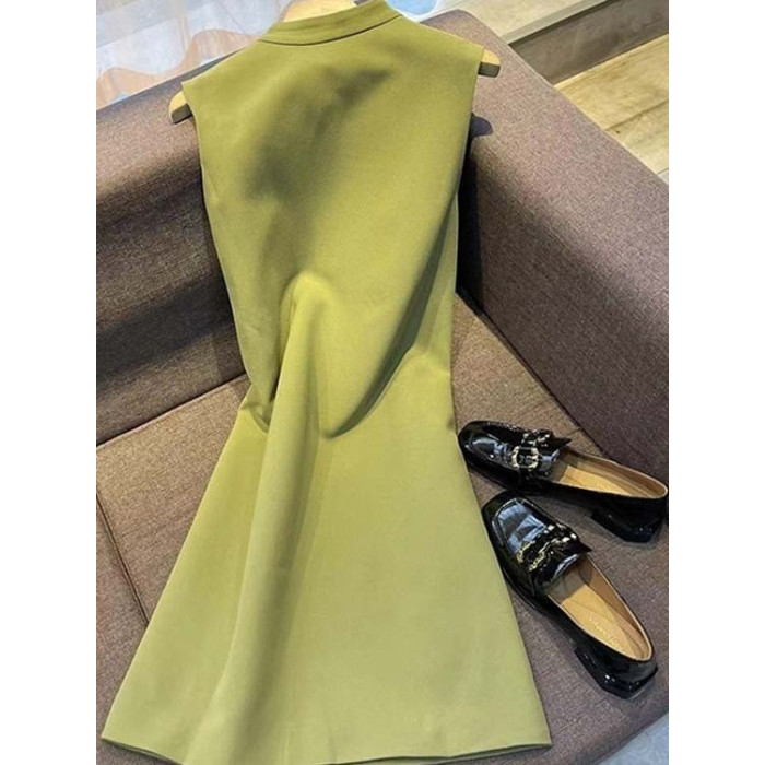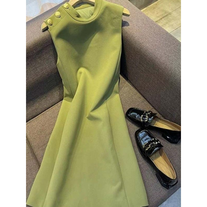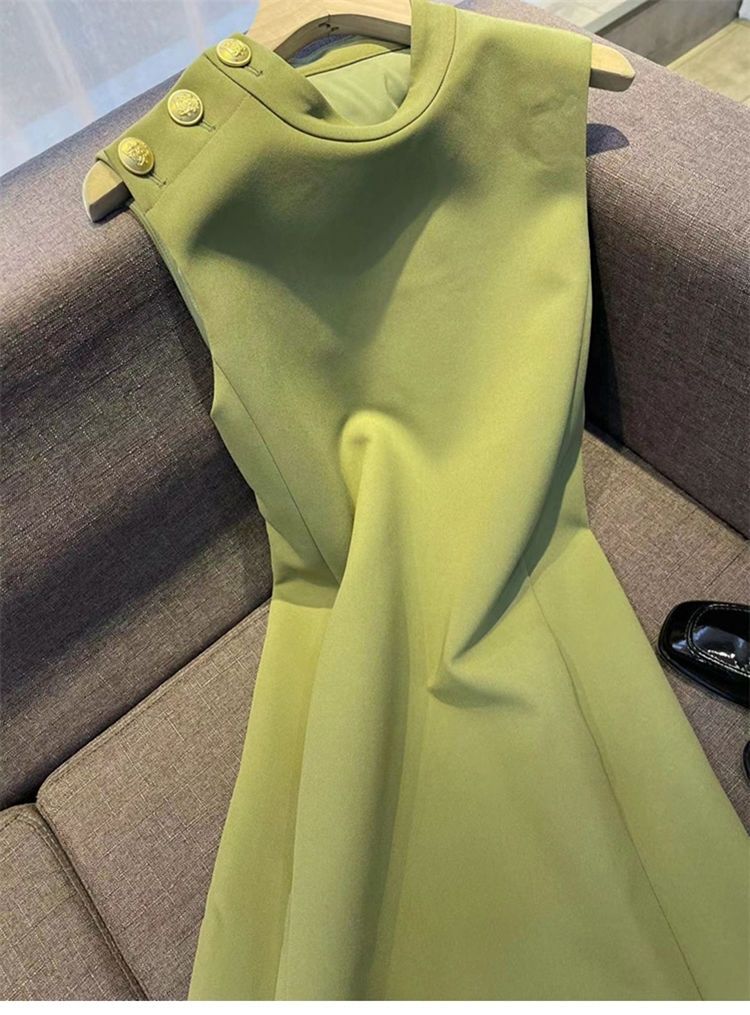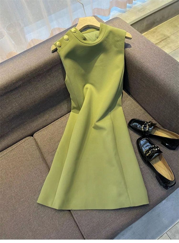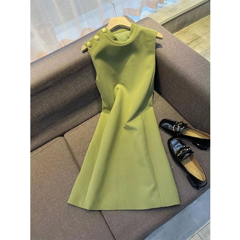小個子背心連衣裙2025夏季新款法式優雅直筒無袖連衣裙女純色圓領