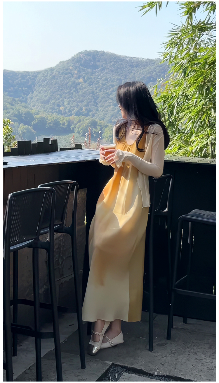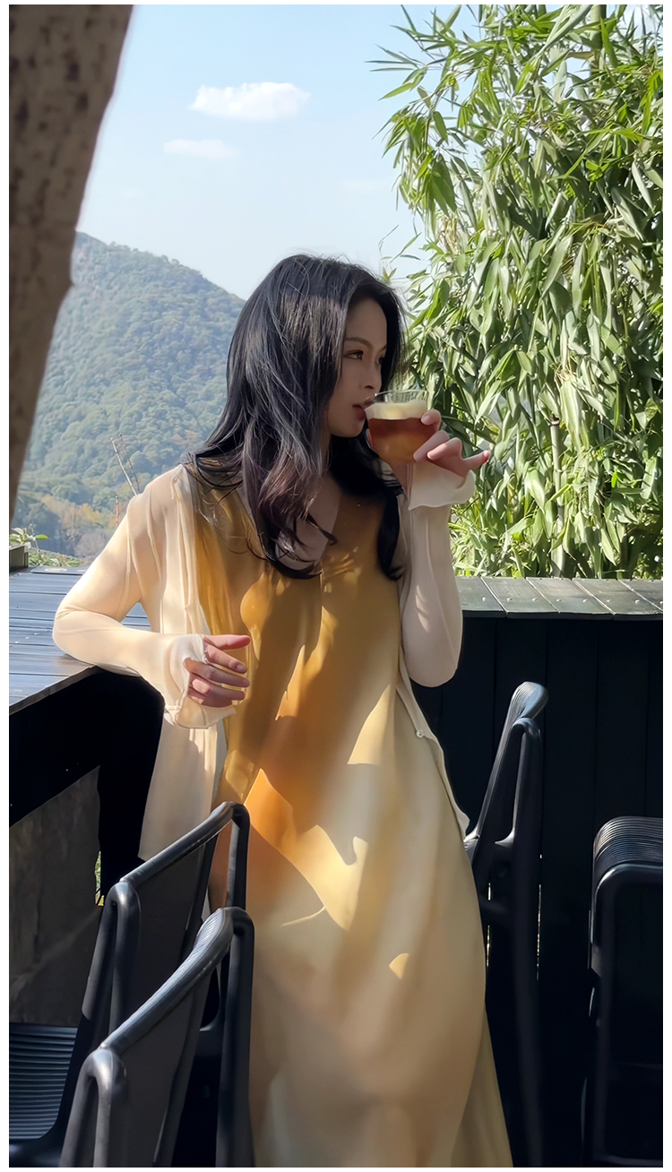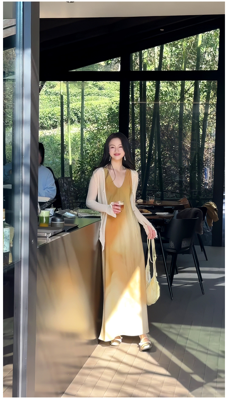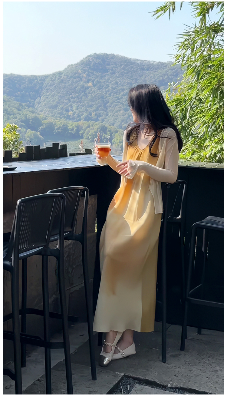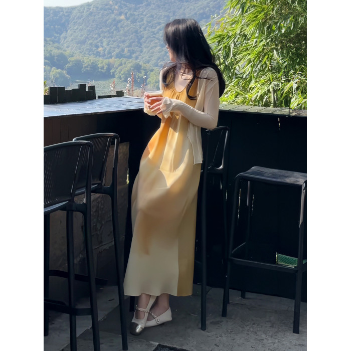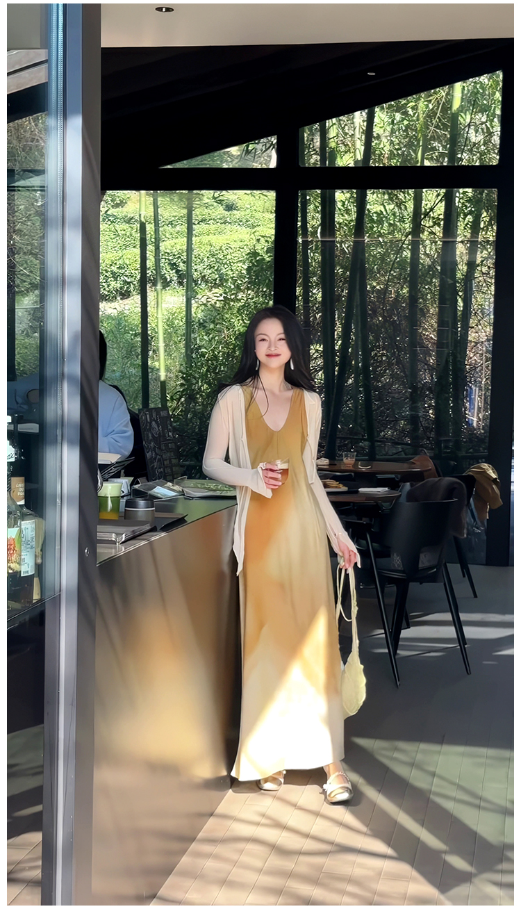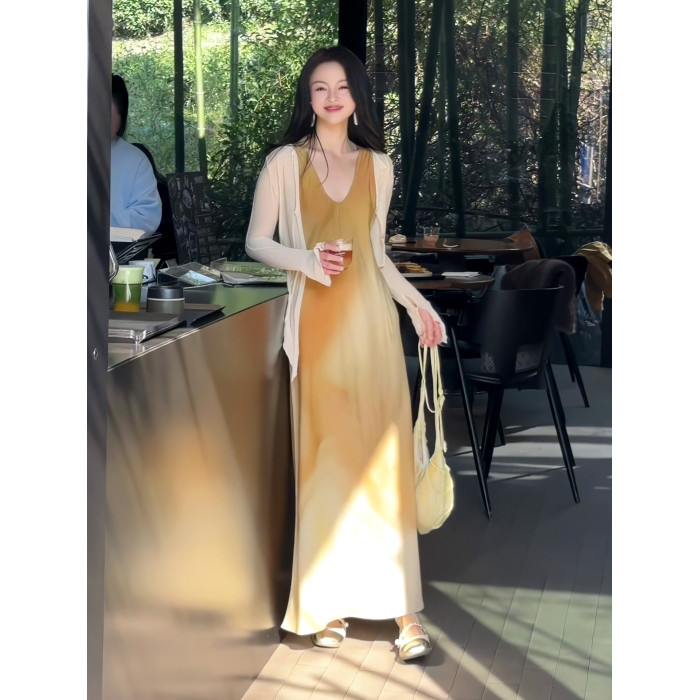 法式U領設計師款連衣裙女2025夏季收腰顯瘦暈染吊帶裙顯瘦長裙