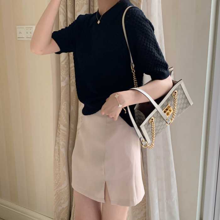 針織衫女2025夏季新款短袖鏤空小香風羊毛上衣寬松薄款打底衫外套