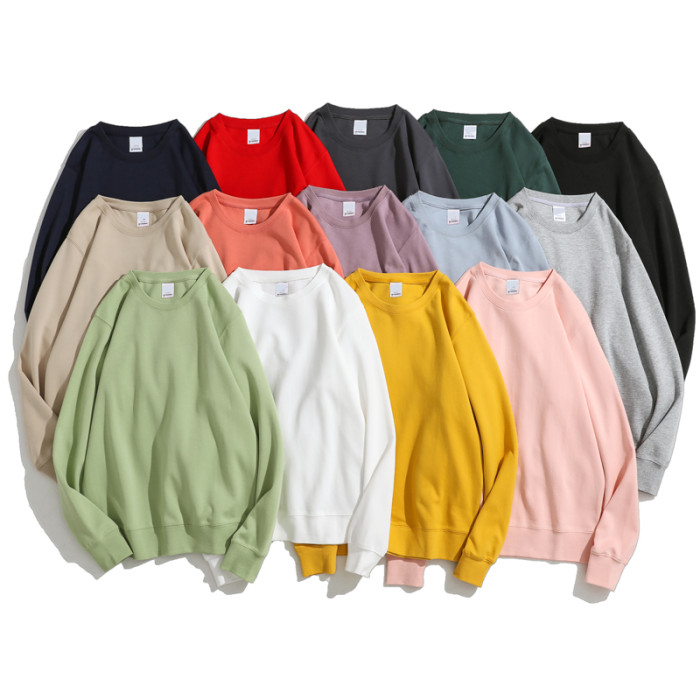 一家專門做T的店,長袖衛衣男士圓領純色純棉情侶男女寬松打底衫
